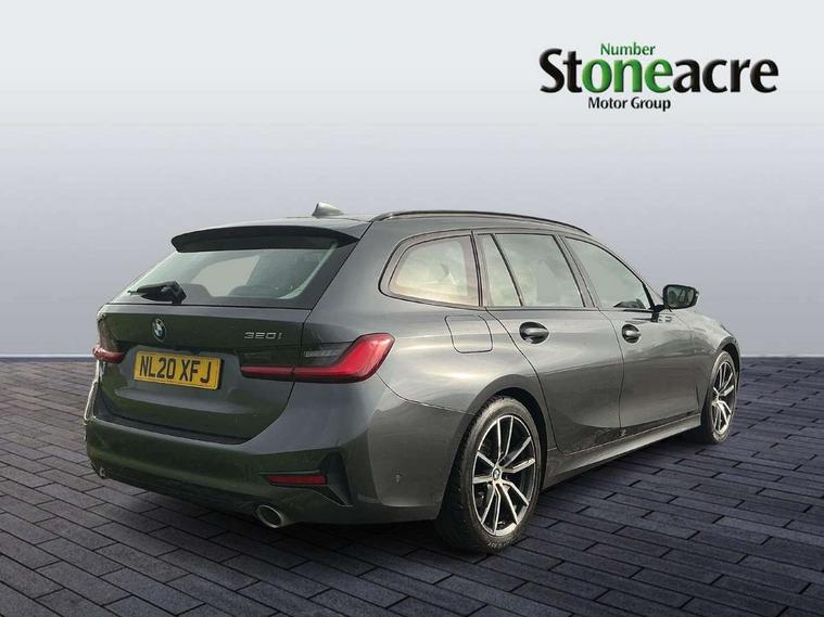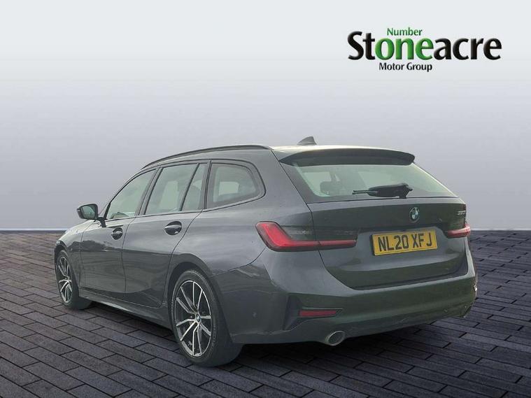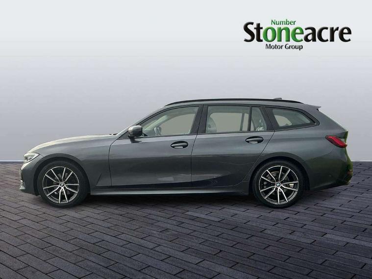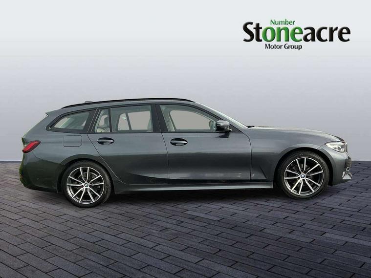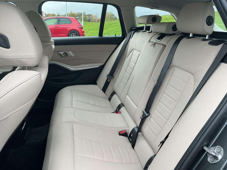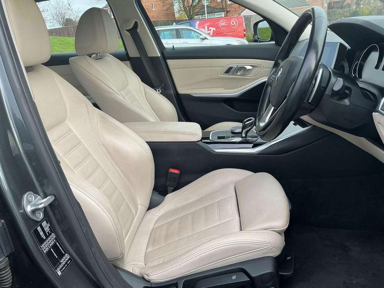 Active guard plus, Attentiveness assist, Auto start-stop, BMW ConnectedDrive online services, BMW Live Cockpit Plus with 8.8" central information display + nav function, BMW service history, BMW Teleservices, Brake pad wear indicator in front and rear, Check Control warning system for monitoring of lights and door/luggage compartment open warning, Condition based service, Cruise control with brake function + speed limiter, Electric power steering, Electric power steering with Servotronic steering optimised at all speed ranges, iDrive controller on centre console, Instrument cluster with speedometer with mph readout, tachometer, fuel gauge and oil temperature gauge, Integrated owners handbook, Oil sensor for level and grade, warning by check control system, On board computer - average speed+fuel consumption, service interval, clock/date, odometer/trip meter, outside temperature display and ice warning, Optimum shift indicator, Personal Profile - automatic lock when driving away selectable, Balanced 50/50 weight distribution, Battery cut-out switch, Double VANOS, Drive performance control - ECO PRO, comfort and sport modes, High precision injection, Larger capacity fuel tank, Petrol Particulate Filter, Sport automatic transmission with steering-wheel mounted gearshift paddles and launch control, Stroke dependent dampers, DAB tuner, Electronic service booklet, Acoustic glazing, Active airstream chrome frame kidney grille with 8 high gloss black vertical slats, Automatic headlight beam throw control with load dependent regulating reaction, dynamic compensation of braking dive and acceleration squat, Body colour roof mouldings, Brushed aluminium inserts in the front door sill finishers with BMW designation, Dynamic brake lights, Electric windows - front and rear, with open/close fingertip control, anti-trap facility and comfort closing, Exhaust tailpipe - split left and right, Extended LED headlights, Exterior mirrors - electrically folding with anti-dazzle, Fading support, Front and rear bumper system with replaceable deformation elements, Green tinted heat protection glazing, High gloss black front bumper with specific design elements, High gloss black rear bumper with specific design elements, High gloss shadow line, High gloss shadow line exterior trim, Interior rear view electrochromatic mirror with automatic anti dazzle function, LED front fog lights, Lightweight engineering, Matt black exterior B pillar, Model designation on right side of tailgate, Rain sensor with automatic headlight activation, Rear wiper, Shark fin antenna, T-shaped design element right and left in black high gloss, Two part LED tailights in L-shape with components in smoked glass, brake light, LED turn indicator and rear fog light, Visible VIN plate, Welcome lights in interior and door handle area, Windscreen wipers with integrated washing jets, 12V power socket in front storage compartment, 2 front cupholder in centre console with clamping elements and matt black inlay, 3 rear seats with non folding headrests with 3 point seat belts, 3 zone automatic air conditioning, 4 pieces lashing eyelets in luggage compartment, 40:20:40 split folding rear seat with loading system, Ambient lighting with welcome carpet light, Armrest integrated in front and rear door trim + front centre console armrest, Centred top Luggage compartment lights, Four grab handles integrated in roof lining, Front and rear door exit lighting (left / right), Front and rear door pockets, Front and rear reading lights, Front and rear velour floor mats, Front head restraints, Front sport seats, Heated driver and front passenger seats, Height adjustable mechanically and infinitely variable steering column, Illuminated armrest storage compartment, Illuminated glove compartment with separate small compartment, Interior lighting - front centre over interior mirror with soft light, rear centre and front and rear footwell lighting, Make-up mirror lights, Rear centre armrest with 2 cupholders, Rear centre console with storage compartment and ventilation grille, Sunvisors with vanity mirrors and ticket pocket, Three spoke multifunction sport leather steering wheel, Toolkit located in luggage compartment, Vernasca leather upholstery with contrast stitching, Connected pack plus - 3 Series Saloon/Touring, Parking assistant pack - 3 Series, 2 tone horn, BMW emergency call, Brake energy regeneration, Braking pre-tensioning, Child proof locking system in rear door, Child seat ISOFIX attachment rear outer seats, Coasting in idle in ECO PRO mode, Crash sensor activating of airbags, Unlocking doors, hazard warning lights, fuel cut off, interior lighting+activation of safety battery terminal clamp, Driver and front passenger side airbags, integrated in the door side seat backrest bolsters for all seat variants, Driver/Front Passenger airbags, Dry braking, Dynamic brake control, Dynamic stability control + (DSC+) - Anti-lock Braking System (ABS) with brake assist and cornering brake control + Automatic Stability Control (ASC), Dynamic Traction Control - DTC, Electromechanical parking brake including automatic hold function and automatic release of the parking brake when pulling away, Electronic differential lock control (EDLC), Front passenger manual airbag deactivation, Head airbags for all 4 outer seats, Hill start assist, Seat belt security check for driver and front passenger, Side impact protection, Three 3 point seat belts on all seats including front belt stopper, pyrotechnic belt tensioners and belt force limiters, Tyre pressure monitoring with three level warning strategy, Ventilated front and rear disc brakes, Warning triangle and first aid kit, Alarm system (Thatcham 1) with remote control and electronic engine immobiliser, Central locking switch for all doors, fuel filler cap and luggage compartment, Remote control with integrated key one button open/close vehicle and windows, sole opening of the luggage compartment lid and panic mode, Start/stop button with C
