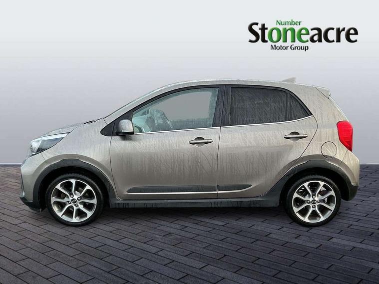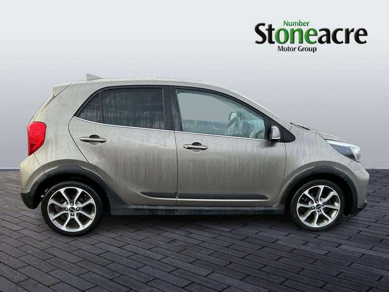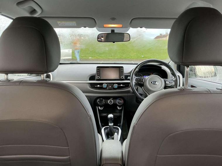 7" Touchscreen display with RDS and DAB, Apple car play/Android Auto with voice control, Digital clock, Emergency stop signalling system, External temperature gauge, Motor driven power steering, Rear parking sensors, Reversing camera system with dynamic guidelines (Integrated into centre fascia screen), Tachometer, Trip computer, 6 speaker audio system, Bluetooth with music streaming, Steering wheel mounted controls, USB and auxiliary socket, Automatic headlights, Bi-function projection headlights, Black radiator grille with chrome surround, Black side sill moulding, Black wheel arch cladding, Body colour bumpers, Body colour mirrors and door handles, Chrome side window trim, Day/night rear view mirror, Electric adjustable/heated/folding door mirrors with LED indicators lights, Front and rear bumpers with silver skid plates and twin exhaust, Front and rear electric windows with drivers's auto up/down function, Front fog lights, Headlamp levelling, Heated rear window, High mount brake light, LED daytime running lights, LED rear lights, Privacy glass - Rear windows and tailgate, Rear fog lights, Rear wash/wipe, Tinted glass, Variable front intermittent wipers, Visible VIN plate, Welcome and follow-me home light functionality, 12V power point front, 3 x passenger assist grips, 60/40 split/folding 2nd row of seats, All round height adjustable headrests, Aluminium pedals, Centre Console with Storage Box and Sliding Armrest, Coat hooks, Cupholders in centre console, Driver and front passenger sunvisor with vanity mirror, Driver seat height adjust, Faux leather upholstery with green stitching, Front cabin lights, Glovebox, ISOFIX Child seat top tethers and anchor fixings, Leather trimmed steering wheel and gearshift, Luggage area light, Luggage area parcel shelf, Manual air conditioning, Passenger front seatback pockets, Satin chrome interior door handles, Slide/reclining front seats, Tilt adjustable steering wheel, White and Green accents on door armrests, lower centre console trim and air vents, Advanced Driver Assistance Pack - Picanto, 3x3 point rear seatbelts, ABS/EBD, Automatic unlocking of doors in case of impact, Dual front airbags, ESC + BAS + VSM + HAC, Front seatbelt height adjusters, Front seatbelt pretensioners + load limiters, Passenger airbag deactivate switch, Rear child proof door locks, Seatbelt warning, Side impact protection, Traction control, Twin curtain airbags, Twin front side airbags, Tyre pressure monitoring system, Anti theft alarm, Engine immobiliser, Folding key, Locking wheel nuts, Remote central door locking, High gloss black centre fascia, 16" alloy wheels, Tyre mobility kit,