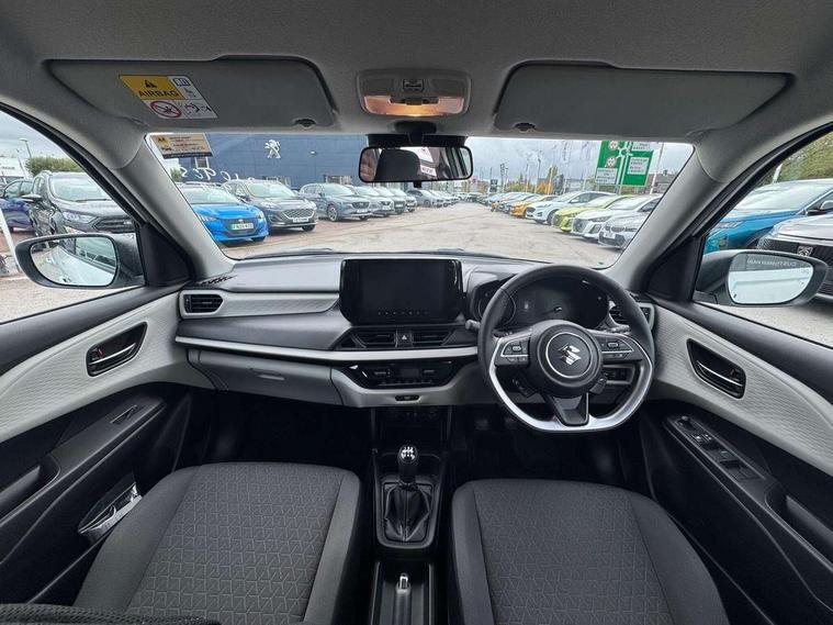 Adaptive cruise control, Automatic start/stop system, Blind spot monitoring, Colour LCD information display, Digital clock, Driver monitoring system, eCall, Fuel consumption display (average/instantaneous) and range display, Intelligent speed control support, Lane departure prevention, Lane departure warning system, Lane keeping assist (LKA), Low fuel level warning light, Navigation system, Outside temperature display, PAS, Rear cross traffic alert, Rear parking camera, Rear parking sensors, Remote fuel cap release, Smartphone integration with Apple CarPlay and Android auto, Suzuki connect, Tailgate, Traffic sign recognition, Weaving alert, 4 speakers + 2 tweeters, 9-inch infotainment display, Auxiliary input socket, Bluetooth audio streaming, DAB Digital radio, Steering wheel audio controls, USB Type A and C, 'Guide me home' headlamps, 1 speed with intermittent rear wiper + washer, 2 speeds front wiper with intermittent + washer, Automatic headlights, Black coloured A & B pillars, Black Upper and lower front grille, Body colour door mirrors and handles, C pillar trim moulding, Electric door mirrors, Electric front windows, Electric rear windows, Green tinted glass, Heated door mirrors, High beam assist, LED daytime running lights, LED High mounted stop light, LED position lamps, LED projector headlamps, LED rear combination lamp, Manual headlamp level control, Rain sensor, Rear fog lights, Rear privacy glass, Rear side wing doors, Rear spoiler, Side spoiler, 1 cup holder in rear, 12V Accessory socket in front console, 2 cup holders in front, 2 Isofix seat anchors, 3 bench rear seats in 2nd row, 3 rear head restraints, 3 spoke leather covered steering wheel, 60/40 split rear seats, Accessory socket, Centre console storage, Centre lower box, Child seat tether anchorages x 2, Chrome handbrake release button, Chrome interior door handles, Cloth upholstery, Door pockets with bottle holder, Driver/passenger sunvisors with ticket holders + vanity mirrors, Front cabin lights, Front headrests, Front map light, Front passenger side assist grip, Glovebox, Heated front seats, Heater, Height adjustable driver's seat, Luggage area lamp, Manual air conditioning with digital control panel, Material door trim ornament, Parcel shelf, Passenger seat back pocket, Pollen filter, Single front passenger seat, Tilt adjustable steering wheel, Tilt/telescopic adjustable steering wheel, 3 point ELR seatbelts for centre seat, 3 point ELR seatbelts front and rear, ABS+EBD+Brake assist, Curtain airbags, Driver airbag, Dual sensor brake support, ESP + traction control, Front and rear seatbelt reminder, Front passenger airbag, Front passenger airbag deactivation, Front seatbelt pretensioners with force limiters, Hill hold control, Rear child proof door locks, Rear seatbelts with pre-tensioners and load limiters, Side airbags with incorporated into front seats, Tyre pressure indicator, Deadlocks, Freewheeling key cylinders, Immobiliser, Keyless entry and start, Light - on and Key in reminder, Locking wheel nuts, Remote central locking, Painted instrument panel ornament, 16" Painted alloy wheels, Emergency flat tyre repair kit,