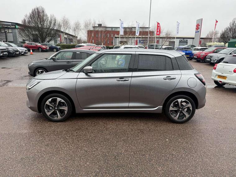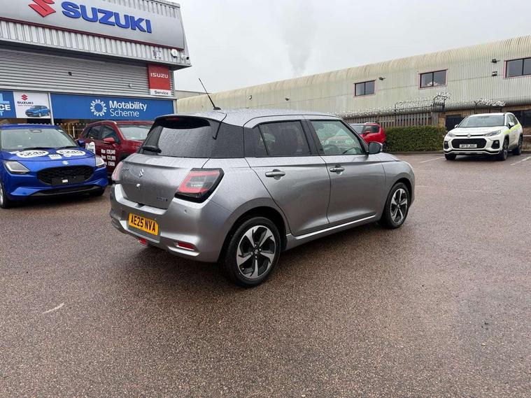 Adaptive cruise control with Stop and Go, Automatic start/stop system, Blind spot monitoring, Colour LCD information display, Digital clock, Driver monitoring system, eCall, Fuel consumption display (average/instantaneous) and range display, Intelligent speed control support, Lane departure prevention, Lane departure warning system, Lane keeping assist (LKA), Low fuel level warning light, Navigation system, Outside temperature display, PAS, Rear cross traffic alert, Rear parking camera, Rear parking sensors, Remote fuel cap release, Smartphone integration with Apple CarPlay and Android auto, Suzuki connect, Tailgate, Traffic sign recognition, Weaving alert, 4 speakers + 2 tweeters, 9-inch infotainment display, Auxiliary input socket, Bluetooth audio streaming, DAB Digital radio, Steering wheel audio controls, USB Type A and C, 'Guide me home' headlamps, 1 speed with intermittent rear wiper + washer, 2 speeds front wiper with intermittent + washer, Automatic headlights, Black coloured A & B pillars, Black Upper and lower front grille, Body colour door mirrors and handles, C pillar trim moulding, Door mirrors with built-in turn signal lamp, Electric door mirrors, Electric folding door mirrors, Electric front windows, Electric rear windows, Green tinted glass, Heated door mirrors, High beam assist, LED daytime running lights, LED High mounted stop light, LED number plate light, LED position lamps, LED projector headlamps, LED rear combination lamp, Manual headlamp level control, Rain sensor, Rear fog lights, Rear privacy glass, Rear side wing doors, Rear spoiler, Side spoiler, 1 cup holder in rear, 12V Accessory socket in front console, 2 cup holders in front, 2 Isofix seat anchors, 3 bench rear seats in 2nd row, 3 rear head restraints, 3 spoke leather covered steering wheel, 60/40 split rear seats, Accessory socket, Automatic air conditioning, Centre console storage, Centre lower box, Child seat tether anchorages x 2, Chrome handbrake release button, Chrome interior door handles, Cloth upholstery, Door pockets with bottle holder, Driver/passenger sunvisors with ticket holders + vanity mirrors, Front cabin lights, Front headrests, Front map light, Front passenger side assist grip, Gearshift paddles, Glovebox, Heated front seats, Heater, Height adjustable driver's seat, Luggage area lamp, Painted interior door trim ornament, Parcel shelf, Passenger seat back pocket, Pollen filter, Rear assist grips x2, Rear heater duct, Single front passenger seat, Tilt adjustable steering wheel, Tilt/telescopic adjustable steering wheel, 3 point ELR seatbelts for centre seat, 3 point ELR seatbelts front and rear, ABS+EBD+Brake assist, Curtain airbags, Driver airbag, Dual sensor brake support, ESP + traction control, Front and rear seatbelt reminder, Front passenger airbag, Front passenger airbag deactivation, Front seat seatbelts shoulder height adjuster, Front seatbelt pretensioners with force limiters, Hill hold control, Rear child proof door locks, Rear seatbelts with pre-tensioners and load limiters, Side airbags with incorporated into front seats, Tyre pressure indicator, Deadlocks, Freewheeling key cylinders, Immobiliser, Keyless entry and start, Light - on and Key in reminder, Locking wheel nuts, Remote central locking, Painted instrument panel ornament, 16" Polished alloy wheels, Emergency flat tyre repair kit,