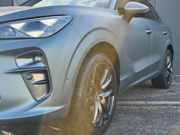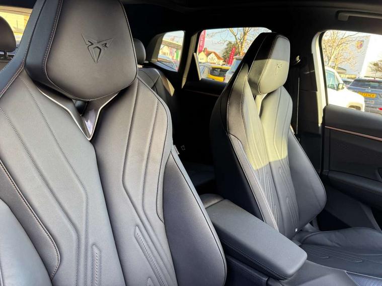 10.25" digital cockpit and configurable dashboard, Adaptive cruise control with follow-to-stop and speed limiter, Advanced driver alert system, Advanced lane assist with semi-automatic vehicle control in a medical emergency and traffic jam assist, Driving profile selection (DCC- Comfort, performance, CUPRA, Individual, Dynamic road sign display, E-call, Electric tailgate with virtual pedal, Emergency steering support with turn assist, Front and rear parking sensors, Front assist (Forward collision warning with automatic braking) with multifunction camera and front cross traffic assist, Head up Display, Intelligent park assist, Media system with Nav - 12.9" touch display, voice control, full link phone (wired/wireless), DAB and Steering wheel mounted controls, Rear traffic assist, Side and exit assist, Speed sensitive power steering, Start/stop system with regenerative braking, Top view camera (front camera, rear camera, 2 side cameras), Wireless phone charger, Adaptive chassis control with a 2-valve shock absorber, Immersive by Sennheiser TM - 10 speakers, 1 central speaker, 1 subwoofer, Americas Cup Edition - lasered logo in B pillar, Auto dimming rear view mirror, Black roof rails, CUPRA 3D rear lights with ceremony & swiping indicator and illuminated logo, Dark tinted rear windows, Daytime running lights with automatic headlight control and Coming and Leaving home function, Door mirrors with memory function and lowing function on passenger mirror, Electric front/rear windows, Electrically adjustable, heated and folding door mirrors, Front fog lamps with cornering function, Heat reflecting windscreen, High beam assist, Matte paint, Panoramic sunroof, Rain sensing wipers, Rear fog light on one side, back up light on both sides, Rear side wing doors, Rear wash/wipe, Third brake light, Welcome lights (within exterior mirror housing), 3 seat bench in 2nd row, Black roof lining, Cupra sports pedals, Driver seat memory function, Electrically adjustable front seats including lumbar support, Four x USB Type C ports (2 in front and 2 in rear), Front and rear head restraints, Front and rear reading lights X 4, Front centre armrest, Heated front seats, Heated leather wrapped multi function sports steering wheel with tiptronic, Illuminated interior front door sills, Isofix, Leather upholstery, Operating voltage 12V, Single front passenger seat, Smart wraparound interior lighting, Sunvisors with illuminated mirror, Three zone climate control with control panel in rear, Unsplit rear seat bench, split folding backrest, with centre armrest, Variable luggage/load compartment floor, Pure performance pack - Terramar, 3 point seatbelts in front with pretensioner and electric height adjustment, 3 point seatbelts on all rear seats, Brake control system - ESC and brake booster, Child proof door locks, Driver and front passenger airbags, Electronic parking brake, Front and rear disc brakes, Front interaction airbag, Front passenger airbag deactivation switch, Front side airbags with curtain airbags, Pre-crash front and rear seat belt tensioner, window closure and hazard lights, Tyre pressure monitoring system, Visual and acoustic seat belt reminder, electric contact in front and rear, Anti theft alarm, Keyless locking and starting system with keyless access, Locking wheel bolts, Black decorative trims, Chrome interior detailing, 20" Vortex exclusive sportblack matte alloy wheels, Breakdown kit, Performance tyres in polmer coating, Tool kit,