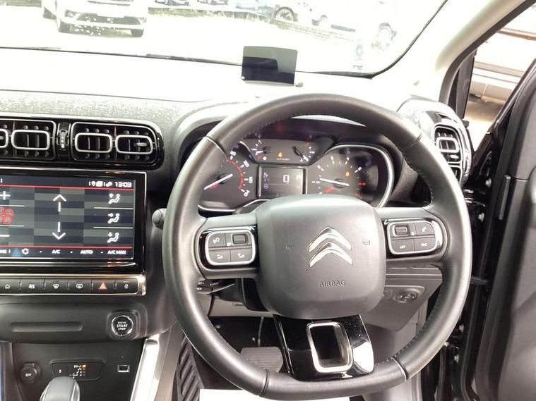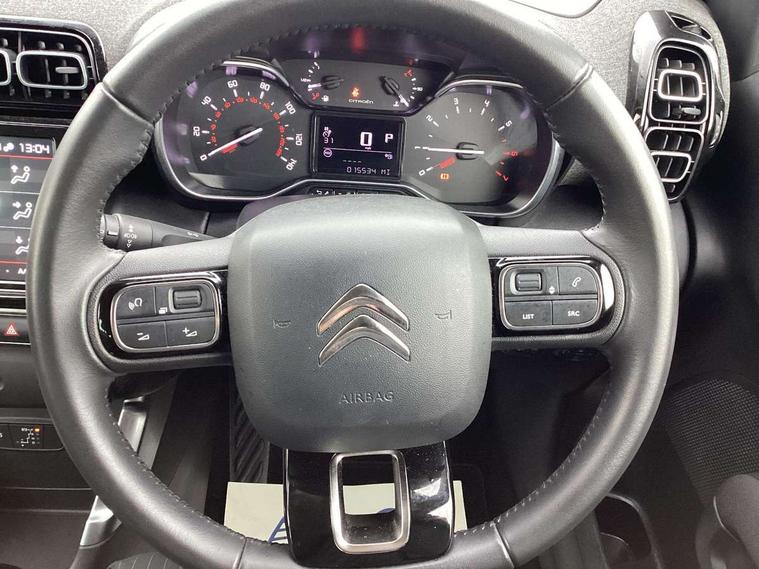 3.5" head up display, 9" Touchscreen display, Citroen connect box emergency and assistance system, Citroen Connect Nav with 3D navigation, Coffee Break Alert, Cruise control with speed limiter, Driver instrument cluster including trip computer and rev counter with white text LCD display and white needles and chrome decor, eCall emergency call system, Engine start button, Lane departure warning system, Mirror screen with Apple CarPlay and Android auto, Outside temperature sensor, Rear parking sensors, Tailgate, Top rear vision reversing camera, Traffic signs and speed limit recognition and recommendation, Variable assistance power steering, Voice recognition for radio, navigation and telephone features, Bluetooth hands free and media streaming with USB socket, Citroen connected DAB radio with 6 speakers, Steering wheel mounted controls for stereo and telephone, 3D effect LED rear lights, Automatic Eco LED headlights, Automatic lights and windscreen wipers, Black roof bars, Body colour painted door handles, Chrome chevrons front grille, Electric front windows + one touch + anti-pinch, Electric rear windows with one touch/anti-pinch, Electrically adjustable door mirrors, Electrically folding door mirrors, Electrochrome rear view mirror, Fog lights integrated into front bumper, Front and rear body coloured bumpers, Heated door mirrors, Integrated roof spoiler, LED daytime running lights, LED third brake light, Painted door mirrors to match colour pack, Rear side wing doors, Rear wiper, Roof aerial, Tinted rear windows and rear quarterpanel glass, Variable front intermittent wipers, 12V socket in front, 12V socket in rear of vehicle, 60/40 split folding rear seats with sliding rear bench, centre armrest and ski flap, Automatic air conditioning, Boot light, Brasilia leather effect and flecked cloth upholstery with metropolitan graphite ambience, advanced comfort seats and wrapped dashboard, Central adjustable armrest on drivers seat, Centre console with closed storage and chrome insert, Driver and front passenger cup holders, Driver and passenger sunvisor with courtesy mirror, Flex load/Pull out boot floor, Front and rear courtesy reading lights, Front and rear door storage, Front head restraints, Front passengers seat flat folding, Glovebox with closable lid, Height adjustable driver's seat, Height and reach adjustable steering wheel, Leather steering wheel with satin chrome inserts and radio controls, Manual handbrake with chrome insert, Passenger compartment headlight adjustment, Rear isofix mounting points (outside seats) with top tether, Row 2 - Three seats with individually adjustable head rests, Satin chrome interior door handles, Single front passenger seat, 3 point, height adjustable, pre tensioned front seatbelts, ABS with Electronic brakeforce distribution and Emergency braking assistance, Active safety brake including Forward collision warning, Automatic illumination of hazard warning lights, Curtain airbags, Driver airbag, Drivers/passengers and rear seats unfastened seat belt warning, ESC (Electronic Stability Control), Front lateral airbags, Front passenger airbag, Front passenger airbag deactivation switch, Hill start assist function, Mono-tone horn, Rear door child safety locks, Three 3 point rear seatbelts, Tyre pressure monitor, Automatic door and boot locking when moving off with automatic unlocking in case of impact, Automatic locking of the vehicle (after 30 seconds if door or boot unopened), Immobiliser, Keyless entry and keyless start, Perimetric and volumetric anti theft alarm, Remote central locking + deadlocks, Vehicle locater function (headlights illuminate when button on key pressed), Gloss black centre console, Satin chrome air vent decors,