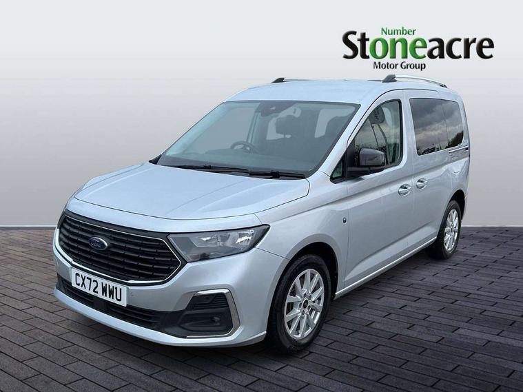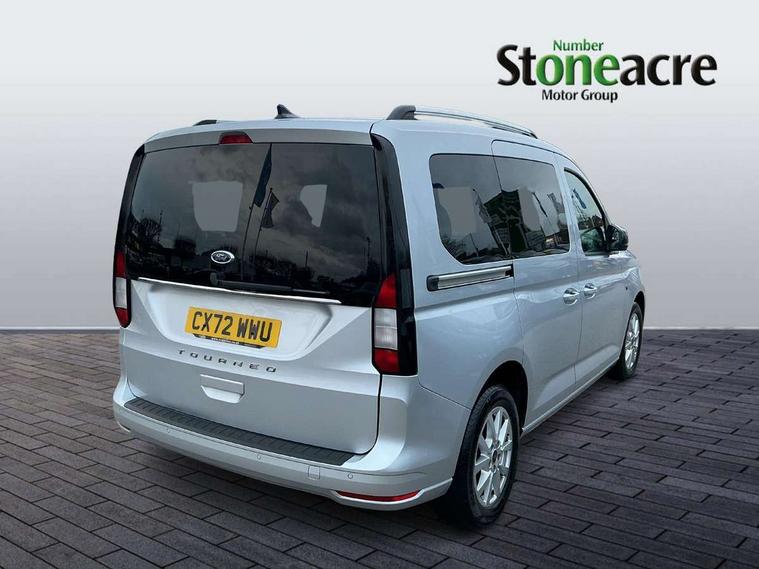 Analogue cluster, Brake wear indicator, Driver impairment monitor, E-call, Embedded modem, Mobile phone interface, PAS, Stop/start system with regenerative braking, Trip computer, 50 litre fuel tank, Diesel particulate filter, Standard duty alternator, Standard duty battery, Media hub 2x USB and rear USB Unit, Steering wheel mounted radio controls, Adaptive cornering lamps includes fog lamp, Auto headlamps On/off, Automatic windshield wiper, Black coloured exterior mirror finish, Black grille with chrome surround, Body coloured exterior door handles, Body coloured exterior tailgate handles, Body coloured plastic front bumper, Body coloured plastic rear bumper, Dark tinted rear privacy glass, Daytime running lights, Dual power fold heated mirrors, Dual sliding side load doors, Electric rear window defroster, Electric windshield defroster, Electrochromic inside mirror, Fixed 3rd row LHS and RHS window, Fixed rear window, Follow me home headlamps, Front bumper with chrome insert, High mounted stop lamp, Intermittent variable windshield wiper, Liftgate rear cargo door, Privacy glass, Rear registration plate light, Rear window wash/wipe, Roof rack silver painted rails, Standard green glass windscreen, Tail lamp - Level 1, Weather protection seals, 2 front row cupholders, 2nd row rear overhead courtesy light, 3 seat bench in 2nd row, 3x hooks on trim panel storage, 4 tie down hooks, A/C Refrigerant - HF01234YF, Air register Chrome, B Pillar assist handle, Base luggage compartment trim, Bubble fabric upholstery, Carpet load floor cover, Carpet partial floor cover, Center console level 4, Driver seat rotary recliner, Front door trim panel - Level 2, Front interior grab handles, Front seat tray table, Front throw in carpet floor mats, Glovebox lid with light, Header courtesy light with maplight, Height adjustable headrests, IP open storage above driver area, LED Load compartment light, Misfuel protection cap, Overhead storage shelfs, Painted instrument panel, Passenger seat rotary recliner, Passenger sunvisor with mirror, Passenger under seat storage tray, Pollen filter without carbon filter, Power point plug 2 off, Reach + rake adjustable steering column, Rear luggage compartment bag hook, Recirculation heater, Regular size washer tank, Second row 60/40 folding seats, Sensico gearshift knob, Sensico steering wheel, Side/rear door trim panel - Level 1, Single driver sunvisor illuminated with mirror, Single front passenger seat, Standard design foot pedal, Storage in front cab doors with bottle holder, Storage in rear doors with bottle holder, Driver assistance package - Tourneo Connect/ Grand Tourneo Connect, High acoustics package - Tourneo Connect/ Grand Tourneo Connect, Ice feature pack 4 - Tourneo Connect/ Grand Tourneo Connect, Restrain device pack 3 - Tourneo Connect/ Grand Tourneo Connect, Seat pack 18 - Tourneo Connect/ Grand Tourneo Connect, 2nd row rear seat belts, 4 wheel disc brakes, Black seat belts, Brakes - (HLA)Hill launch assist/TC, Driver, passenger and 2nd row rear seat belt reminder, Electric parking brake with auto hold function, Electronic emergency brake assist, Emergency brake light flashing, ESC with ABS, Front 2 way head restraints, Front active seat belts and manual adjuster seat belts, Front airbag restraint and passenger airbag restraint, Front side airbags, Isofix hard point attachment, Passenger airbag deactivation system, Post collision braking, Rear 2 way head restraints, Rear removeable package tray, Tire pressure sensors, 2 remote flip keys, Child proof rear door locks, Configurable Unlocking 2, Engine immobilizer - Securilock, Keyless entry and start with double locking, Locking wheel lug nuts, Power door dead locks and enabled door automatic relocking, Thatcham category 1 alarm B, 16" Titanium alloy wheels with centre wheel hub caps and standard tread, Front tire and rear tire tread, Less wheel cover, Tyre repair kit,