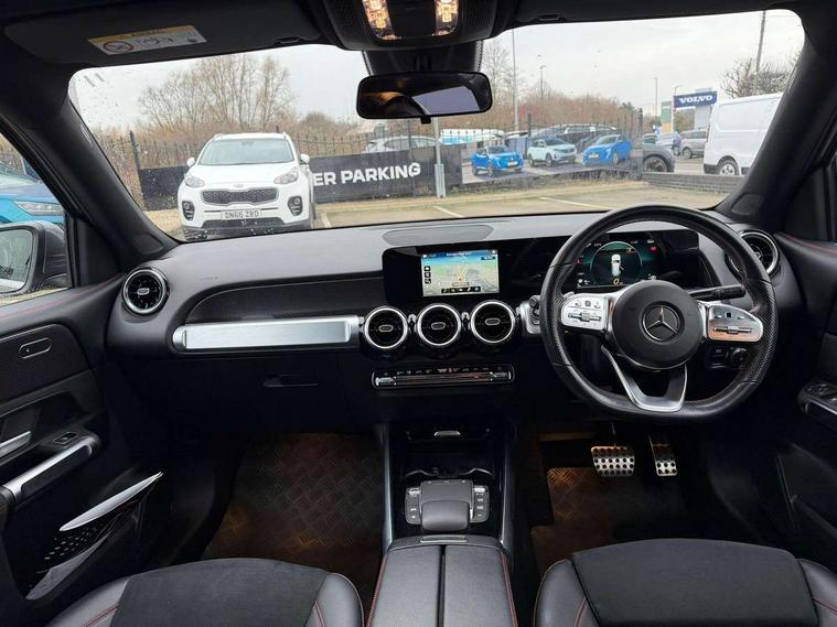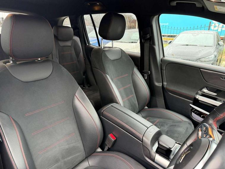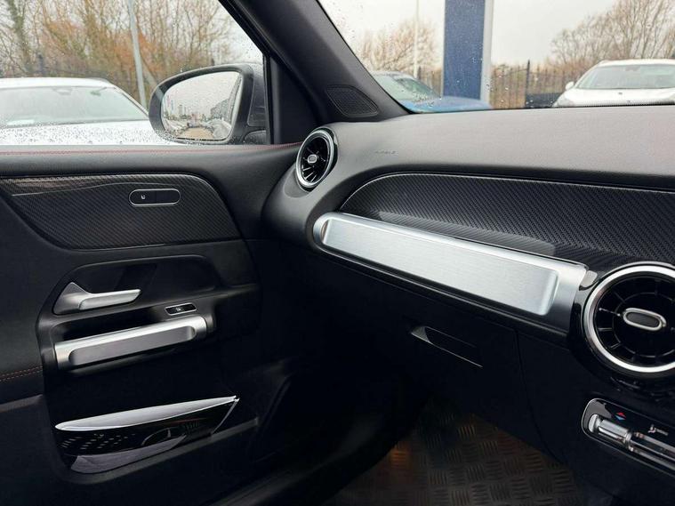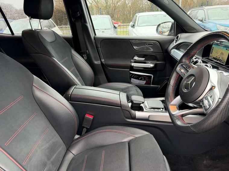 180 degree reversing camera, 7 inch digital instrument cluster display, Active lane keeping assist, Attention assist - Monitors steering behaviour and long journey fatigue, Brake pad wear indicator warning light, Car wash mode, Cruise control with limiter, DYNAMIC SELECT with a choice of driving modes (ECO, Comfort, Sport and Individual), ECO start/stop function, Fluid level warning indicator for fuel, oil, coolant and washer fluid, Hard disk navigation, Hey Mercedes Voice activation, Lamp failure indicator, Mercedes me connect including emergency call system, accident recovery, breakdown management and maintenance, Mercedes me remote services, Outside temperature gauge, Owners manual and service booklet in English, Parameter steering system, Pre-installation of private car share, Radio aerial integrated into front and rear windshields, Service indicator (ASSYST), Speed limit assist, Trip computer in multifunction display with current consumption indicator, Comfort suspension, Rear axle multi-link, 7 inch digital media screen display, DAB digital radio tuner, MBUX multimedia system with DAB digital radio and touchpad including satellite navigation, Mercedes Benz sound system (100 W) with 6 speakers, Pre installation for Mercedes Benz Link, USB (type C) port in front stowage compartment, USB (type C) ports (2) in stowage compartment, Adaptive brake lights, Aerial for GPS, AMG bodystyling door panels black grained with chrome plated inserts, AMG bodystyling front apron with chrome splitter, AMG bodystyling rear apron with diffuser optics and chrome trim element, AMG specific front and rear bumper including underride guard in high gloss chrome, Beltline strips and weather strip in chrome, Body coloured door handles, Body coloured door mirror caps, Electric adjustable and heated door mirrors with integrated LED side indicators, Exhaust system with dual flow exhaust pipes (non-functional), Front and rear electric windows, Headlamp assist automatic headlamp activation, Heated glass rear windscreen + timer control, High level LED third brake light, Interior mirror with black reading lamps and frameless, LED high performance headlamps with integrated LED daytime running lights, LED tail lamp, Polished aluminium roof rails, Privacy glass with dark tinting on rear side windows and rear window, Radiator grille with pins in chrome and single louvre with chrome insert, Rain sensor windscreen wipers, Rear fog lamp, Rear side wing doors, Rear wiper, Two visible tailpipe trim elements exhaust, 3 seat bench in 2nd row, 3 spoke multifunction sport steering wheel in nappa leather, Air conditioning - Two zone thermotronic luxury automatic climate control with display, AMG sports pedals with brushed stainless steel surfaces and black rubber studs, Artico man-made leather/Microfibre Dinamica upholstery with red contrast stitching, Automatic child seat recognition sensor, Black floor mats with AMG lettering, Black roof lining, Fore/aft adjustment rear seats, Freight packaging with tie-down hooks, Front centre armrest with stowage, Front door sills with Mercedes Benz lettering, Front passenger grab handle with brushed side silver chrome, Galvanished gear shift paddles on steering wheel, Heated front seats, Height/reach adjustable steering column, Luggage net on driver/front passenger seat backrest, Rear armrest with two integral cup holders for drinks, Rear seat easy entry, Single front passenger seat, Sports seats with adjustable head restraints, Stowage compartment in centre console, Stowage compartment with retractable cover, Third row of seats for two people on rear seat, Touchpad on center console, Twin front cup holders, Two outer rear seat isofix and top tether child seat fixing points, Interior lighting with light and sight pack - GLB, Seat comfort package - GLB, 3 rear 3 point seatbelts, Active bonnet pedestrain safety measure which detects an impact and raises bonnet by 65mm, Active brake assist includes forward collision warning system with autonomous braking, Adaptive brake assist with hold function and hill start assist, Airbags - kneebag for driver, Anti-lock braking system (ABS) with brake assist, Childproof locks manually operated for rear doors and electrically operated for rear power windows, Crash responsive emergency lighting, Curve dynamic assist, Driver and front passenger head and sidebags, Driver and front passenger windowbags, Dual stage driver and front passenger airbags, Electronic parking brake, Electronic stability programme with acceleration skid control, Front and rear seatbelt reminder, Front brake callipers with Mercedes Benz lettering, Front passenger seat occupancy sensor, Tyre pressure monitoring system, Warning triangle and first aid kit, KEYLESS-GO starting function, Remote central locking and crash sensor with emergency opening function, Thatcham category 1 alarm system with immobiliser and interior protection, Urban guard vehicle protection - Anti theft alarm system, tow away protection with visual and acoustic warning and alarm siren, Vehicle key with decorative surround in chrome, Black air vents with chrome surround, Carbon structure trim, 19" AMG 5 twin spoke light alloy wheels painted in tantalite grey with high sheen finish, Summer tyres, Tirefit tyre sealant kit,
