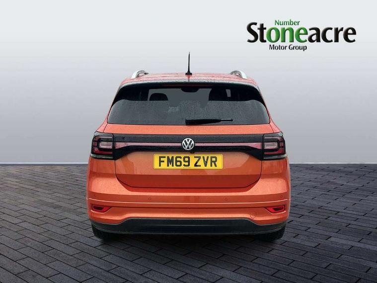 'Lights On' Reminder warning buzzer, Active Info display 10.25" high resolution TFT dash display with customisable menu and information, Adaptive cruise control including front assist, radar sensor controlled distance monitoring system, city emergency braking, cruise control/speed limit, Car net app connect combined functionality of Apple CarPlay, Android Auto and MirrorLink, USB connection, audio and voice control, Driver alert system, eCall emergency call system, Lane assist, Multifunction computer with visual gear change recommendation for fuel consumption, Power assisted speed sensitive steering, Speedo, rev counter, electronic odometer, trip, service interval display, exterior temperature and fuel gauge, Stop/start system, Warning sound and light for doors and tailgate open, Warning sound and light for front seatbelts unfastened, We Connect Go Dongle, Battery regeneration during braking, Misfuel prevention device, 2x USB connection with USB charging sockets and in rear centre console, Premium USB cable for Apple or Android smartphone compatibility, Automatic dimming interior rear view mirror, Automatic hazard lights activation under emergency braking, Body colour door handles, Body colour rear roof spoiler, Body coloured bumpers, Dusk sensor + automatic driving lights, Front and rear electric windows, Front fog lights with static cornering function, Galvanised body, Heated rear window, High level 3rd brake light, LED dipped and main beam headlights with automatic range adjustment including separate unique signature LED daytime running lights, Lower door sills and door pillars in black, Manual coming/automatic leaving home lighting function, Radiator grille with high gloss surface and chrome strip, Rain sensor, Rear lights incorporating LED technology, Rear tinted glass 65% approx light absorbing from B pillar backwards, Rear window aerial, Rear windscreen washer and wiper with interval delay, Reflectors in all doors, Silver roof rails, Stainless steel door sill protection, Tailgate with integrated roof spoiler, Unique R Line badging, Windscreen wipers/ intermittent wipe + 4 position delay, 12V Accessory socket in centre console, 2 Front and rear reading lights incorporating LED technology, 2 Zone electronic climate control with automatic air recirculation, 3 rear head restraints and 3 rear three point seat belts with ECE label, 60/40 split folding rear seat backrest, Aluminium pedals, Black headlining, Carbon flag cloth upholstery, Drawer under drivers seat, Driver and front passenger sunvisor with vanity mirror, Driver's sunvisor with ticket holder, Dust and pollen filter, Front + rear carpet mats, Front centre armrest with storage compartment and two rear air vents, Front seat back storage pockets, Front seat R Line logo with rear seat backrest, Front sports seat with height and lumbar adjustment, Glovebox, Heating and fresh air system with 4 stage blower, Height/reach adjust steering wheel, Instrument lighting white adjustable panel illumination, Interior light with delay, Isofix child seat preparation for 2 rear child seats, Leather trimmed three spoke multifunction steering wheel with contrast stitching and aluminium inserts with R Line logo, Luggage compartment cover, Luggage compartment lighting, Moveable and foldable Rear bench seat, Storage compartment in drivers and front passengers door, Variable boot floor, Discover Navigation infotainment system pack - T cross, R Line styling pack - T-cross, Anti-lock Braking System (ABS) with Hydraulic Brake Assist (HBA), Automatic post collision braking system, Driver and front passenger safety-optimised head restraints, Drivers and Front Passengers airbags with front passengers airbag deactivation switch, ESC with EDL, ASR, EDTC and trailer stabilisation function, Extended and proactive pedestrian protection, Front and rear curtain airbags, Front seat side impact airbags, Height adjustable 3 point automatic front seatbelts with pretensioners, Hill start assist, Pre crash preventive occupant protection, Rigid safety cell with front and rear crumple zones, Tyre pressure loss indicator, Volkswagen roadside assistance, Alarm with interior protection and deactivation via infotainment system, Child security locks in rear doors, Remote tailgate unlocking using key fob, Race decorative inserts in dash and doors, 18" Nevada black alloy wheels + anti theft wheel bolts,