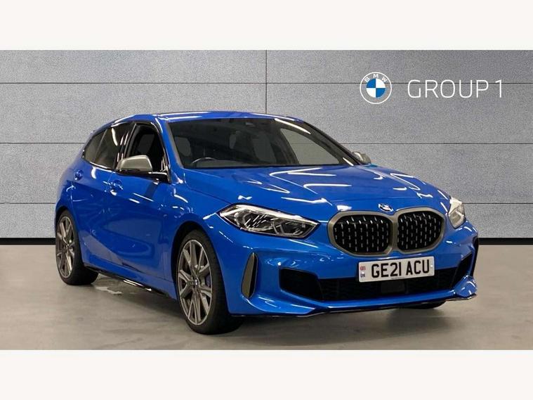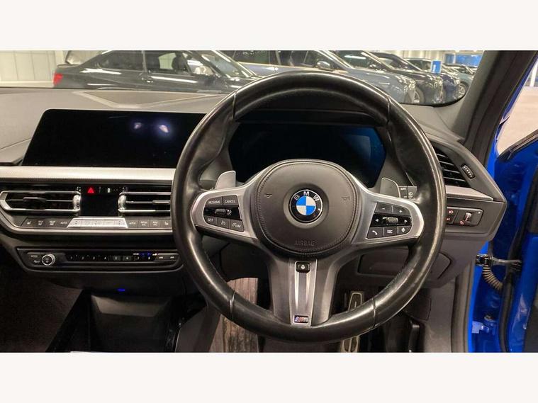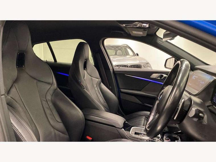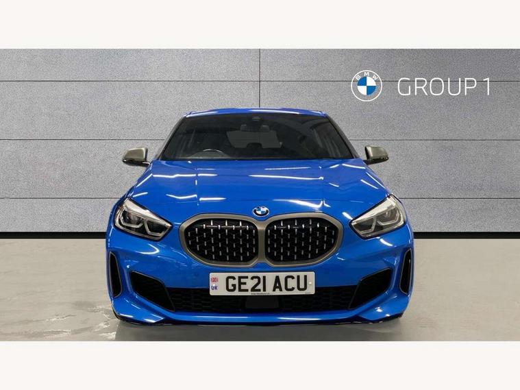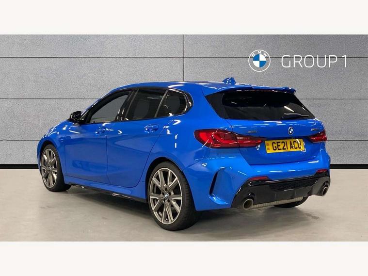 Active guard plus, Attentiveness assist, Bluetooth / WiFi interface for wireless connection of mobile terminal devices and audio streaming, BMW ConnectedDrive online services, BMW Teleservices, Check Control warning system for monitoring of lights and door/luggage compartment open warning, Eco pro mode, Electro hydraulically controlled multi-plate clutch transfers drive to rear axle and with power take-off device located on the front differential., Energy efficient operating strategy, Front axle single joint with specific axle kinematics to minimise drive influences on steering + provide increased rigidity agile driving behaviour, Gearshift time display in manual mode, Integrated owners handbook, M Sports steering with M135i xDrive specific settings, Oil sensor for level and grade, On board computer, Optimum shift indicator, Personal Profile, Pull away assistant, Rigidly mounted rear subframe - Multi link construction with separate spring / damper configuration and excellent driving characteristics, Speed limit Info including no-overtaking indicator, Speed limiter, Sporty fast gear shifting in sport mode, Aluminium lightweight construction, Anti roll bar front and rear, Balancer shaft, Double VANOS, Drive Performance Control, Eight speed sport automatic transmission with gearshift paddle switches, Electronic differential lock, Electronic selector lever, Engine cover with M performance designation, High precision injection, Larger fuel tank capacity (50 litres), Launch control, M135i specific heavily de-throttled engine intake air guide, M135i specific high-performance cooling package, M135i specific larger turbocharger with integrated divert-air valve, Petrol Particulate Filter, Twin tube gas filled shock absorbers with degressive characteristic curve, VALVETRONIC engine management, Variable, stepless and infinitely adjustable distribution of drive torque between the front and rear axles, xDrive intelligent all wheel drive with M135i specific reinforced components, DAB Digital radio, Stereo speaker system with 2 mid range speakers in the front door trims and rear parcel shelf + 2 central bass speakers underneath the front seats, Auto dimming rear view mirror, Automatic headlight beam throw control, Automatic windscreen wipers and automatic headlight, Body colour door handles, Body colour roof trims, Cerium grey exterior mirror caps, Direction indicator side lights in exterior mirrors, Exhaust tailpipe, Cerium Grey with bevelled finish - twin, round 100mm, left and right split, Fading support, Folding side mirrors with auto dimming/folding wing mirrors with auto dimming, Follow me home headlights, Front and rear bumper system with replaceable deformation elements, Front and rear electric windows with open and close fingertip control, anti trap facility and comfort closing, Front door sill finishers with M135i designation, Green tinted heat protection glazing, Heated, electrically adjustable exterior mirror aspheric on driver side, convex on passenger side, High gloss shadowline window frame, Recess cover mirror frames and B/C pillar embelisher trim, High level third brake light, Integrated front windscreen with washer jets, Kidney grille frame in Cerium Grey with Mesh design, LED daytime running lights, LED eyebrow turn indicators, LED front fog lights, Lightweight engineering, M logo designation side in cerium grey, M Performance exhaust system with valve control and minimised exhaust back pressure, M Performance specific setup, M Sport spoiler, Matt black air guide grilles, Matt black wheel arch trim, Model designation on electric bootlid includes xDrive designation for M135i xDrive, Nearside reverse light in rear light cluster, Preparation for high beam assistant, Rear fog lights, Rear window wiper, Reinforced crank drive, new pistons and adapted con rods, Shark fin antenna, Trailer stabilisation logic, Visible VIN plate, Welcome lighting, 12V power socket in front centre console with blanking plug, 3 rear seat head restraints, 3 spoke sports leather steering wheel with black leather and stitching, pearl chrome decorative finish, specific M Badge, Ambient interior lighting, Anthracite headlining, Child seat ISOFIX attachment for two outer rear seats and front passenger seat with anchorage points, Conditioned based service, Driver and front passenger seat heating, Floor mats in anthracite velour with contrasting colour seam to match contrast stitching on instrument panel, Folding rear clothes hook, Four grab handles integrated in roof lining, Front and rear door pockets with bottle holders, Front and rear side armrest integrated into door trim, Front armrest, Front M sports seats, Glove compartment, Height adjustable front head restraints, Luggage compartment for bag hooks on left and right, foldable luggage compartment liner and two lashing eyelets, Manual adjust steering wheel, Multi-function controls for steering wheel, Storage compartment in centre console, Sun visors with vanity mirrors and insert tab, Two front centre console cupholders, Two zone automatic air conditioning, Additional interior lighting pack - 1 Series M135i, Additional storage compartment pack with code 493 -1 series, BMW live cockpit professional pack- 1 Series, Connected pack professional - 1 Series, Interior lights pack - 1 Series, M Sport exterior styling aerodynamics pack - 1 Series 135i, 2 tone horn, 3 point seatbelts on all seats, front pyrotechnic belt tensioners, stopper and belt force limiters, rear coded belt buckles, Airbags - Front driver/passenger, front and rear curtain head protection, front side, manual deactivation of front passenger airbag, Anti lock braking system (ABS) with brake assist, BMW emergency call, Brake drying, Braking readiness, Child proof locking system in rear door, Comfort modes, Cornering brake control, Crash sensor activating central locking release, hazard warning lights, fuel cut off, interior lighting + activation of safety battery terminal clamp, Driver and front passenger
