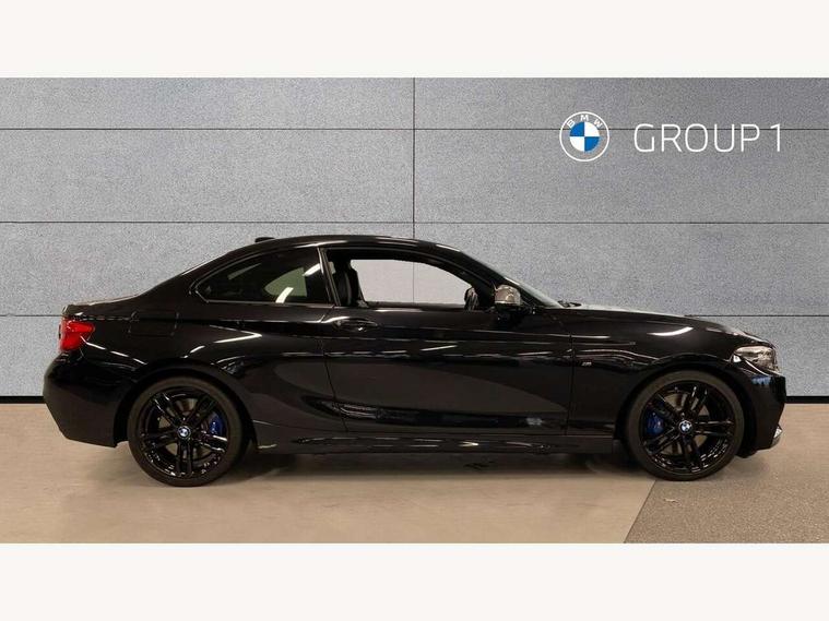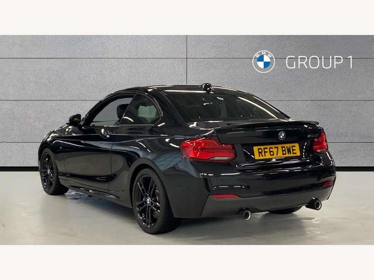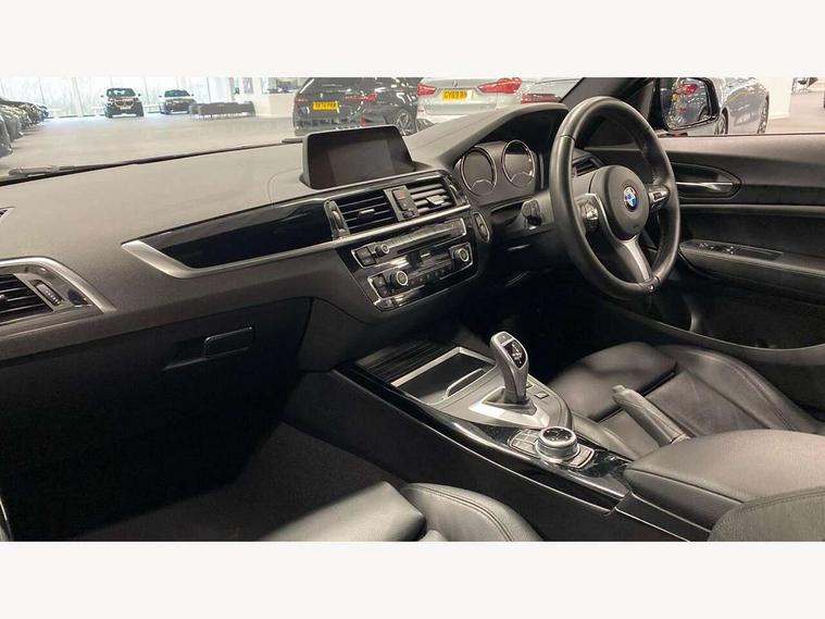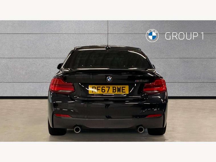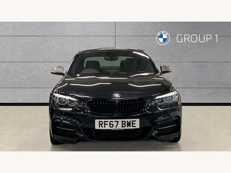 BMW Online services, BMW Teleservices, Brake pad wear indicator warning light, Check control system, Door/boot open warning, Lights on warning, Oil temperature gauge, On board computer, Outside temperature display, Real time traffic information, Service interval indicator, Speed limiter, Stop/start button, Variable sport steering, Drive Performance Control, Sports function on gearbox with steering wheel mounted gearshift paddles, BMW professional radio/CD/MP3, DAB Digital radio, 2 speed adjustable intermittent wipers with wash/wipe function, Auto dimming rear view mirror, Body colour bumpers, Body colour door handles, Body colour roof mouldings, Chrome kidney grille with black vertical slats, Door sill finishers, Dual dark chrome exhaust tailpipes, Dynamic brake lights, Electric adjustable heated door mirrors, Electric front windows/one touch facility, Ferric grey mirror caps, Follow me home headlights, Headlight range control, Heat insulating tinted glass, Heated windscreen washer jets, LED rear lights, LED welcome home lights, M aerodynamic body styling, M rear spoiler, Rain sensor including auto headlights activation, Shark fin roof aerial, Welcome lighting, 12V sockets in front centre console and passenger footwell, 3 Spoke M sport nappa leather multifunction steering wheel, 4 grab handles, Anthracite headlining, Anthracite Velour floor mats, Dakota leather upholstery, Folding storage compartment with glasses holder + coin tray, Front cupholders x 2, Front door storage bins, Front head restraints, Front sliding armrest, Front/rear armrests within door panels, Glovebox with lid, Isofix rear child seat preparation, Lashing eyelets in boot, Leather gearknob, Leather handbrake lever, Reach + rake adjustable steering column, Rear centre armrest, Rear coat hooks, Storage compartment in rear centre console, Interior comfort pack - 2 Series/M2, 3 point seatbelts, ABS/EBD, Automatic Stability Control (ASC), BMW emergency call, Cornering brake control (CBC), Crash Sensor - activates hazard/interior lighting + unlocks doors, Driver/Front Passenger airbags, DSC+, Dynamic brake control, Dynamic Traction Control - DTC, Front and rear curtain airbags, Front seat belts warning, Front seatbelt force limiters, Front seatbelt pretensioner, Front side airbags, Hill start assist, M Sport braking system, Manual passenger airbag deactivation function, Tyre pressure monitoring system, Warning triangle and first aid kit, Drive away door locking, Electronic immobiliser, Key integrated remote control central locking, Locking wheel bolts, Remote control Thatcham category 1 alarm,