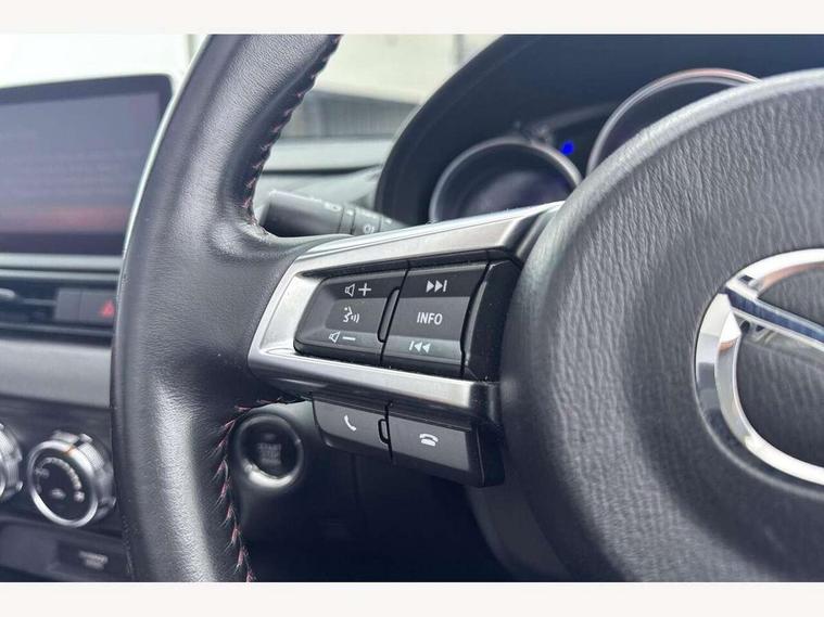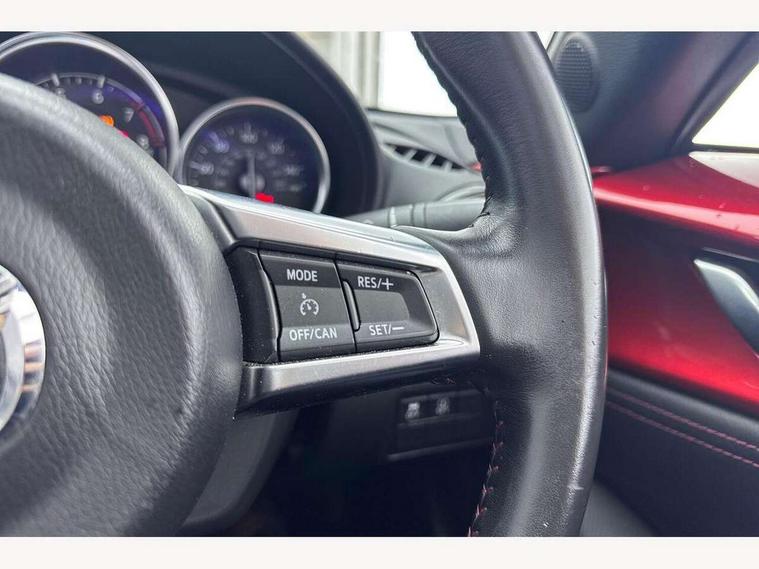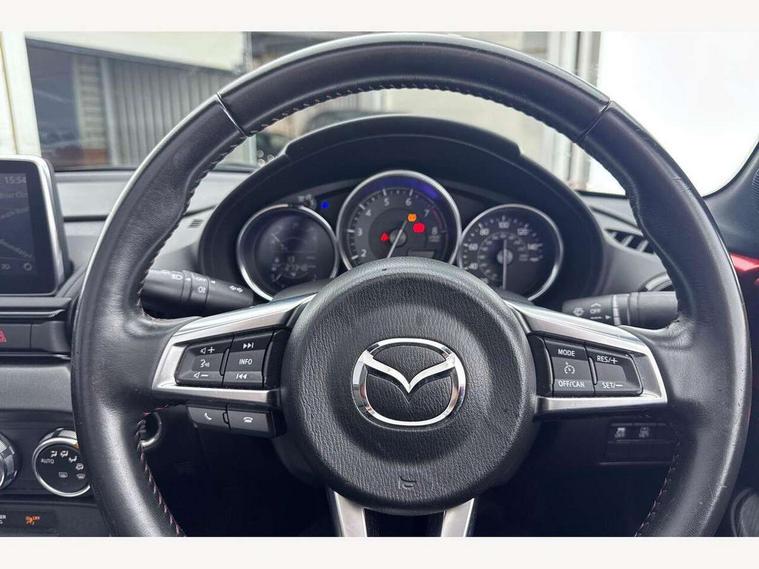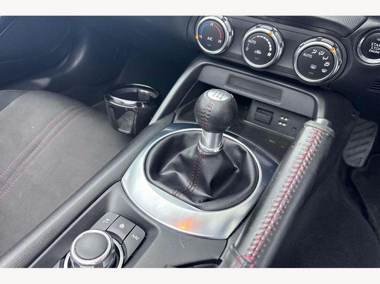 7" touchscreen with multimedia commander, Cruise control + speed limiter, Engine start/stop button, Integrated bluetooth with steering wheel mounted controls, PAS, Remote boot release, Satellite navigation system, Trip computer, Water temperature gauge, Limited slip differential, 6 speakers, Auxiliary input socket, DAB Digital radio, MP3 compatible radio/single CD player, USB/iPod connection, Automatic headlamp levelling, Body colour bumpers, Coming/leaving home lighting function, Dual exhaust pipes, Electric front windows/one touch facility, Electrically heated door mirrors, Front intermittent wipers, LED daytime running lights, LED Headlights, Piano black door mirrors, Premium cloth soft top with integrated heated glass window and soft top cover, 12V socket, Black cloth trim with red stitching, Body coloured inner door trims, Centre console storage box, Climate control air conditioning, Cupholders, Front centre armrest, Front head restraints, Height adjustable front seats, ISOFIX front passenger seat child seat compliance, Leather gear knob, Leather handbrake lever, Leather steering wheel, Lockable rear storage box, Sports seats, Tilt/slide reclining front seats, Windblocker, 3 point ELR front seatbelts with pretensioners, ABS+Electronic Brake force Distribution, DSTC-Dynamic Stability and Traction Control, Dual front airbags, Fasten seatbelt reminder, Hill hold assist, Manual passenger airbag deactivation function, Side airbags, Tyre pressure monitor, Alarm with interior movement sensor, Immobiliser, Remote central door locking, Remote keyless entry, Superlocking, 17" Gunmetal alloy wheels, Tyre puncture repair kit,