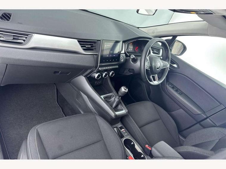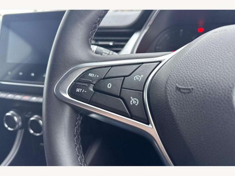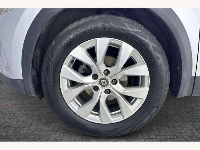 4.2" TFT Driver information display, Cruise control + speed limiter, eCall emergency call system, Eco mode, Gear change indicator, Lane departure warning system, Lane keep assist, Renault automatic emergency assist, Traffic sign recognition, Trip computer, Variable assistance power steering, EasyLink Nav 7" touchscreen, 4x20W amp, FM DAB, sound auditorium, 2xUSB, 1xJack, Bluetooth, smartphone integration plus, Apple carplay/Android auto, Automatic front wipers with rain sensors, Automatic headlights, Body colour door handles, Body coloured bumpers, Body coloured door mirrors, Electric adjustable/heated/folding door mirrors, Electric front windows + one touch + anti-pinch, Electric rear windows, Extra tinted glass in rear windows and tailgate, Full LED front and rear headlamps integrating daytime running lights at the front and rear, Gloss black side door protection with chrome effect, LED front fog lights, Rear fog lights, Rear wiper, Roof bars, Variable speed on front windscreen wipers, 12V Accessory socket, 3 rear headrests, 5.2L front glovebox, 60/40 split folding rear seat bench, Automatic climate control with one touch demist function, Centre console storage tray, Cloth upholstery, Front head restraints, Heating system with pollen filter, Height adjustable driver's seat, Height/reach adjust steering wheel, ISOFIX child seat fixing points on rear outermost seats, Middle console with armrest and storage, Rear air vents, Synthetic leather steering wheel, 3 rear seatbelts, ABS+EBA, AEBS, Distance warning alert, Driver and front passenger, side, head and curtain airbags, Driver height adjustable seat belt, Electric parking brake, Electronic stability control, Front and rear no seatbelt warning sound, Front dash warning indicator in case of heavy braking, Front driver and passenger side airbag deactivation, Hill start assist, Rear door and window child locking function for rear door, Tyre pressure warning light, Anti drill door locks and locking fuel cap, Deadlocking system, Hands free keycard with push button and start/stop function, RAID (Renault Anti-Intruder Device) automatic door locking, Remote central locking with thatcham approved immobiliser, Black soft touch dashboard with black gloss air vent surrounds,
