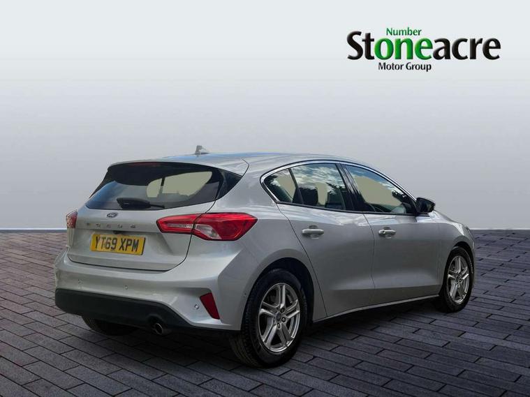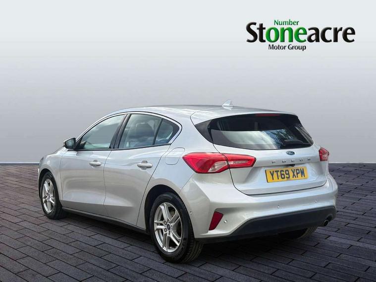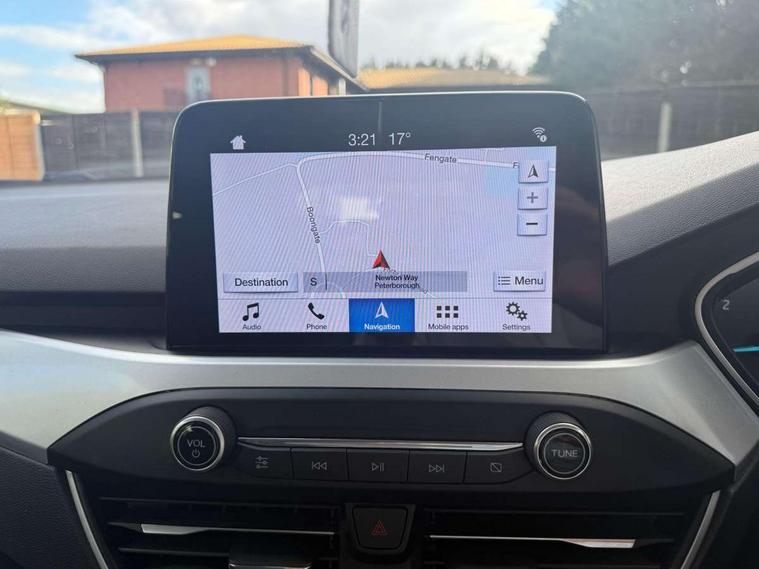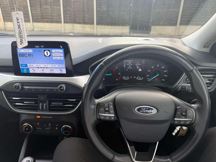 Bluetooth system, Cruise control + speed limiter, Digital clock, Easy fuel capless refuelling system, Eco mode, Ford pass connect, Ford SYNC 3 with 8" TFT touchscreen, and app link Android auto/Apple carplay, Intelligent speed assist, Lane keeping aid with lane departure warning, PAS, Selectable drive mode, Trip computer, Diesel particulate filter, 6 speakers, Aux input, 'Quickclear' heated windscreen/heated washer jets, Auto headlamps (on/off), Body coloured bumpers, Body coloured door handles, Body coloured electrically operated and heated door mirrors with side indicators, Electrically operated front and rear windows with one touch opening and closing, Front fog lamps with cornering function, Front variable intermittent wipers with electric wash, Halogen reflector headlamps, Heated rear window, LED daytime running lamp, Tailgate wash/wipe, 3 spoke leather trimmed steering wheel with integrated audio controls, 60/40 split back and cushion rear seats with 2 height adjustable headrests, Centre console with armrest, Cloth upholstery, Driver's lumbar support, Front floor mats, Height adjustable front headrests, Isofix child seat preparation, Leather gear knob, Manual air conditioning, Reach + rake adjustable steering column, Rear centre headrest, ABS+Electronic Brake force Distribution, Auto hold function, Driver airbag, Electronic parking brake, Electronic stability control, Front and rear seatbelt reminder, Front inertia reel height adjustable seatbelts with pre-tensioners, Front passenger airbag, Front side airbags, Hill start assist, Passenger airbag deactivate switch, Post collision braking, Pre collision assist with autonomous emergency braking and pedestrian/cyclist detection, Side curtain airbags, Three rear inertia reel lap/diagonal seatbelts, Tyre pressure monitoring system, MyKey system, Remote central locking & engine immobiliser, Thatcham category 1 alarm, Mini steel spare wheel,