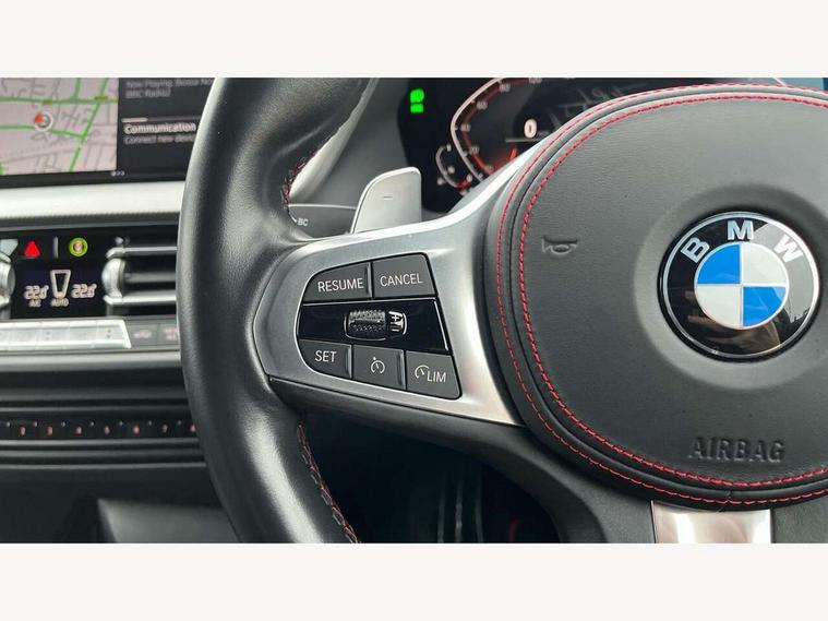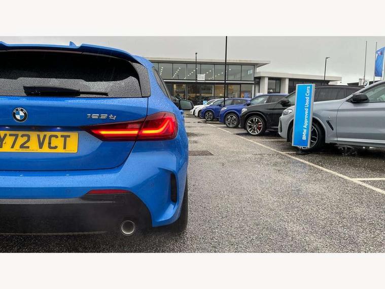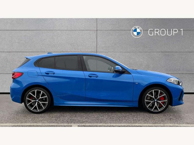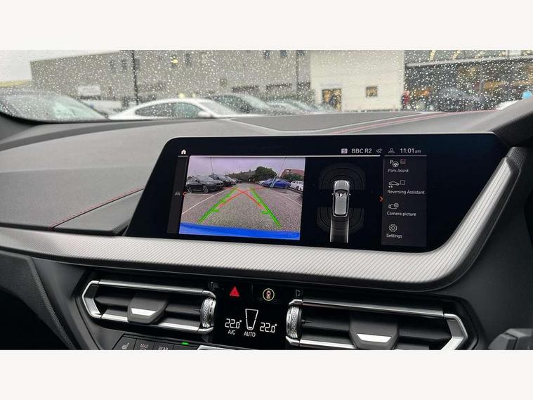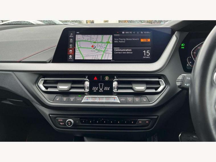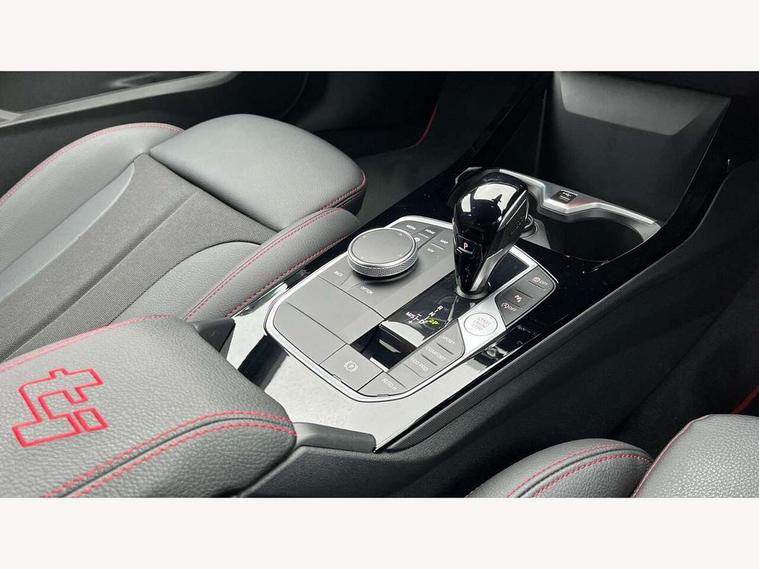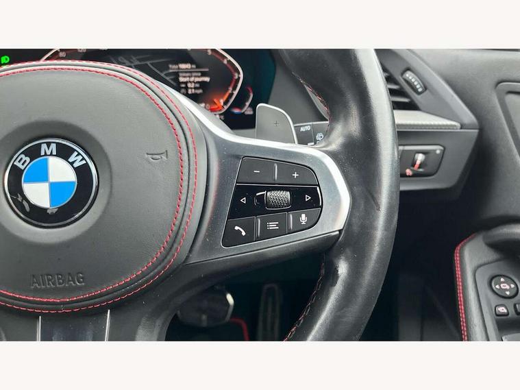 Active guard plus, Attentiveness assist, BMW ConnectedDrive online services, BMW Teleservices, Check Control warning system for monitoring of lights and door/luggage compartment open warning, Cruise control with brake assist, Eco pro mode, Electric power steering with Servotronic steering optimised at all speed ranges, Front axle single joint with specific axle kinematics to minimise drive influences on steering + provide increased rigidity agile driving behaviour, Integrated owners handbook, Lane departure warning system, Oil sensor for level and grade, On board computer, Optimum shift indicator, Personal Profile, Pull away assistant, Rigidly mounted rear subframe - Multi link construction with separate spring / damper configuration and excellent driving characteristics, Speed limit Info including no-overtaking indicator, Speed limiter, Aluminium lightweight construction, Anti roll bar front and rear, Balancer shaft, Double VANOS twin scroll turbocharging system, Drive Performance Control, Eight speed sport automatic transmission with gearshift paddle switches, Electronic differential lock, High precision injection, Larger fuel tank capacity (50 litres), M sport suspension with M128i xDrive specific settings, Petrol Particulate Filter, Twin tube gas filled shock absorbers with degressive characteristic curve, VALVETRONIC engine management, DAB Digital radio, Auto dimming rear view mirror, Automatic headlight beam throw control, Automatic windscreen wipers and automatic headlight, Black chrome tailpipe finishers, BMW individual high gloss shadow line with extended content, Body colour door handles, Body colour mirror caps, Body colour roof trims, Chrome 'M' logo side designation, Chrome kidney grille frame with Satin Aluminium struts, Direction indicator side lights in exterior mirrors, Fading support, Folding side mirrors with auto dimming/folding wing mirrors with auto dimming, Follow me home headlights, Front and rear bumper system with replaceable deformation elements, Front and rear electric windows with open and close fingertip control, anti trap facility and comfort closing, Front door sill finishers in black plastic with M designation in metallic look, Green tinted heat protection glazing, Heated, electrically adjustable exterior mirror aspheric on driver side, convex on passenger side, High gloss shadowline window frame, Recess cover mirror frames and B/C pillar embelisher trim, High level third brake light, Integrated front windscreen with washer jets, Kidney frame and struts in high gloss black extended, LED daytime running lights, LED eyebrow turn indicators, LED front fog lights, LED Headlights, Lightweight engineering, Matt black air guide grilles, Matt black wheel arch trim, Model designation on electric bootlid, Nearside reverse light in rear light cluster, Preparation for high beam assistant, Rear fog lights, Rear side wing doors, Rear window wiper, Shark fin antenna, Trailer stabilisation logic, Visible VIN plate, Welcome lighting, 12V power socket in front centre console with blanking plug, 3 rear seat head restraints, 3 seat bench in 2nd row, Anthracite headlining, Black boot net with lashing eyes, Cargo function on 2nd seat row, Centre armrest in black/red highlight including embroidered 'ti' designation in red, Child seat ISOFIX attachment for two outer rear seats and front passenger seat with anchorage points, Conditioned based service, Driver and front passenger seat heating, Floor mats with red binding, Folding rear clothes hook, Four grab handles integrated in roof lining, Front and rear door pockets with bottle holders, Front and rear side armrest integrated into door trim, Front armrest, Front sports seats, Glove compartment, Height adjustable front head restraints, Instrument panel top section , door armrests and door panels in black/red highlight, Luggage compartment for bag hooks on left and right, foldable luggage compartment liner and four lashing eyelets, Manual adjust steering wheel, Multi-function controls for steering wheel, Single front passenger seat, Storage compartment in centre console, Sun visors with vanity mirrors and insert tab, Three spoke M sport design multi function leather steering wheel in unique red stitching, Two front centre console cupholders, Two zone automatic air conditioning, Additional interior lighting pack - 1 Series, BMW live cockpit professional pack- 1 Series, Connected pack professional - 1 Series, Interior lights pack - 1 Series, M Sport exterior styling aerodynamics pack - 1 Series, 2 tone horn, 3 point seatbelts on all seats, front pyrotechnic belt tensioners, stopper and belt force limiters, rear coded belt buckles, Airbags - Front driver/passenger, front and rear curtain head protection, front side, manual deactivation of front passenger airbag, Anti lock braking system (ABS) with brake assist, BMW emergency call, Brake drying, Braking readiness, Child proof locking system in rear door, City braking function, Comfort modes, Cornering brake control, Crash sensor activating central locking release, hazard warning lights, fuel cut off, interior lighting + activation of safety battery terminal clamp, Driver and front passenger seat belt security check, Dynamic stability control + (DSC+), Dynamic Traction Control - DTC, Electrically operated hand brake including automatic hold function, Front and rear disc brakes, M Sport brakes with red calipers, M Sport seatbelts, Seatbelt warning, Side impact protection, Tyre pressure monitoring system, Warning triangle and first aid kit, Central locking switch for all doors, fuel filler cap and luggage compartment, Deadlocking function system to all doors, Drive away locking system on all doors and luggage compartment with de-activated in iDrive settings, Locking wheel bolts, Remote control with integrated key with High-gloss Black inlay and M designation and 1 button for open/ close lock, window, open luggage compartment, Start/stop button illuminated in centre console with keyless e