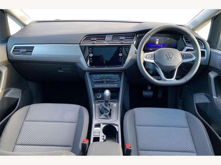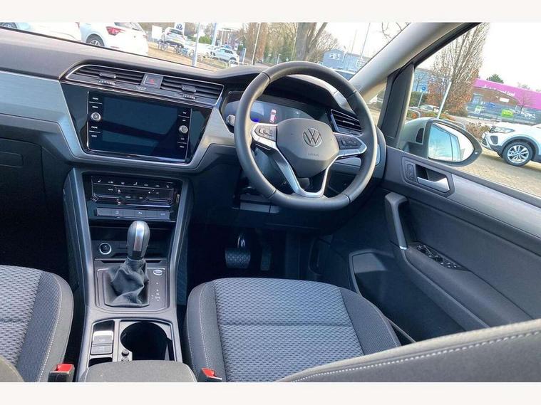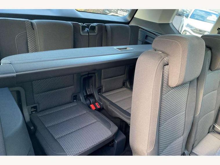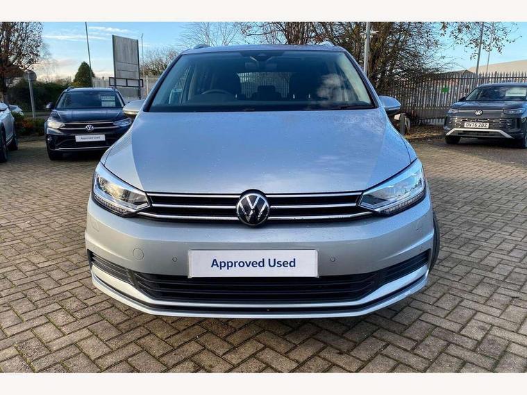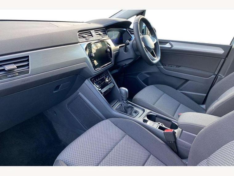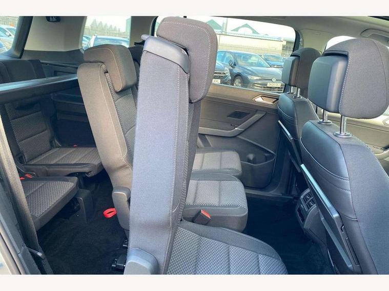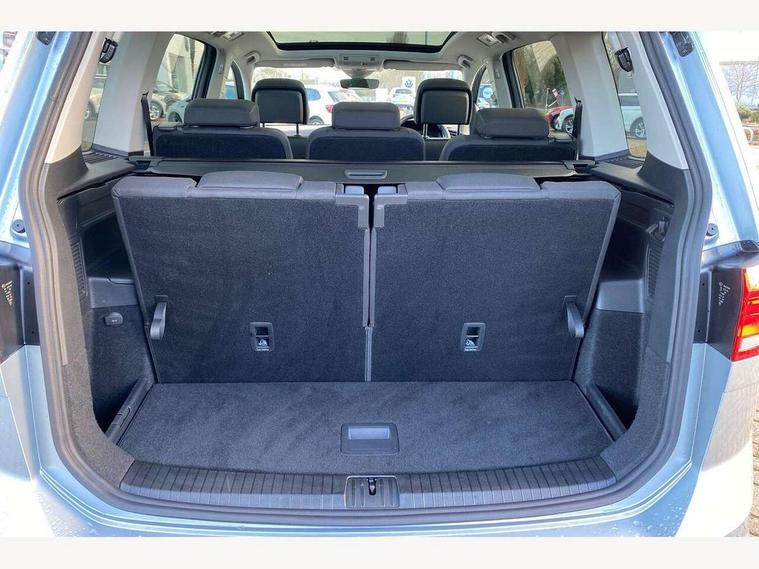 Adaptive cruise control, Audible lights on warning, Discover media navigation touchscreen navigation/radio system with streaming and internet, Driver alert system, Driver profile selection, Dynamic road sign display, Electric tailgate, Electronic odometer, Emergency services call system, Extended, crash-active and proactive Pedestrian and cyclist monitoring, External temperature gauge, Front parking sensors, Lane change system side assist and rear traffic alert, Lane keep assist, Misfuelling protection device, Mobile pairing with SMS function, Mobile phone interface with inductive charging, Rear view camera displayed via vehicles audio system display, Rev counter with fuel gauge, Side scan, Speed limiter, Speed sensitive power steering, Stop/start system, Think blue trainer driver tips and journey analysis, Trip and service interval display, We connect' and 'We connect plus' functionality, Petrol Particulate Filter, Rear stabiliser bar, XDS electronic differential lock, 4x20 watt output, 8 Speakers, Audio Connectivity System, DAB Digital radio, External USB-C data socket with increased charging performance - 2 USB sockets 45W, MP3/WMA compatability, SD card slot, Title and cover art display, USB connection, Aerial integrated into side window, Auto dimming door mirrors, on driver side, surround lighting and front passenger side mirror lowering function, Auto dimming rear view mirror, Automatic coming/leaving home lighting function, Body colour bumpers, Body colour door handles, Body colour door mirrors with integral indicators, Door mirrors with memory function, Dusk sensor + auto driving lights, Electric folding door mirrors, Electric heated + adjustable door mirrors, Electric, glass sliding/tilting panoramic sunroof including integrated roller blind and LED lighting around aperture, Front and rear electric windows, Fully galvanised body, Gloss black finish B pillar, Green tinted heat insulating glass, High level third brake light, Rain sensor, Rear fog lights, Rear side wing doors, Rear tinted glass from B-pillar backwards approx 65% tinted, Rear wash/wipe with intermittent wipe setting, Removable engine badge, Silver roof rails, Tailgate wiper- reverse gear activation, Twin chrome exhaust tailpipes, Volkswagen roundel, Windscreen wipers intermittent wipe, 12V power point for Row 2, 12V socket in luggage compartment, 2 individual fold flat 3rd row seats, 2 three point seatbelts in 3rd row, 2nd row centre armrest, 2nd row centre seat converts into table, 3 single slide/fold/removable 2nd row seats, 3 spoke steering wheel, 3x3 point seatbelts on 2nd row with height adjust on outer seats, 4 boot load lashing points, 4 way adjustable front head restraints, 5 headrests, Activated charcoal canister for intensified evaporation system, Air care climatronic 3 zone air conditioning system with rear air conditioning control panel, Chrome plated radiator grille inserts, air vent surrounds and light switch surrounds, Driver and front passenger under seat drawer, Dust/pollen filters, Foldable front passenger seat backrest with load through function, Front and rear reading lights X 2, Front centre armrest with storage compartment, Front comfort seats with lumbar support, Front cupholders x 2, Front passenger seat height adjust, Front seat storage pockets, Front seatback folding tables, Height adjustable driver's seat, Height/reach adjust steering wheel, Illuminated glovebox, Instrument lighting white adjustable panel illumination with red night time illumination, Interior light with delay, Isofix on 2nd row outer seats, Isofix on 3rd row seats, Large storage compartment in roof console, Lasano cloth upholstery, Leather multifunction steering wheel with gear knob, Leatherette on rear of front seats, Low tunnel 2nd row seat, Luggage compartment lighting, Media box in dashboard on passenger side, Multi storage in passenger/luggage areas, Multi-function centre console with storage facilities, Retractable luggage cover, Split folding rear seat backrests, Storage bins on all doors, Sun visors with illuminated vanity mirrors, Family Pack - Touran, Winter pack without heated washer jet - Touran, 3 point height adjustable front seatbelts, Auto hold function, Automatic post collision braking system, Door open warning reflectors, Driver/Front Passenger airbags, Drivers knee airbag, EDL + ASR, Electronic parking brake, Energy recovery system, ESC with ABS, First aid kit, Front and rear (row 2) curtain airbags, Front assist with autonomous emergency braking, Front seat side impact airbags, Front seatbelt pretensioners, Front/rear disc brakes, Hill hold control, Hydraulic Brake Assist (HBA), Loose wheel warning function, Manual passenger airbag deactivation function, Pre crash preventive occupant protection, Proactive passenger protection system with front and side assist, Rear child proof door locks, Road sign recognition, Seatbelt warning lamp and buzzer, Traction control, Two tone horn, Warning triangle, Alarm with remote central locking and interior protection, Electronic engine immobiliser, Keyless Access Keyless locking and starting system with SAFELOCK, New brushed design decorative inserts in dash and front doors, 17" Salvador alloy wheels with anti-theft wheel bolts, 215/55 R17 self sealing tyres with low rolling resistance,
