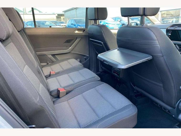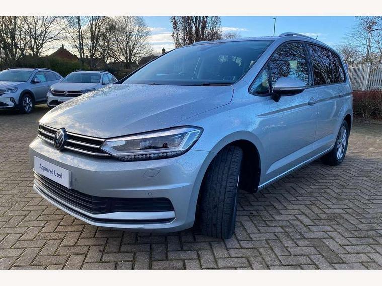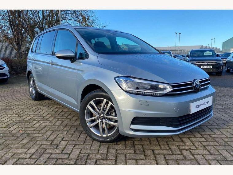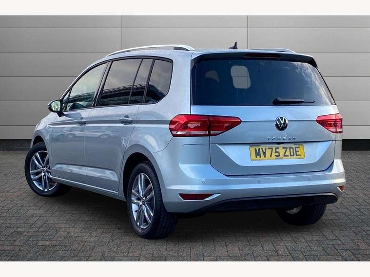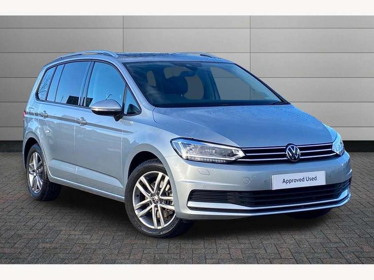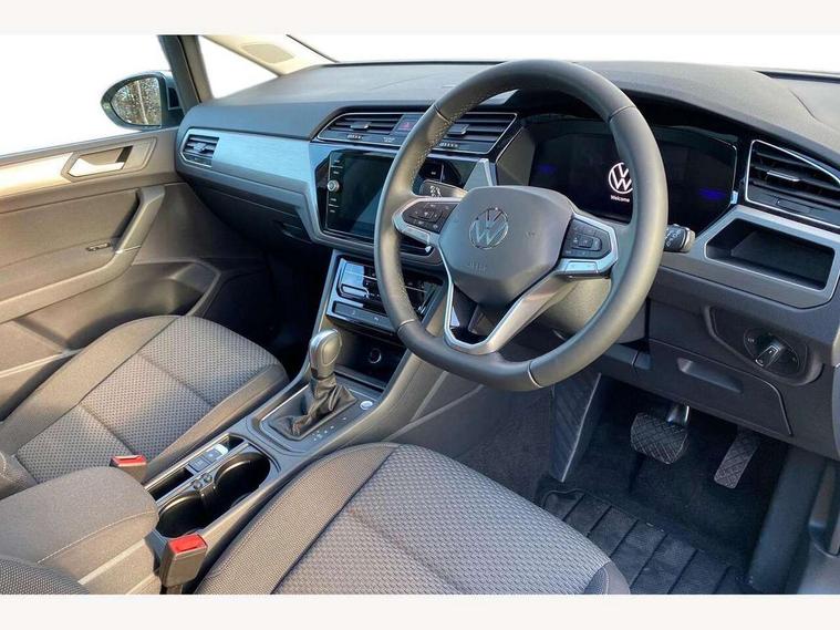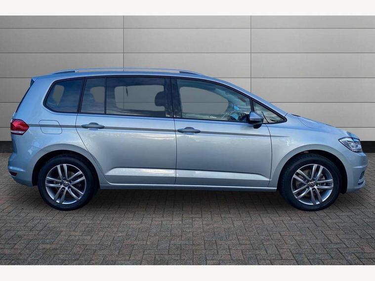 Adaptive cruise control, Audible lights on warning, Discover media navigation touchscreen navigation/radio system with streaming and internet, Driver alert system, Driver profile selection, Dynamic road sign display, Electric tailgate, Electronic odometer, Emergency services call system, Extended, crash-active and proactive Pedestrian and cyclist monitoring, External temperature gauge, Front parking sensors, Lane change system side assist and rear traffic alert, Lane keep assist, Misfuelling protection device, Mobile pairing with SMS function, Mobile phone interface with inductive charging, Rear view camera displayed via vehicles audio system display, Rev counter with fuel gauge, Side scan, Speed limiter, Speed sensitive power steering, Stop/start system, Think blue trainer driver tips and journey analysis, Trip and service interval display, We connect' and 'We connect plus' functionality, Petrol Particulate Filter, Rear stabiliser bar, XDS electronic differential lock, 4x20 watt output, 8 Speakers, Audio Connectivity System, DAB Digital radio, External USB-C data socket with increased charging performance - 2 USB sockets 45W, MP3/WMA compatability, SD card slot, Title and cover art display, USB connection, Aerial integrated into side window, Auto dimming door mirrors, on driver side, surround lighting and front passenger side mirror lowering function, Auto dimming rear view mirror, Automatic coming/leaving home lighting function, Body colour bumpers, Body colour door handles, Body colour door mirrors with integral indicators, Door mirrors with memory function, Dusk sensor + auto driving lights, Electric folding door mirrors, Electric heated + adjustable door mirrors, Electric, glass sliding/tilting panoramic sunroof including integrated roller blind and LED lighting around aperture, Front and rear electric windows, Fully galvanised body, Gloss black finish B pillar, Green tinted heat insulating glass, High level third brake light, Rain sensor, Rear fog lights, Rear side wing doors, Rear tinted glass from B-pillar backwards approx 65% tinted, Rear wash/wipe with intermittent wipe setting, Removable engine badge, Silver roof rails, Tailgate wiper- reverse gear activation, Twin chrome exhaust tailpipes, Volkswagen roundel, Windscreen wipers intermittent wipe, 12V power point for Row 2, 12V socket in luggage compartment, 2 individual fold flat 3rd row seats, 2 three point seatbelts in 3rd row, 2nd row centre armrest, 2nd row centre seat converts into table, 3 single slide/fold/removable 2nd row seats, 3 spoke steering wheel, 3x3 point seatbelts on 2nd row with height adjust on outer seats, 4 boot load lashing points, 4 way adjustable front head restraints, 5 headrests, Activated charcoal canister for intensified evaporation system, Air care climatronic 3 zone air conditioning system with rear air conditioning control panel, Chrome plated radiator grille inserts, air vent surrounds and light switch surrounds, Driver and front passenger under seat drawer, Dust/pollen filters, Foldable front passenger seat backrest with load through function, Front and rear reading lights X 2, Front centre armrest with storage compartment, Front comfort seats with lumbar support, Front cupholders x 2, Front passenger seat height adjust, Front seat storage pockets, Front seatback folding tables, Height adjustable driver's seat, Height/reach adjust steering wheel, Illuminated glovebox, Instrument lighting white adjustable panel illumination with red night time illumination, Interior light with delay, Isofix on 2nd row outer seats, Isofix on 3rd row seats, Large storage compartment in roof console, Lasano cloth upholstery, Leather multifunction steering wheel with gear knob, Leatherette on rear of front seats, Low tunnel 2nd row seat, Luggage compartment lighting, Media box in dashboard on passenger side, Multi storage in passenger/luggage areas, Multi-function centre console with storage facilities, Retractable luggage cover, Split folding rear seat backrests, Storage bins on all doors, Sun visors with illuminated vanity mirrors, Family Pack - Touran, Winter pack without heated washer jet - Touran, 3 point height adjustable front seatbelts, Auto hold function, Automatic post collision braking system, Door open warning reflectors, Driver/Front Passenger airbags, Drivers knee airbag, EDL + ASR, Electronic parking brake, Energy recovery system, ESC with ABS, First aid kit, Front and rear (row 2) curtain airbags, Front assist with autonomous emergency braking, Front seat side impact airbags, Front seatbelt pretensioners, Front/rear disc brakes, Hill hold control, Hydraulic Brake Assist (HBA), Loose wheel warning function, Manual passenger airbag deactivation function, Pre crash preventive occupant protection, Proactive passenger protection system with front and side assist, Rear child proof door locks, Road sign recognition, Seatbelt warning lamp and buzzer, Traction control, Two tone horn, Warning triangle, Alarm with remote central locking and interior protection, Electronic engine immobiliser, Keyless Access Keyless locking and starting system with SAFELOCK, New brushed design decorative inserts in dash and front doors, 17" Salvador alloy wheels with anti-theft wheel bolts, 215/55 R17 self sealing tyres with low rolling resistance,