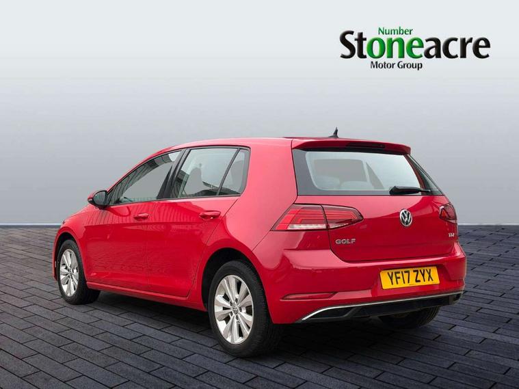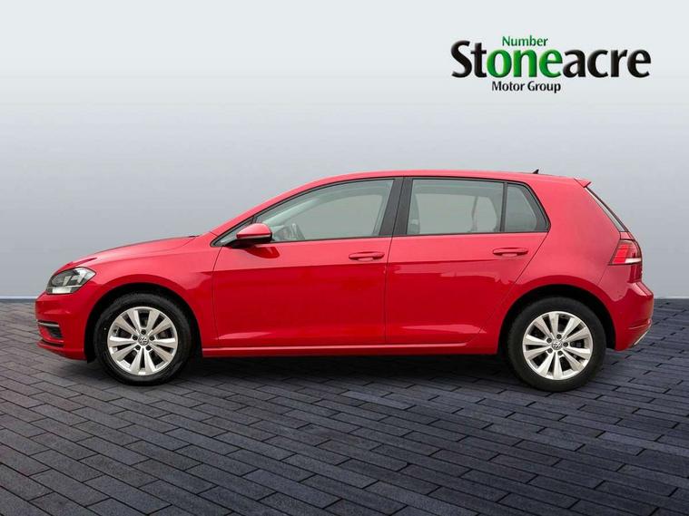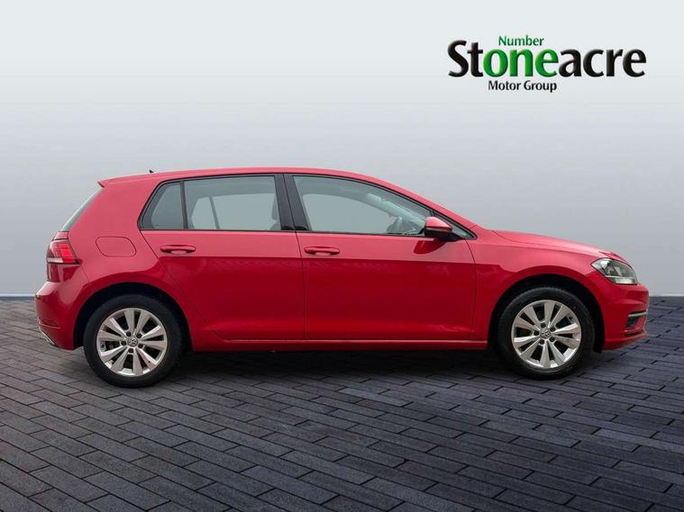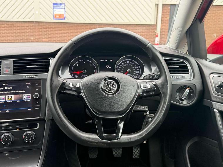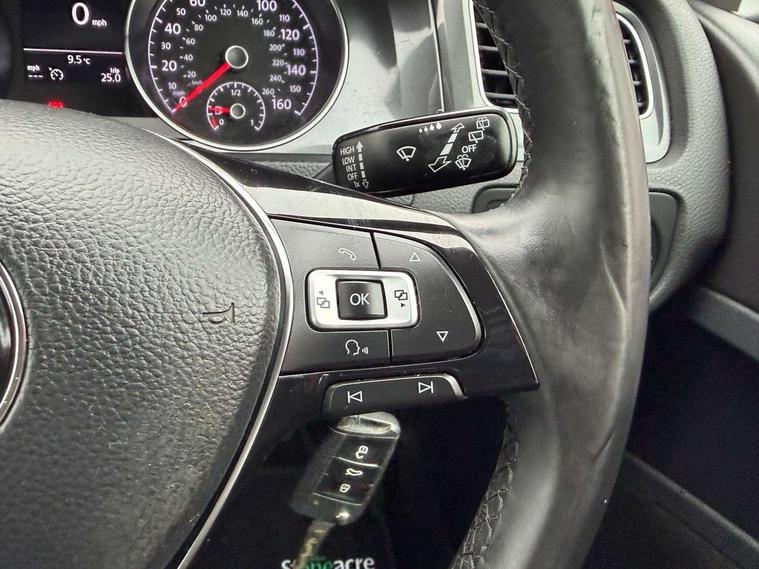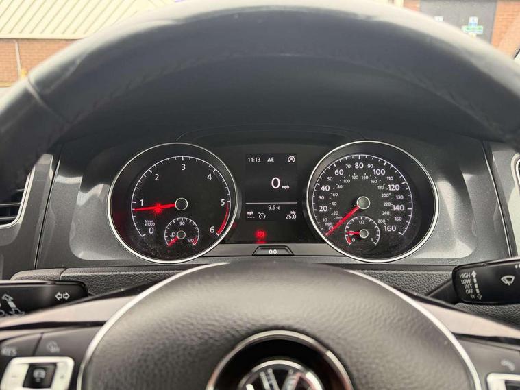 'Lights On' Reminder warning buzzer, 8" touch screen, Adaptive Cruise Control with pedestrian detection and speed limiter, App-Connect, Bluetooth hands free telephone connection, Brake pad wear indicator warning light, Driver alert system, Driver profile selection, Exterior temperature gauge, Front assistant collision mitigation, Instrument cluster in white, Multifunction computer, PAS - speed related, Rev counter, Trip and service interval display, Ultrasonic front and rear optical and audible parking sensors, Warning buzzer and light for front seatbelts unfastened, Diesel particulate filter, XDS electronic differential lock, CD/MP3/WMA, USB and SD card reader, aux-in, Composition media system, DAB Digital radio, Auto dimming rear view mirror, Automatic coming/leaving home lighting function, Automatic headlights, Black front air intake and radiator grille with chrome insert, Black rear diffuser, Body colour bumpers, Body colour door handles, Body colour door mirrors, Electric front windows, Electric rear windows, Electrically adjustable and heated door mirrors, Heated rear windscreen, LED daytime running lights, LED rear lights, Rain sensor, Rear roof spoiler, Rear windscreen washer and wiper with interval delay, 12V socket in luggage compartment, 3 rear headrests, 3 spoke steering wheel, 60/40 split folding rear seat, Bag hook in luggage compartment, Boot lashing points, Cooled glovebox, Courtesy light delay, Cover for storage compartment in centre, Dust/pollen filter, Front and rear reading lights, Front centre armrest with storage box and rear air vents, Front passenger drawer stowage, Front passenger seat height adjust, Front seat back storage pockets, Grab handles, Height adjustable driver's seat, Height/reach adjust steering wheel, Illuminated vanity mirrors, Isofix preparation for 2 rear child seats, Load through provision with rear centre armrest and cupholders x2, Luggage compartment cover, Luggage compartment lighting, Multifunction leather steering wheel with leather gear knob/handbrake grip, Overhead storage box, Pearl grey headlining, Storage box in luggage compartment, Storage compartments in doors, Sun visors, Variable boot floor, height adjustable and removable, Mirror pack - Golf, 3 point height adj front seatbelts + pretensioners, 3 rear 3 point seatbelts, ABS, Automatic post collision braking, Child locks on rear doors, Driver/Front Passenger airbags, Driver/Passenger whiplash optimised head restraints, Drivers knee airbag, Electronic parking brake with auto hold, ESP with EDL + ASR, Front and rear curtain airbags, Front passenger airbag deactivation, Front side airbags, Pre crash system, Tyre pressure monitor, Alarm with interior protection, Electronic engine immobiliser, Remote central locking with 2 remote folding keys, Brushed dark metal decorative inserts in dash and front door panels, Chrome-plated light switch surround, Polar night black centre console, Steel space saver spare wheel,