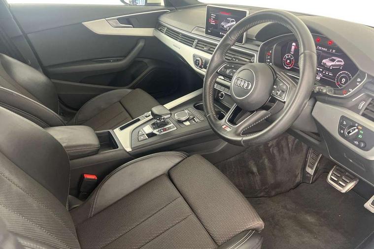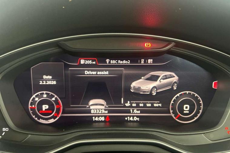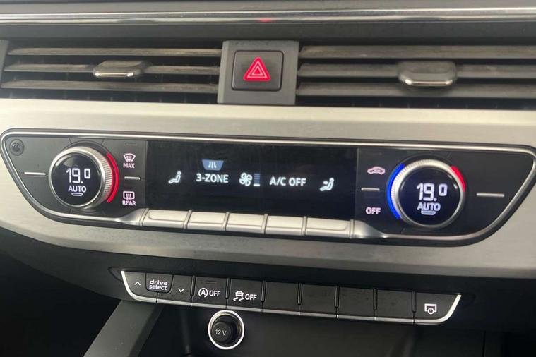 Audi drive select, Audi parking system plus with front and rear sensors, Audible and visual fasten seat belt warning - front and rear, Mobile telephone preparation - bluetooth interface, PAS, Remote electric boot opening/closing, Service interval indicator, Diesel particulate filter, Audi music interface, Auxiliary input socket, DAB digital radio module, Auto dimming rear view mirror, Automatic headlights + automatic windscreen wipers, Body colour bumpers, Body colour door mirrors and handles, Body colour roof spoiler, Body coloured door mirrors, Electric front/rear windows, LED daytime running lights, LED rear lights, Rear wiper, 12V power in rear centre console, 4 zone climate control, Aluminium door sill trims, Double cargo floor, Front centre armrest, Front head restraints, Front/rear floor mats, Height adjustable front seats, Height/reach adjust steering wheel, Isofix front passenger and rear seat preparation, Jack and tool kit, Load lashing points, Luggage compartment cover, Luggage rails, Rear headrests, Split folding rear seat, Non smoking pack - A6, 3 point seatbelts on all seats, ABS/EBD, ASR traction control, Curtain airbags, Driver and passenger airbags, Driver/front passenger side airbags, Electromechanical parking brake, Electronic stability control, Front passenger airbag deactivation, Hill hold assist, Tyre pressure monitoring system, Warning triangle and first aid kit, Anti theft alarm, Anti-theft wheel bolts, Immobiliser, Keyless start, Remote central locking, Space saver spare wheel,