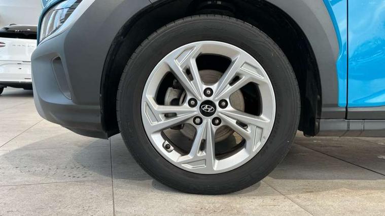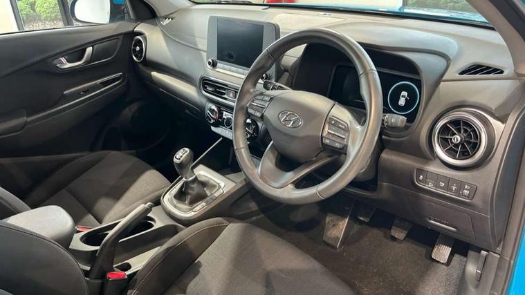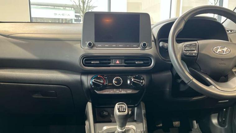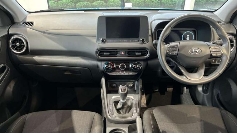 8" Touchscreen display audio + smart device integration, Bluetooth connectivity, Cruise control + speed limiter, Digital clock, Driver attention warning, Driver supervision instrument cluster with 10.25" LCD display, eCall emergency call system, Forward collision avoidance assist with pedestrian detection, Lane follow assist, Lane keep assist, Leading vehicle departure alert (LVDA), Parking system with rear camera and guidance system, PAS, Phone connection with apple carPlay and android auto, Rear parking sensor, Roadside assistance, Tailgate, Windscreen washer fluid sensor and warning indicator, 6 speed intelligent manual transmission, 6 speakers (2 front, 2 tweeters, 2 rear), Front USB ports, RDS and Digital DAB, Steering wheel mounted audio/phone controls, Automatic headlights with dusk sensor, Body colour door mirrors and handles, Door mirror integrated indicators, Electric front/rear windows with drivers one touch/anti-trap, Electrically adjustable and heated door mirrors, Halogen headlights, Halogen rear lights, LED daytime running lights, Positioning Lights - LED, Rain sensor, Rear roof spoiler with integrated LED brake light, Rear side wing doors, Rear wiper, Roof rails, Tinted glass with front door glass and windscreen with shade band, Variable front intermittent wipers, 12V power outlet in front console, 3 seat bench in 2nd row, 60/40 split folding rear seat, Adjustable head restraints, Air conditioning, Centre interior light, Cloth upholstery, Door scuff plate, Driver's seat height adjustment, Driver/passenger sunvisors and illuminated vanity mirrors, Front interior light, Front passenger seat manual adjustments, Height/reach adjustable steering column, Isofix rear child seat fastenings, Leather wrapped steering wheel and gear knob, Luggage compartment lighting, Luggage hooks, Metal paint effect interior door handles, Parcel shelf, Rear centre console with air vents, Single front passenger seat, Sunglasses holder, Vertical adjustment rear head restraints, Trailer wiring package - Kona, Airbags - front, front side and curtain airbags, Anti-lock brake system (ABS), Childproof rear door locks, Downhill brake control, EBD + Brake Assist, Electronic stability control, Fasten seatbelt reminder, Fixed 3 point for second row centre passenger seatbelt, Front seatbelt pretensioners, Height adjustable front seatbelts, Hill start assist control (HAC), Manual parking brake, Passenger airbag deactivate switch, Rear seat alert, Traction control, Tyre pressure monitoring system, Alarm/immobiliser, Deadlocks, Folding key, Locking wheel nuts, Remote central locking, 17" Alloy wheels,