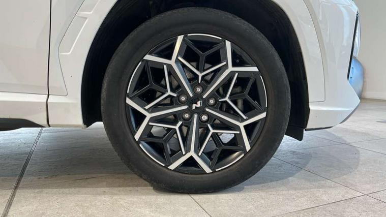 10.25" super vision instrument cluster, 10.25" touchscreen satellite navigation with mapcare and live services, Apple car play/Android Auto, Bluetooth system, Digital clock, Drive mode selector, Driver attention warning, E-call, Emergency stop signalling system, Forward Collision Avoidance Assist (FCA) - Car, Pedestrian and Cycle, Front and rear parking sensors, Intelligent speed limit assist, Lane follow assist, Lane keep assist, PAS, Rev counter, Reversing camera, Roll over sensor, Tailgate open warning light, Trip computer, Trip odometer, Voice recognition, Water temperature gauge, Windscreen washer fluid sensor and warning indicator, Wireless phone charging pad, 2 front and 2 rear speakers with 2 tweeters, DAB Digital radio, Steering wheel mounted audio/phone controls, USB connections in front and rear, Adjustable intermittent front windscreen wipers with aero wiper blade, Auto dimming rear view mirror, Automatic defog system, Automatic headlights with dusk sensor, Automatic windscreen wipers with rain sensor, Black headlamp bezels, Body colour bumpers, Body colour door mirrors with integrated indicators, Body colour exterior door handles, Body coloured wheel arches, Dark chrome effect radiator grille, Electrically adjustable, heated and power folding door mirrors, Follow me home headlights, Front and rear electric windows with anti-trap mechanism and one touch control, Front fog lights, Gloss black door frame moulding, High beam assist, High level third brake light, LED daytime running lights, LED rear lights, MFR - LED headlight with static bending light, N Line body coloured side mouldings, N Line design front grille, N Line Exclusive front and rear bumpers, N Line rear spoiler with fins, Positioning Lights - LED, Privacy glass - Rear windows and tailgate, Rear side wing doors, Rear wash/wipe with intermittent wipe setting, Roof rails, Silver front and rear skid plate, Sports twin tip exhaust and diffuser, Tinted glass with windscreen shade band, Trailer stability assist, 12V power outlets in front console and luggage compartment, 3 seat bench in 2nd row, 40/20/40 split folding rear seat, Adjustable head restraints (Up and down), Alloy pedals, Ambient lighting, Black headliner, Cupholders in rear armrest, Door courtesy lights, Driver and passenger sunvisors with illuminated LED vanity mirrors, Driver's seat electric lumbar support, Driver's seat manual height adjust, Dual zone climate control, Front and rear door pockets, Front armrest with storage box, Front door pocket bottle holders, Front passenger seat lumbar adjustment, Heated front seats, Height/reach adjustable steering column, Illuminated/air conditioned glove compartment, ISOFIX child seat anchorage points attached on outer rear seats, Leather wrapped steering wheel, Leather/suede upholstery, Luggage area underfloor compartment, Luggage compartment lighting, Luggage cover, Luggage hooks, Manual height adjustable front passenger seat, Map and reading lights, N Line logo on steering wheel, Retractable load cover, Single front passenger seat, Sunglasses holder, 3x3 point rear seatbelts, Active bonnet, Airbag - Front, front side, curtain and centre front airbags, Anti-lock brake system (ABS), Brake assist function, Childproof rear door locks, Downhill brake control, Electric parking brake with auto hold function, Electronic stability control, Front and rear seatbelt reminder, Front passenger airbag deactivation switch, Front seatbelt pretensioners, Hill start assist control (HAC), Multi-Collision braking, Outer rear seatbelt height adjustment, Seatbelt height adjustment for front seats, Traction control, Tyre pressure monitoring system with individual tyre pressure display - TPMS, Alarm, Deadlocks, Immobiliser, Locking wheel nuts, Remote control central locking, Smart key with keyless entry and engine start/stop button, Speed sensitive auto door locking, 19" Alloy wheels, Tyre repair kit,