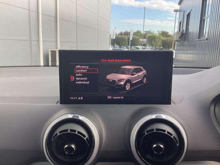 Audi connect navigation and infotainment includes innovative services, Audi connect remote and control connects your vehicle to your smartphone, Audi drive select, Audi smartphone interface, Audi virtual cockpit, Automatic start/stop system with recuperation, Bluetooth interface includes bluetooth audio streaming, Cruise control, MMI navigation plus with MMI touch, Power operated tailgate, Progressive steering, Rear parking sensors, 2 x SDXC card reader, 8 passive loudspeakers, DAB Digital radio, DVD Drive, Auto dimming rear view mirror, Black window trims, Body colour door mirrors, Brilliant black exterior mirror caps, Bumper in full body colour paint finish, Electrically adjustable, folding, auto dimming and heated door mirrors with integrated LED side indicators, Front windscreen with grey tinted sunband, Privacy glass - dark tinted rear and rear side windows from B-pillar backwards, Wheel arch trims in manhattan grey, 3 spoke flat bottomed multi-function leather sport steering wheel with gear shift paddles, 4-way electric lumbar support for front seats including seat height adjustment for both front seat, 60/40 split folding rear seat bench, Black cloth headlining, Front and rear head restraints, Front centre armrest, Front/rear floor mats, Height/reach adjust steering wheel, Illuminated door sill trims with S logo, ISOFIX child seat mounting for front passenger with airbag deactivation and outer rear seat including top tether attachment point for outer rear seats, Stainless steel pedals, Tool kit, Black styling pack - Q2, 3x3 point rear seatbelts, 6 airbags - Front, curtain and front side airbags, Electromechanical parking brake, Electronic stabilisation control including ABS, ASR and EDL, Hill hold assist, Pre-sense front with pedestrian recognition, Seatbelt monitoring, Tyre pressure warning light, Warning triangle and first aid kit, Anti theft alarm, Anti theft wheel bolts, Electronically operated child locks, Aluminium interior element, Matt brushed aluminium trim inlays,