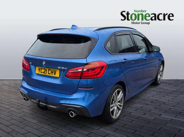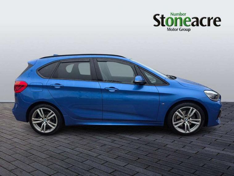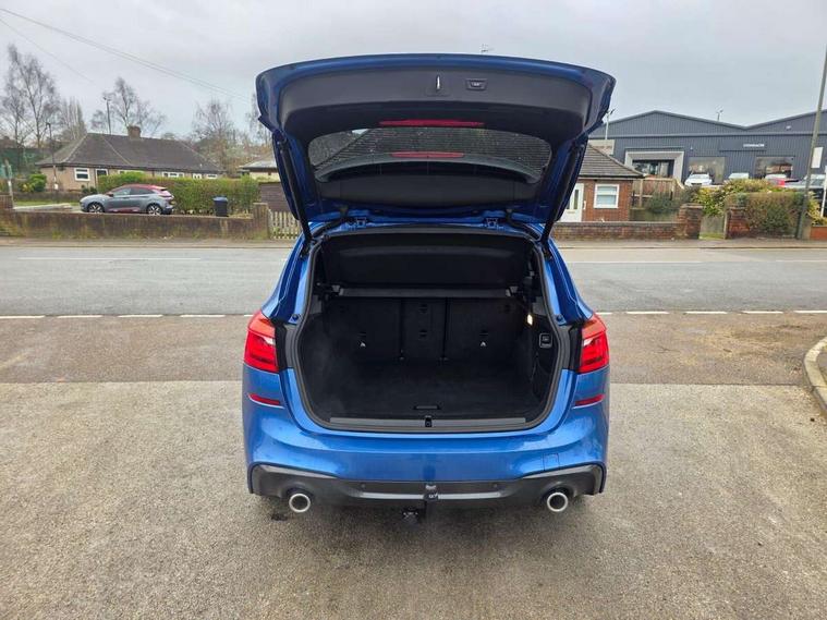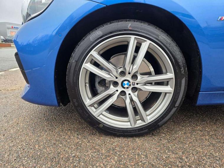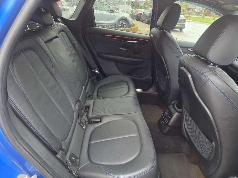 Active Guard incl speed limiting and lane departure functions with auto steering, and front collision warning with brake intervention, Apple car play, Attentiveness assist, Automatic tailgate operation, BMW Online services, BMW remote services, BMW Teleservices, Brake pad wear indicator in front and rear, Check Control warning system for monitoring of lights and door/luggage compartment open warning, Front/rear park distance control (PDC), Instrument cluster with speedometer with miles per hour read out, tachometer and fuel gauge, Lights on warning by audio warning signal when ignition is switched off, On board computer - average speed+fuel consumption, service interval, clock/date, odometer/trip meter, outside temperature display and ice warning, Optimum shift indicator, Park assist system with steering assist, Personal Profile - automatic lock when driving away selectable, Real time traffic information, Service interval indicator, Servotronic variable electric power steering (EPS), Speed limiter, Diesel particulate filter, Drive performance control with ECO PRO comfort + sport mode, Electronic differential lock, Incorrect fuelling protection, Intervention on the front axle when DSC deactivated, Sport automatic transmission, 2 USB sockets in rear, BMW professional radio/CD/MP3, DAB Digital radio, Body colour - front and rear bumpers, door handles, mirror caps, roof mouldings, Clear lenses direction indicator lights, Direction indicator side lights integrated exterior mirrors, Dynamic brake lights, Electric windows - front and rear, with open/close fingertip control, anti-trap facility and comfort closing, Electrically adjustable door mirrors with aspheric on driver side, convex on passenger side with integrated indicators, Green tinted heat protection glazing, Heated windscreen washer jets, High gloss shadow line, High level third brake light, Kidney grille with extra wide high gloss black vertical slats, LED front fog lights, Lightweight engineering, M aerodynamic body styling with dark shadow elements, M logo designation in side chrome, Model designation, Rain sensor including auto headlights activation, Rear fog lights, Rear window aerial, Rear window wiper integrated under roof spoiler, Reversing light in rear light cluster, Shark fin antenna, Twin chrome exhaust tailpipes, Visible VIN plate, Welcome lighting, 12V power socket in centre console + front with blanking plug, Ambiance lighting - switchable, Anthracite headlining, Automatic two zone climate control air conditioning, Central locking switches for door, fuel filler cap and luggage compartment, Child seat ISOFIX attachment for two outer rear seats and front passenger seat with anchorage points, Conditioned based service, Dakota leather upholstery with perforation and contrast stitching, Folding rear seats, Four grab handles integrated in roof lining, Front and rear side armrest integrated into door trim, Front armrest, Front door sill finishers with M designation, Front head restraints, Front sports seats with electric side bolster adjustment, Glovebox with light, Interior lighting, front centre over interior mirror and rear centre automatic interior light activation when door is opened, Luggage compartment access via BMW roundel, Luggage compartment lighting, M Sport multifunction leather steering wheel, Multi-function controls for steering wheel, Rear centre armrest, Steering wheel column manual adjustment, Sunvisors with vanity mirrors and ticket pocket, Three rear headrests, Two cupholders, Velour floor mats, Extended storage pack - 2 Series Active/Gran Tourer, Non-smoker package, 3 point seatbelts on all seats, front pyrotechnic belt tensioners, stopper and belt force limiters, rear coded belt buckles, Airbag - Front driver and passenger, front and rear head, front side, curtain head protection, manual deactivation of front passenger airbag possible, Anti lock braking system (ABS) with brake assist, Battery safety cut-off, BMW emergency call, Brake drying, Brake energy regeneration, Braking lock, Braking readiness, Child proof locking system in rear door, Crash Sensor - activates hazard/interior lighting + unlocks doors, Dynamic stability control + (DSC+), Dynamic Traction Control - DTC, Electrically operated hand brake, Front ventilated disc brakes, Hill start assist, Rear disc brakes, Seat belt security check for driver and front passenger, Side impact protection, Twin horns, Tyre pressure monitoring system, Warning triangle and first aid kit, Locking wheel bolts, Remote control with integrated key with silver highlight and M designation, Thatcham 1 alarm system with remote control and engine immobiliser, Contrast stitching on instrument panel, 18" Burnished M double spoke alloy wheels finished in ferric grey - style 486, Reduced rolling resistance tyres, Run flat tyres,