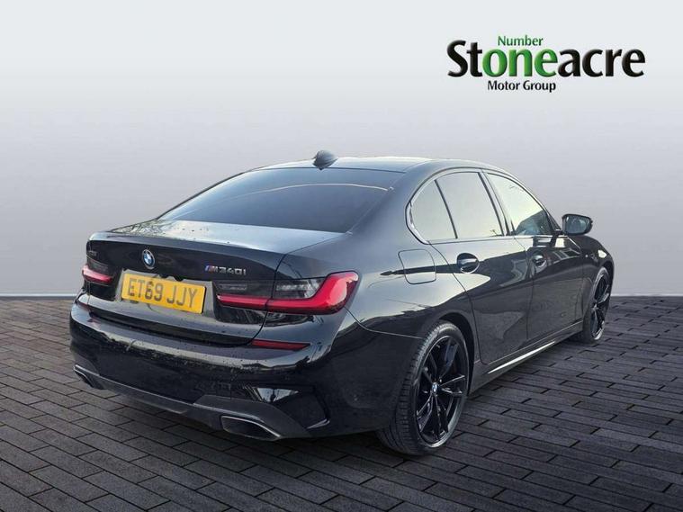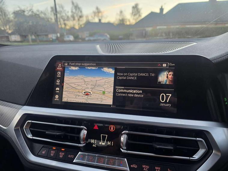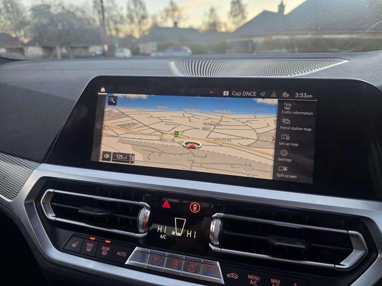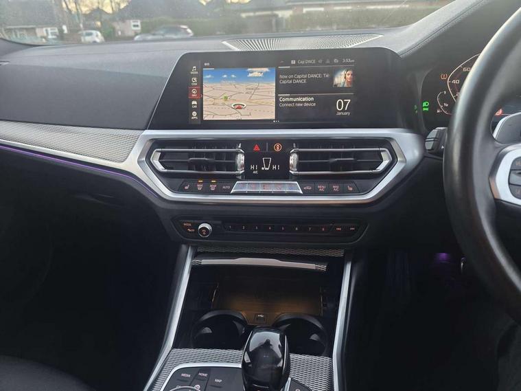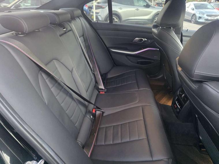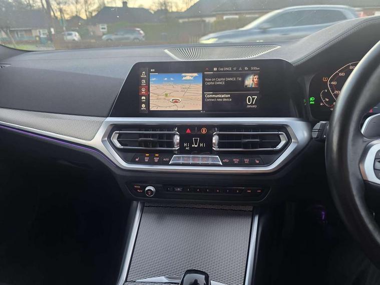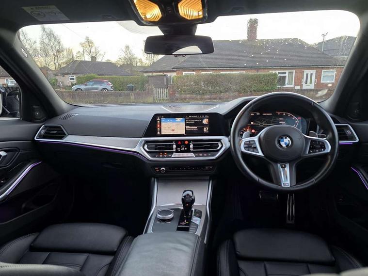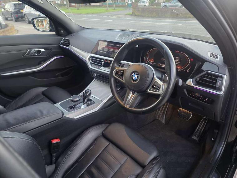Active guard plus, Attentiveness assist, Auto start-stop, BMW ConnectedDrive online services, BMW iDrive controller on centre console, BMW Live Cockpit Professional sat nav system including 10.25" high resolution display and Intelligent Voice Assistant, BMW service history, BMW Teleservices, Brake pad wear indicator in front and rear, Check Control warning system for monitoring of lights and door/luggage compartment open warning, Condition based service, Instrument cluster with speedometer with mph readout, tachometer, fuel gauge and oil temperature gauge, Integrated owners handbook, Oil sensor for level and grade, On board computer - average speed+fuel consumption, service interval, clock/date, odometer/trip meter, outside temperature display and ice warning, Optimum shift indicator, Variable sport steering, Adaptive M suspension, Battery cut-out switch, Drive performance control with ECO PRO comfort + sport mode, Electronic differential lock, Larger capacity fuel tank, M Sport differential, Petrol Particulate Filter, Sport automatic transmission with steering-wheel mounted gearshift paddles and launch control, Stroke dependent dampers, DAB tuner, Electronic service booklet, 2 x square exhaust tailpipes, Acoustic glazing, Active airstream chrome frame kidney grille with 8 high gloss black vertical slats, Automatic headlight beam throw control with load dependent regulating reaction, dynamic compensation of braking dive and acceleration squat, Black roof mouldings, Body colour fuel filler flap, Dynamic brake lights, Extended LED headlights, Exterior mirrors - electrically folding with anti-dazzle, Front and rear bumper system with replaceable deformation elements, Front and rear electric windows with open and close fingertip control, anti trap facility and comfort closing, Front black door sill finishers with BMW designation, Green tinted heat protection glazing, Interior rear view electrochromatic mirror with automatic anti dazzle function, LED front fog lights, Left and right split exhaust tailpipes, Lightweight engineering, M aerodynamic body styling, M designation on left and right front side panels, M designation side badges, M rear spoiler, Matt black exterior B pillar, Model designation on right side of tailgate, Rain sensor with automatic headlight activation, Shark fin antenna, Two part LED tailights in L-shape with components in smoked glass, brake light, LED turn indicator and rear fog light, Visible VIN plate, Welcome lights in interior and door handle area, Windscreen wipers with integrated washing jets, 12V power socket in front storage compartment, 2 front cupholder in centre console with clamping elements and matt black inlay, 3 rear seats with non folding headrests with 3 point seat belts, 3 spoke M leather steering wheel, 4 pieces lashing eyelets in luggage compartment, Ambient lighting, Anthracite headlining, Armrest integrated in front and rear door trim + front centre console armrest, Centred top Luggage compartment lights, Four grab handles integrated in roof lining, Front and rear door exit lighting (left / right), Front and rear door pockets, Front and rear reading lights, Front and rear velour floor mats, Front head restraints, Front sport seats, Gear selection lever with M specific designation, Heated driver and front passenger seats, Height adjustable mechanically and infinitely variable steering column, Illuminated armrest storage compartment, Illuminated glove compartment with separate small compartment, Interior lighting - front centre over interior mirror with soft light, rear centre and front and rear footwell lighting, Make-up mirror lights, Rear centre armrest with 2 cupholders, Rear centre console with storage compartment and ventilation grille, Steering column length adjustment lever, Sunvisors with vanity mirrors and ticket pocket, Three zone automatic air conditioning, Through loading system with 40/20/40 split folding rear seat, Toolkit located in luggage compartment, Connected pack professional - 3 Series Saloon/Touring, M Aerodynamics pack - 3 Series Saloon/Touring, 2 tone horn, ABS, Automatic Stability Control (ASC), BMW emergency call, Brake assist function, Brake drying, Brake energy regeneration, Braking pre-tensioning, Child proof locking system in rear door, Child seat ISOFIX attachment rear outer seats, Cornering brake control (CBC), Crash sensor activating of airbags, Unlocking doors, hazard warning lights, interior light, safety battery terminal, Driver and front passenger side airbags, integrated in the door side seat backrest bolsters for all seat variants, Driver/Front Passenger airbags, Dynamic brake control, Dynamic Traction Control - DTC, Electromechanical parking brake with automatic drive away release and auto hold function, Front passenger manual airbag deactivation, Head airbags for all 4 outer seats, Hill start assist, M sport seatbelt, Seat belt security check for driver and front passenger, Side impact protection, Three 3 point seat belts on all seats including front belt stopper, pyrotechnic belt tensioners and belt force limiters, Tyre pressure monitoring with three level warning strategy, Ventilated front and rear disc brakes, Warning triangle and first aid kit, Alarm system (Thatcham 1) with remote control and electronic engine immobiliser, Central locking switch for all doors, fuel filler cap and luggage compartment, Remote control with integrated key one button open/close vehicle and windows, sole opening of the luggage compartment lid and panic mode, Selectable automatic lock when driving away, Start/stop button with Comfort Go keyless engine start and auto Start/stop deactivation button, Vehicle key with M specific designation, Sensatec instrument panel, Reduced rolling resistance tyres,