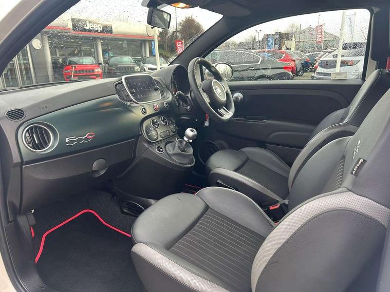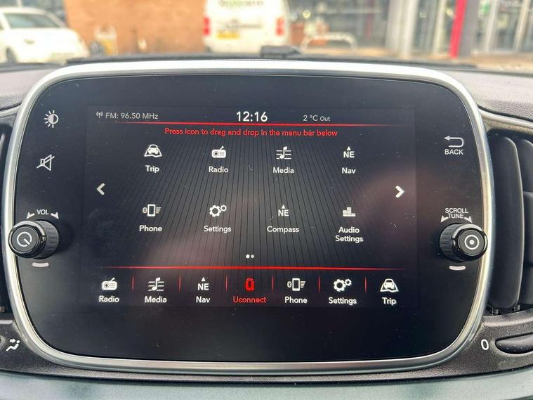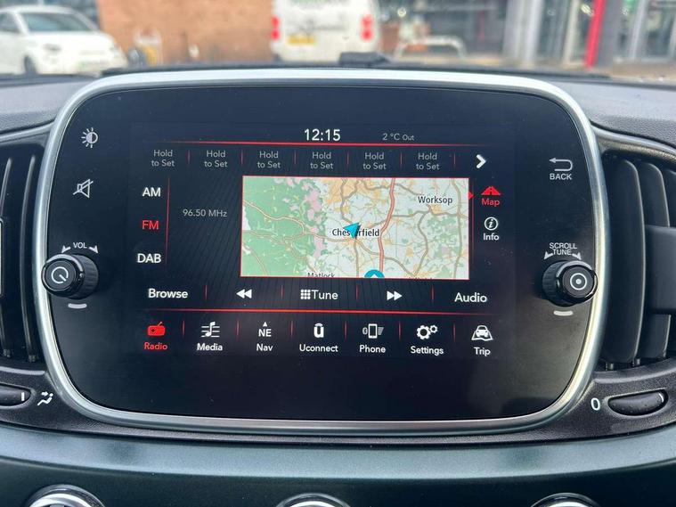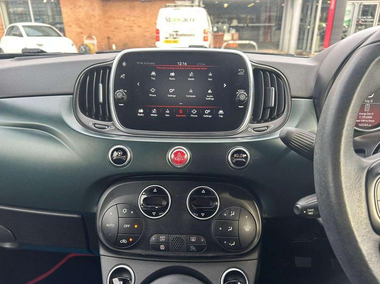 7" HD Touchscreen Radio with 3D Navigation, Bluetooth, USB, and DAB, 7" TFT instrument cluster, Apple car play/Android Auto, Cruise control, External temperature gauge, Power assist steering, Rear parking sensor, Speed limiter, Stop/start system, Trip computer, Rear speakers, Body colour sports bumpers, Chrome exhaust finish, Dark tinted rear windows, Electric front windows, Electrically adjustable satin graphite door mirrors with defrosting / external temperature sensor, Front fog lights, Heat insulated glass, Heated rear windows with wash wipe, LED daytime running lights, Satin Graphite exterior trim, 1 passenger grab handle, 50/50 split folding rear seats with height adjustable rear headrests, Auto climate control, Auxilliary 12V power socket, Chrome entry kick plates, Front headrests, Height adjustable drivers seat, Height adjustable steering wheel, Isofix child seat preparation, Sports seats, Techno leather steering wheel with audio controls, Sports Pack - 500 Rock Star, 7 airbags - Driver, passenger, side, window and drivers knee airbags, ABS/EBD, Curtain airbags, ESC + ASR/MSR + HBA + Hill holder, Traction control, Tyre pressure monitoring system, Automatic door locking, Immobiliser, Locking fuel filler cap, Remote central locking,