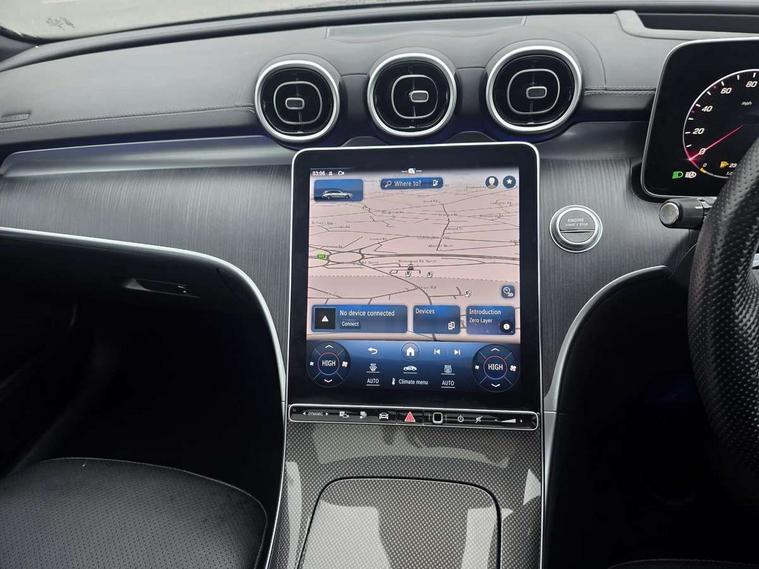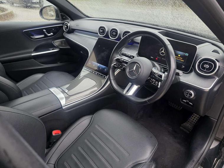 11.9" high resolution multimedia colour display, 12.3" digital instrument cluster display, Acoustic ambient protection, Active blind spot assist, Active brake assist plus, Active lane keeping assist, AMG DYNAMIC SELECT with a choice of driving modes (Slippery, Comfort, Sport, Sport+, Individual), Attention assist, Cruise control with speedtronic variable speed limiter, E-call, Easy pack automatic powered tailgate, Extended MBUX functions, Finger print sensor, Fluorescent jacket for driver, Head up Display, MBUX augmented reality for navigation, MBUX navigation premium, MBUX voice control activated by keywords "Hey Mercedes", Mercedes connect me, Mercedes me remote services, Outside temperature gauge, Pre-installation for digital key transfer, Remote boot release, Service indicator (ASSYST), Smartphone integration, Sports direct steer speed sensitive steering, Status display for rear seat belts in instrument cluster, Traffic sign assist, Wireless charging system for mobile devices, 11 kW AC onboard charger, 50l fuel tank with increased capacity, 5m charging cable for household socket (mode 2), 5m charging cable for wall box/public charging stations(mode 3), 66l fuel tank with increased capacity, 9G TRONIC 9 speed automatic transmission, Agility control sports suspension and lowered by 15 mm, Petrol Particulate Filter, Sporty engine sound system, Burmester 3D surround sound system, DAB Digital radio, MBUX multimedia system, Adaptive brake lights, Adaptive high beam assist plus, AMG body styling front apron, rear apron and side skirts, AMG front bumper with sporty air intakes and chrome elements, AMG rear bumper with high gloss chrome elements, AMG side skirts in vehicle colour, B-pillar trim in glossy black, Body coloured bumpers, Body coloured door mirrors, Chrome beltline trim, Chrome roof rails, Daytime running lights, Digital light LED headlights with projection function, Electric panoramic sliding sunroof, Electric windows with one touch opening/closing and obstruction sensors, Electrically adjustable and heated door mirrors, Green tinted glass, Heat insulating dark tinted glass, Illuminated front door sill panels, LED Indicators, LED tail lights, LED third brake light, Noise acoustic glass, Powerdomes on bonnet, Privacy glass, Radiator diamond grille with integrated Mercedes Benz star and louvre silver with chrome pins, Radio aerial integrated into rear window, Rain sensor with automatic windscreen wiper activation, Rear side wing doors, Rear wiper, Two visible exhaust pipes integrated into rear bumper, 3 seat bench in 2nd row, 3 spoke flattened bottom AMG multifunction steering wheel in black nappa leather with chrome inserts and perforated leather in grip area, 40:20:40 split folding rear bench seat, AMG sports seats, Artico man-made leather upholstery, Audio and onboard settings control on multifunction steering wheel, Auto Mercedes-Benz child seat recognition sensor, Black air vents with silver chrome elements, Black floor mats with AMG lettering, Black roof liner, Door trim elements high gloss black with silver chrome surroundings and switches, Double cupholder in centre console, Electrically height/reach adjustable steering column, Folding rear seat backrest, Front and rear head restraints, Front centre armrest with storage compartment, Gearshift paddles on steering wheel, Heated front seats, Illuminated door sills with Mercedes Benz lettering, Illuminated glove compartment stowage, Interior lighting - 64 colour Ambient lighting, Load compartment cover, Overhead control unit in high gloss black, Rear top tether child seat ISOFIX attachment, Single front passenger seat, Sports pedals with stainless steel surfaces and rubber studs, Sunvisors with illuminated vanity mirrors, THERMATIC 2 zone automatic climate control, Interior lighting package - C Class, Memory package - C Class, Mirror pack - C Class, Parking package with 360 degree camera - C Class, Seat comfort pack - C Class, Stowage space pack - C Class, USB package - C Class, USB package plus - C Class, 3 rear 3 point seatbelts, Active bonnet pedestrian safety measure which detects an impact and raises bonnet, Adaptive brake system with HOLD function and brake drying in the wet, Anti-lock braking system (ABS), Black seat belts, Brake calipers with Mercedes-Benz lettering + perforated front brake discs, Child proof door locks, Drivers knee airbag, Drivers pelvis airbag, Dual stage driver/passenger airbags, Electric parking brake, Electronic Stability Programme (ESP), Front centre airbag between driver and front passenger seats, Front side airbags, Larger brake discs on front axle, Rear seatbelt warning indicator, Sports braking system, Tyre pressure monitoring system, Warning triangle and first aid kit, Window airbags for driver, front passenger and rear passenger, Central locking with interior switch, automatic locking and crash sensor with emergency opening function, Chrome surround in electric key, Dashcam, Keyless Go, URBAN GUARD vehicle protection (Thatcham Category 1) consisting of break-in, anti-theft alarm system (ATA), interior monitoring and tow-away protection, Artico man-made leather dashboard with contrast stitching, Centre console trim in anthracite line structure lime wood, 19" AMG 5 twin spoke light alloy wheels aerodynamically optimised painted in black with high sheen finish, Noise reduced tyre with foam absorber, Summer tyres, TIREFIT with tyre inflation compressor,