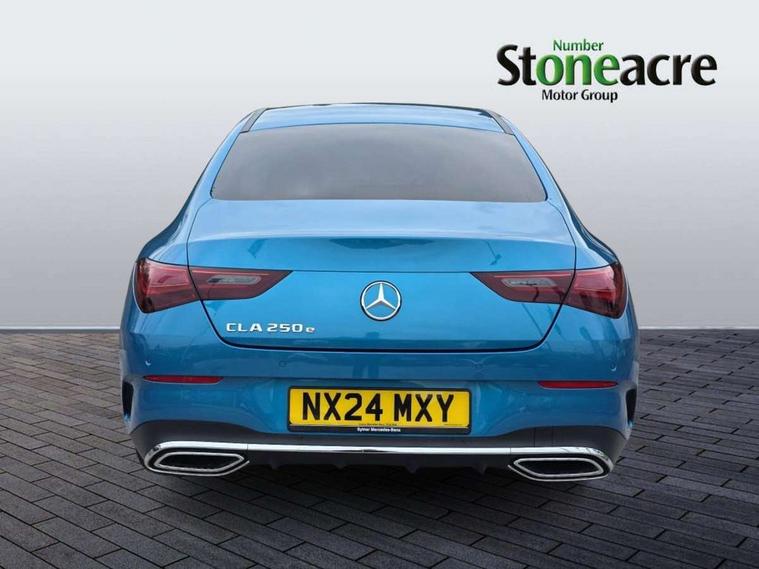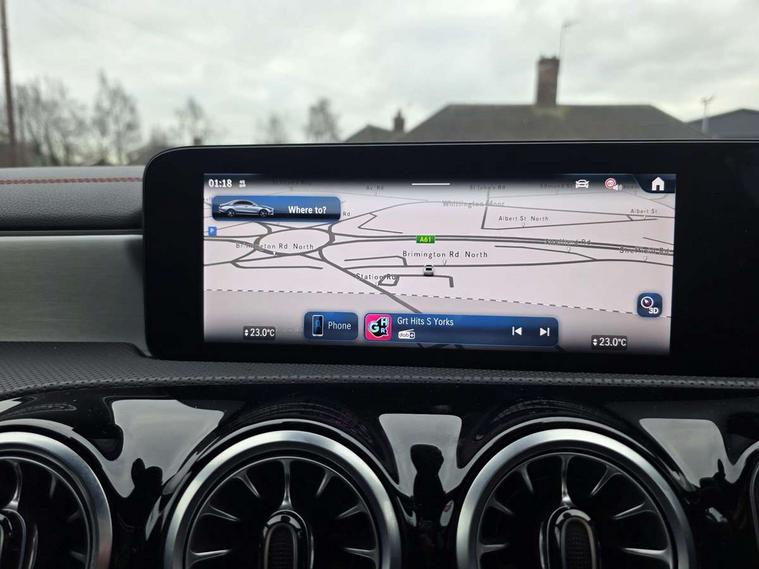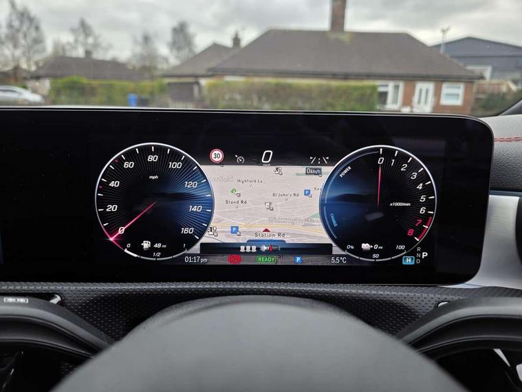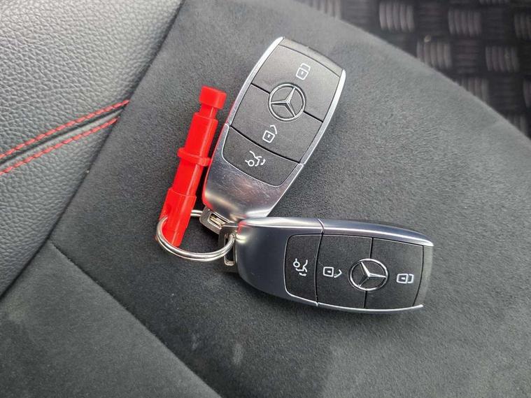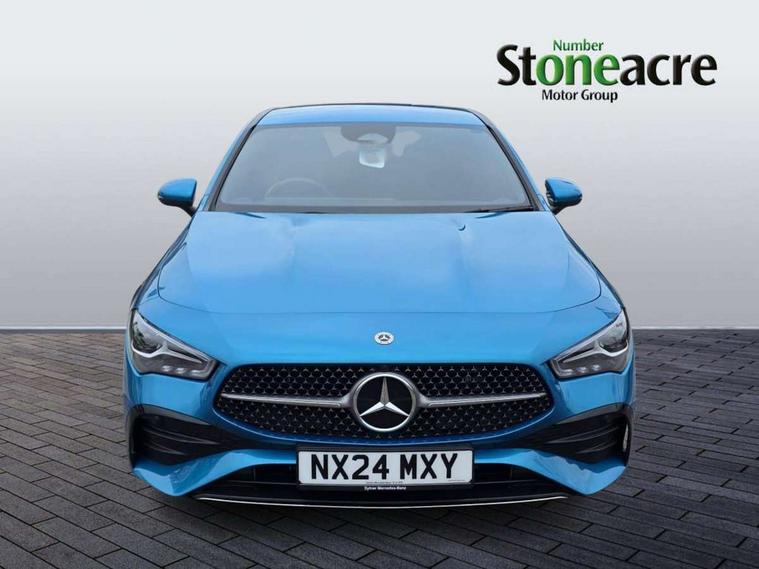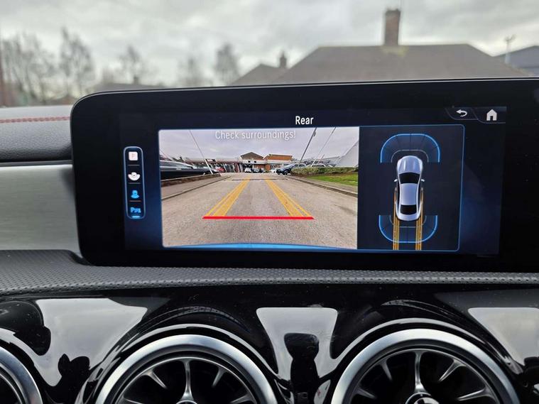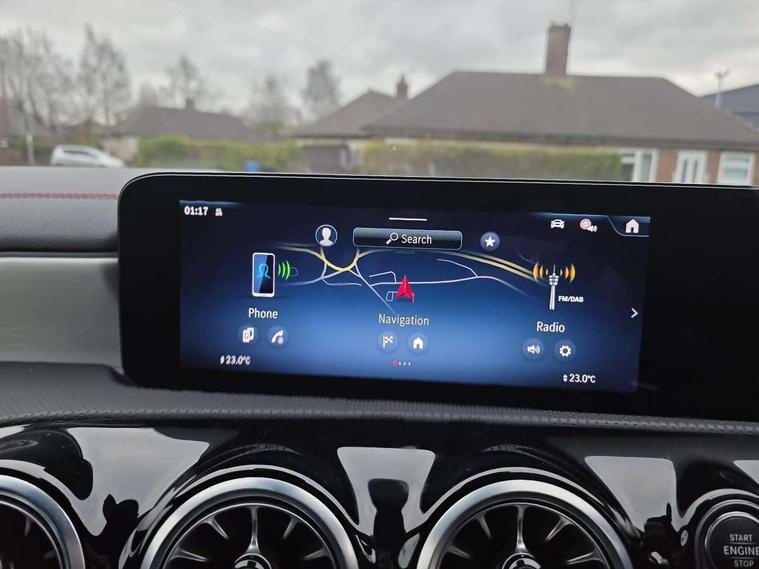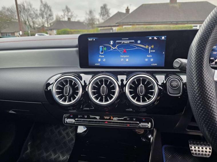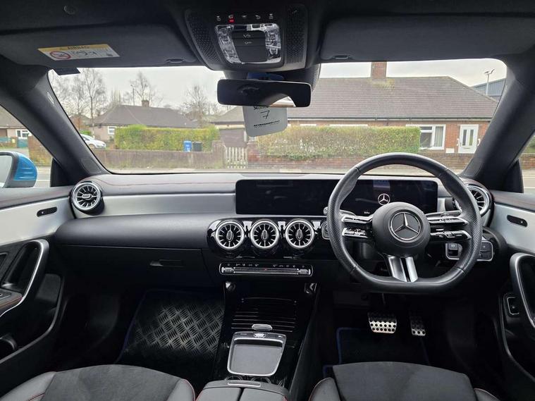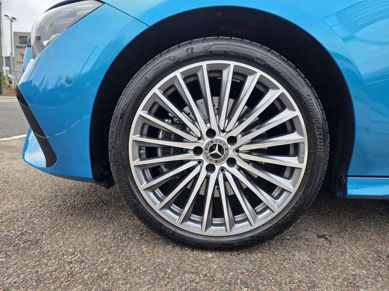 10.25 inch Instrument display with digital cockpit, 10.25 inch touchscreen central media display, Acoustic ambient protection, Active lane keeping assist, Attention assist - Monitors steering behaviour and long journey fatigue, Blind spot assist, Bluetooth connection, Car wash mode, Cruise control with limiter, Direct steer system, DYNAMIC SELECT with a choice of driving modes (ECO, Comfort, Sport and Individual), ECO start/stop function, Fluid level warning indicator for fuel, oil, coolant and washer fluid, Hard-disk navigation, Hey Mercedes Voice activation, Lamp failure indicator, MBUX augmented reality for navigation, Mercedes me connect including emergency call system, accident recovery, breakdown management and maintenance, Mercedes me remote and charging services plus, Outside temperature gauge, Owners manual in English, Pre-installation of private car share, Radio aerial integrated into front and rear windshields, Service indicator (ASSYST), Smartphone integration with Apple CarPlay and Android auto, Speed limit assist, Trip computer in multifunction display with current consumption indicator, Wireless charging in the front centre console, Charging system - AC charging system rated at 11kW, Charging system - DC charging system rated at 22kW, Comfort suspension, Mode 3 charging cable for wallbox and public charging stations with 5m upto 11kW, Rear axle torsion beam, DAB digital radio tuner, MBUX multimedia system, Mercedes Benz advanced sound system (225 W) with 10 speakers, 1 central speaker, speakers on doors, a tweeter on door, one sub woofer + boost amplifier, Pre installation for Mercedes Benz Link, Adaptive brake lights, AMG body styling with AMG front apron and rear apron and visible exhaust tailpipe in chrome trim elements, Body colour door handles, Chrome beltline strips, Electric windows, Electrically adjustable and heated door mirrors with integrated LED indicators, Exhaust system with 2 Visible tailpipe trim elements and rear apron with trim in chrome, Hand free access, Headlamp assist automatic headlamp activation, Heated glass rear windscreen + timer control, High level LED third brake light, Interior mirror with black reading lamps and frameless, LED high performance headlamps with integrated LED daytime running lights and adaptive highbeam assist, LED tail lamp, Privacy glass with dark tinting on rear side windows and rear window, Radiator grille with Mercedes-Benz pattern in chrome with central Mercedes star and single louvre with chrome inserts, Rain sensing windscreen wipers with two sensitivity settings, Rear boot, Rear fog lamp, Rear side wing doors, Variable front intermittent wipers, Window line trim strip in high gloss aluminium, 3 seat bench in 2nd row, 3 twin spoke flattened multifunction steering wheel in nappa leather - horizontal twin spoke in high gloss black, vertical twin spoke in silver chrome, 4 way lumbar support, 40:20:40 split folding rear seats with backrest, Air conditioning - Two zone thermotronic luxury automatic climate control with display, Air vents with surround in silver chrome, Artico man-made leather/Microcut microfibre upholstery, Automatic child seat recognition sensor, Black roof lining, Brushed stainless steel sports pedals with rubber studs, Charging socket, Floor mats with stitched AMG lettering, Fluorescent jacket, Front centre armrest with stowage, Galvanished gear shift paddles in silver chrome, Heated front seats, Illuminated front door sills with Mercedes Benz lettering and changeable cover, Interior lighting - 64 colour Ambient lighting, Luggage net on driver/front passenger seat backrest, Manually height and reach adjustable steering column, Pre-entry climate control, Rear armrest with two integral cup holders for drinks, Rear head restraints, Single front passenger seat, Sport seats with fixed head restraints, Stowage compartment in centre console with retractable cover, Sunvisors with illuminated vanity mirrors, Twin front cupholders, Two outer rear seat isofix and top tether child seat fixing points, Keyless go comfort pack - CLA, Light and sight pack - CLA, Mirror pack - CLA, Parking pack with reversing camera - CLA, Seat comfort pack - CLA, USB package plus - CLA, Active bonnet pedestrain safety measure which detects an impact and raises bonnet by 65mm, Active brake assist includes forward collision warning system with autonomous braking, Adaptive brake assist with hold function and hill start assist, Anti lock braking system (ABS) with brake assist, Black seat belts, Bonnet with power domes, Brake calipers with Mercedes-Benz lettering, Brake pad wear warning indicator, Childproof locks manually operated for rear doors and electrically operated for rear power windows, Crash responsive emergency lighting, Driver and front passenger head and sidebags, Driver and front passenger windowbags, Drivers knee airbag, Dual stage driver and front passenger airbags, Electric parking brake, Electronic stability programme with acceleration skid control, ESP curve dynamic assist, Exit warning, Front and rear seatbelt reminder, Front passenger seat occupancy sensor, Perforated front brake discs, Radar-based recuperation, Sports braking system, Three point rear seat belts, Tyre pressure monitoring system, Warning triangle and first aid kit, Alarm system with immobiliser and interior protection -Thatcham category 1, Guard 360 deg vehicle protection - tow away protection with visual, acoustic warning, interior monitoring, preinstallation for parking damage, Remote central locking and crash sensor with emergency opening function, Light aluminium with longitudinal grain interior trim, 19" AMG multi spoke light alloy wheels painted in titanium grey with high sheen finish, Summer tyres, Tirefit tyre sealant kit,
