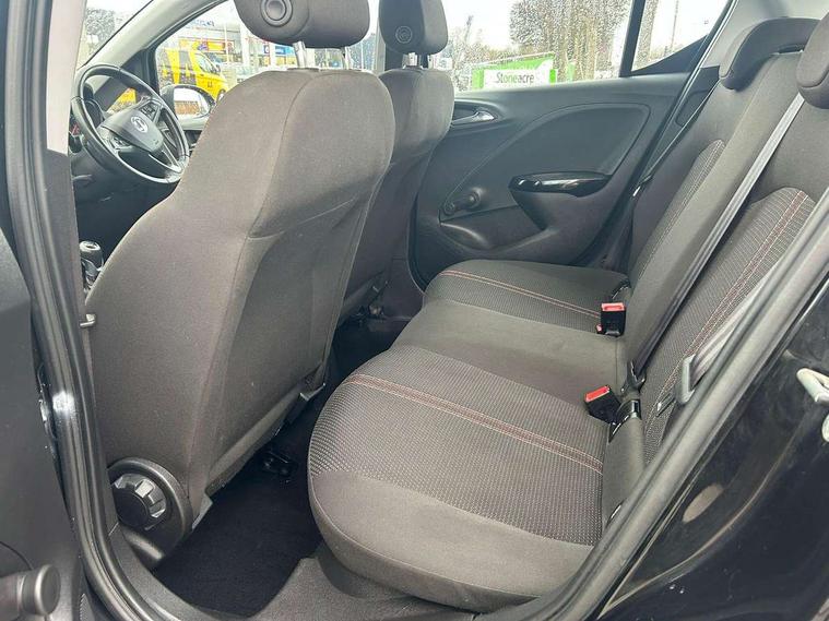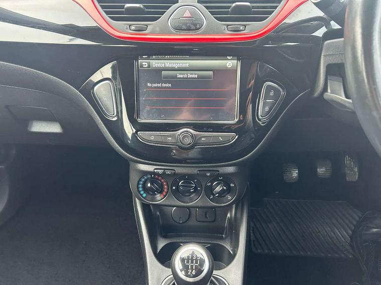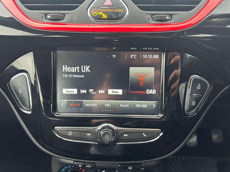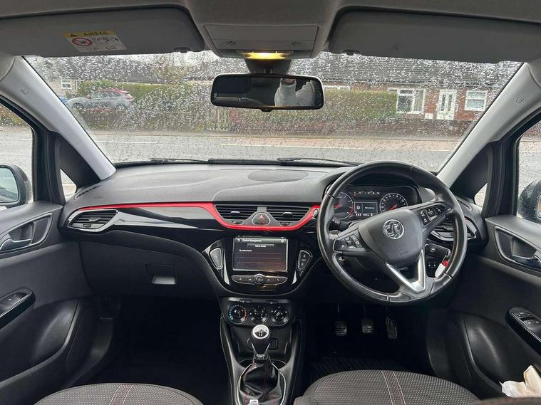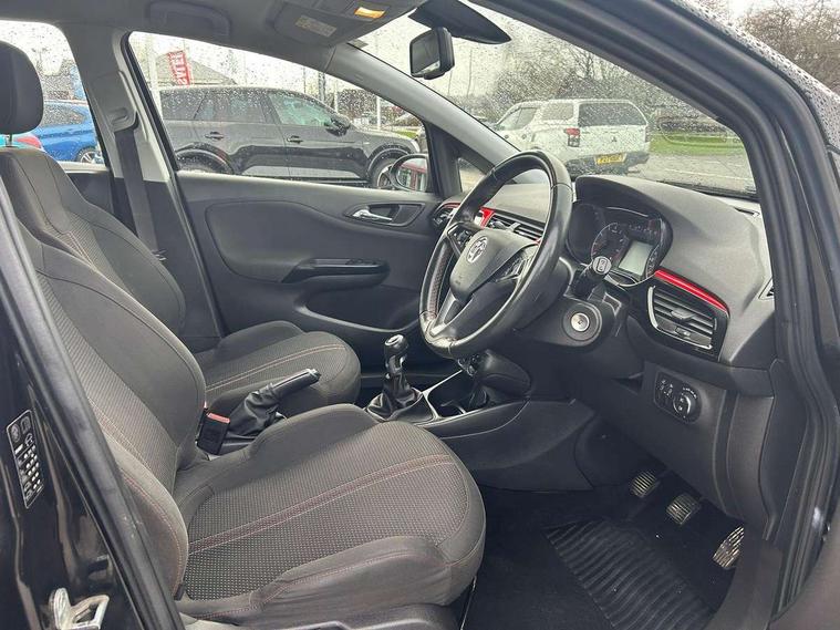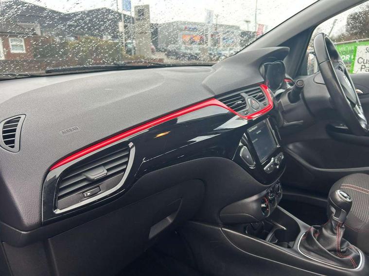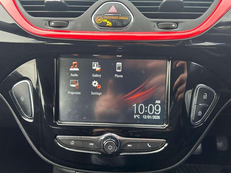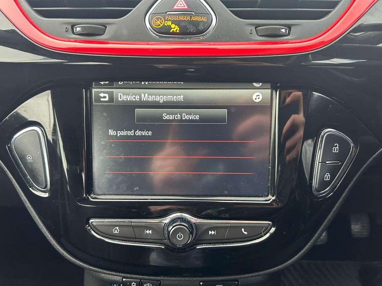 Apple car play/Android Auto, Bluetooth system, City assist mode for power steering, Cruise control + speed limiter, Exterior temperature gauge, Lights on warning, Low fuel level warning light, Multi function display, Multi function trip computer, Rev counter, Service indicator, Speed sensitive power steering, Speed warning indicator, Sports suspension, 6 speakers, Body colour bumpers, Body colour door handles, Body coloured door mirrors, Chrome effect tailpipe extension, Chrome front grille, Coming home function, Electric adjustable door mirrors, Electric front windows/one touch facility, Fog lights with chrome surround, Front lip spoiler, Headlamp levelling, Heated door mirrors, Heated rear window, Heated windscreen, Laminated windscreen, LED daytime running lights, Rear skirts, Rear wiper, Side sills, Two speed windscreen wipers, 12V power outlet, 2 height adjustable rear headrests, Air recirculation system, Centre console with cupholders, Chrome gear knob, Chrome interior door handles, Delay courtesy light function, Driver/passenger reading lights, Driver/passenger sunvisors and vanity mirrors, Electric reach + rake adjustable steering column, Front door pockets, Front seat belt pre-tensioners with load limiters, Glovebox, Grab handles, Height adjustable driver's seat, Height adjustable front headrests, Illuminated luggage compartment, ISOFIX on outer rear seats, Lace cloth trim, Load restraining lashing points, Luggage compartment cover, Multi function steering wheel, Pollen filter, Rear door pockets, Rear reading lights, Reclining front seats, Sports front seats, Sight and light Pack - Corsa, ABS + EBD + EBA, Brake assist function, Child proof door locks, Driver/passenger 2 stage auto adaptive airbags, ESP + traction control, Front and rear curtain airbags, Front and rear seatbelt reminder, Front seat side impact airbags, Height adjustable front seatbelts, Hill start assist, Manual passenger airbag deactivation function, Side impact protection beams, Three 3 point rear seatbelts, Tyre pressure monitoring system, Deadlocks, Immobiliser, Key left in ignition audible warning, Locking wheel bolts, Radio frequency remote central locking, Piano black facia with red inserts, Tyre inflation kit,