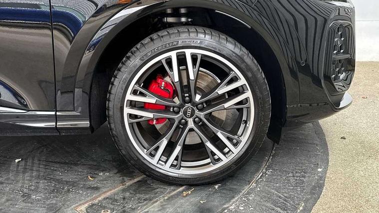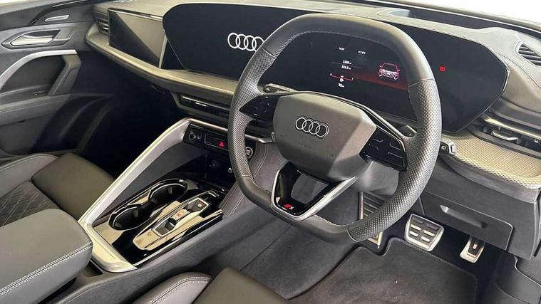 Adaptive cruise control, Advanced driver attention alert, Audi application store, Audi connect emergency call and service, Audi drive select, Audi smartphone interface, Audi virtual cockpit plus with 11.9" OLED colour display, Camera based traffic sign recognition, Fatigue monitor, Front cross traffic intersection assist, Lane change assistant with exit warning system, rear cross traffic alert and rear turn assist, Lane departure warning with emergency assist, MMI 10.9" front passenger touch display, MMI navigation plus with high resolution 14.5" OLED touchscreen colour display, Park assist plus, Parking system plus with 360 display, PAS, Reversing camera, Swerve assist and turn assist, Top view camera, Traffic sign based speed limiter, 2 USB-C ports in both the front and rear, Audi sound system impressive sound with 10 loudspeakers including centre speaker and subwoofer, 6-channel amplifier with a total output of 180 watts, DAB Digital radio, Smartphone compartment with wireless charging, Active digital light signatures - Six additional combinations of active daytime running light signature, Auto dimming rear view mirror, Black roof rails, Coming/leaving home lighting function, Electrically adjustable heated and folding + automatically dimming exterior mirrors, Exhaust tailpipes in dark chrome, Front and rear electric windows, Front door sill trims with aluminium inlays, illuminated with 'S' logo, Full body paint finish, Grill frame, inlay and front air inlets in matt anthracite chrome, Headlight cleaning system, Heated rear window, High beam assist, High gloss window surrounds, LED rear lights pro incl. dynamic rear indicators and illuminated light strip with animated coming and leaving home function, Logo projection light in exterior mirrors, Matrix LED headlights, Memory function for door mirrors, Privacy glass, Projection third brake light for rear window in LED, Radiator grille in phantom black, Rear and side windows with heat insulating glass, Rear honeycombe grille in matt black with inlay in matt anthracite chrome, Rear side wing doors, Rear wash/wipe, S Line badge on the front wings, Towbar preparation, Windscreen with acoustic glazing, 3 rear head restraints, 3 seat bench in 2nd row, 3 spoke leather steering wheel with multi-function buttons with touch control, flattened on top and bottom, with S badging and contrast stitching, 4 way electric lumbar support for driver and front passenger, 40:20:40 split folding rear seat bench with centre armrest and cup holders, Comfort centre armrest front, Deluxe 3 zone electronic climate control, Dinamica microfiber/leather upholstery, Electrically adjustable front seats with memory function for driver's side, Front and rear floor mats, Front sport seats with integrated head restraints, Headlining in black cloth, Heated front seats, i-Size child seat mounting on the front passenger side and outer rear seats, i-Size and top tether on the outer rear seats, Interior trim in aluminium look, Luggage compartment lid, electrically opening and closing, Manual steering column adjustment, Single front passenger seat, Softwrap in Dinamica, Stainless steel pedals and footrest, Steering wheel grips in perforated leather and shift paddles, Ambient lighting package plus - Q5, Black styling package plus - Q5, Storage and luggage compartment pack - Q5, 3x3 point rear seatbelts, ABS, Acoustic vehicle alerting system, Convenience key with safelock, Driver and front passenger airbag with passenger airbag deactivation, Electric child safety locks, First aid kit with warning triangle and high visibility vests, Front emergency brake assist, Front side airbags with head airbag system and front interaction airbag, Hill hold assist, Occupant detection in rear seat area, Proactive passenger protection system for front, sides and rear, Red brake calipers, Side airbags in front and rear with head airbag system and front interaction airbag, Tyre pressure loss indicator, Anti theft alarm, Anti-theft wheel bolts, Remote control key with SAFELOCK and keyless go, Accent surfaces and control buttons in gloss black, Black dashboard with contrast stitching, Steel grey seat stitching, Upper and lower interior elements in dinamica microfiber, Tyre repair kit,
