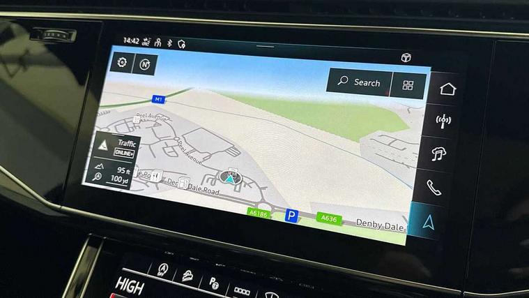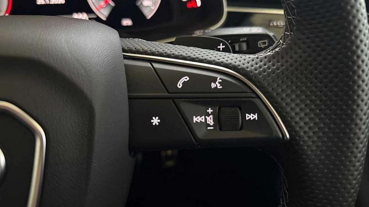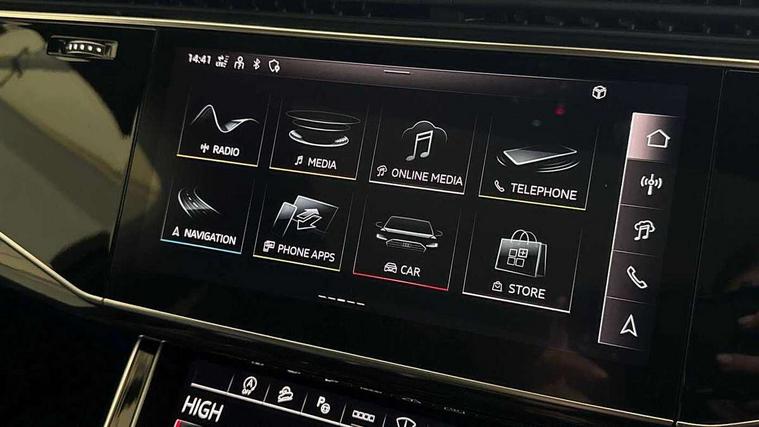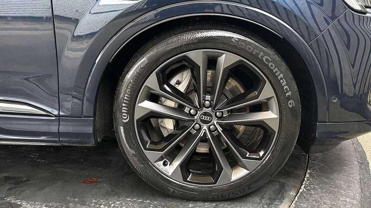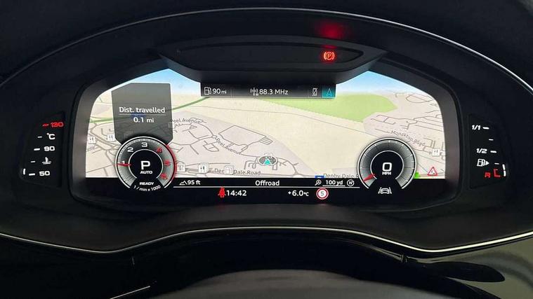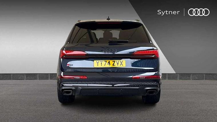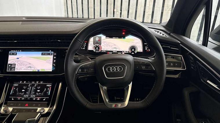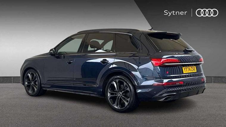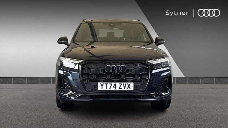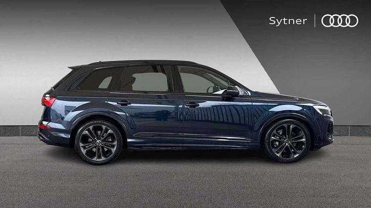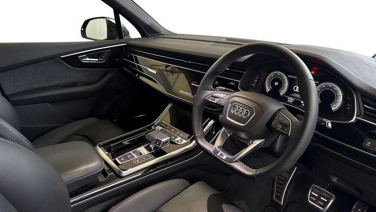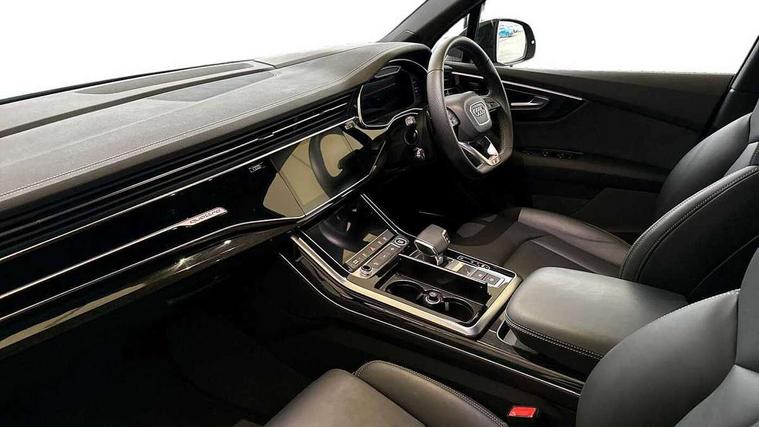 Audi connect safety and service (e-call), Audi connect with Amazon Alexa Integration, Audi drive select (Auto, Comfort, Dynamic, Efficiency, Individual, Off-road and All road), Audi phone box light with wireless charging, Audi virtual cockpit - 12.3" high-resolution LCD display with fully customisable instrument cluster, Bluetooth interface, Camera based traffic sign recognition, Electromechanical power steering, MMI navigation plus with MMI touch screens includes 10.1" and 8.6" screens with haptic feedback, Natural voice recognition, Operating buttons in Matte black, Parking system plus with 360 degree display (front, rear and side sensors) - acoustic and visual park assist system, Power operated tailgate, Rear view camera, Smartphone interface includes wireless Apple carplay/Android Auto, Start/stop system, 48V Mild hybrid technology, Adaptive air sports suspension, Quattro all wheel drive with self locking centre differential, Audi music interface - front 2 USB-C ports with charger and data functions, Audi sound system with 6 channel amplifier, 180 watt amplifying capacity and 10 loudspeakers including subwoofer, DAB digital radio module, Audi Beam uses LEDs to project S emblem with red rhombus onto the ground when opening the side doors (front/rear), Auto dimming frameless rear view mirror, Black exhausts, Black roof rails, Electrically adj heated/folding + automatically dimming exterior mirrors with memory + automatic kerb side function for passenger side exterior mirror, Heat insulating glass in windshield, Integrated LED indications in door mirrors, LED 3rd brake light, LED daytime running lights, LED rear tail lights, Loading edge protection in stainless steel, Matrix LED headlights with dynamic front and rear indicators, Privacy glass - dark tinted rear and rear side windows from B-pillar backwards, Rear side wing doors, Rear wiper, 2 seat bench in 3rd row, 2 zone automatic climate control, 3 seat bench in 2nd row, 7 seat layout with ISOFIX points for the front passenger seat and rear passenger seat, Black cloth headlining, Comfort front centre armrest, Electric adjustable front seat with 4 way lumbar support, driver memory functionality, Folding rear seats, Front head restraints, Front/rear floor mats, Heated front seats, Illuminated door sill trims with S logo, ISOFIX child seat mounting for front passenger seat and 2 outer rear seats with top tether child seat mounting for all 3 rear seats, LED interior ambient lighting, Luggage compartment cover, Luggage compartment sill protection in stainless steel, Rear head restraints, Single front passenger seat, Stainless steel pedals, Sunvisors with illuminated vanity mirrors, Black styling pack plus - Q7, 3 point seatbelts on all rear seats, Audi pre sense front, Child locks on rear doors, Convenience key with safelock and gesture tailgate, Driver and front passenger, front side and curtain airbags, Electromechanical parking brake, Electronic Stabilisation Control (ESC) including ABS, ASR and EDL, Extended pedestrian protection measures, Hill hold assist, Seatbelt reminder, Tyre pressure loss indicator, Warning triangle and first aid kit, Anti theft alarm with tow away protection, Anti-theft wheel bolts and wheel loosening detection, Keyless Go, Remote central locking, Polished oak trim with grey finish inlay, Tool kit, Tyre repair kit,