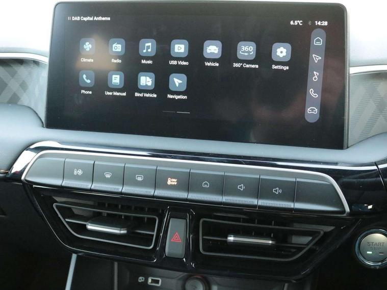 10.25" Colour touchscreen, 3 driving modes Normal, Eco, Sport, 3 Energy regeneration modes (1, 2, 3), 360 degree camera with rear sensor, 7" Driver display, Adaptive cruise control, Android Auto, Apple car play, Blind zone detection with lane change assist, Bluetooth connection, Driver attention alert system, E-call, Forward collision warning, Intelligent speed limit assist, Lane keep assist system (LAS) with Lane departure warning system (LDWS), PAS, Rear cross traffic alert, Reverse parking sensors, Satellite navigation with speed limit recognition, Traffic jam assist, Trip computer, 6 speaker audio system, DAB audio, iSmart phone connectivity, Radio, MP3 and AUX/USB, USB ports (2x front, 1x rear), Auto dimming rear view mirror, Automatic headlamps, Body colour bumpers, Body coloured door handles, Body coloured electrically adjustable heated door mirrors, Follow me home headlights, Front and rear electric windows with driver's one-touch up/down, Intelligent headlamp control, LED centre brake light, LED daytime running lights, LED projector headlights, Rain sensor wiper, Rear privacy glass, Rear side wing doors, Rear window defogger, Rear wiper, 12V socket, 3 seat bench in 2nd row, Automatic air conditioning, Boot space lamp, Driver 6-way adjustable seat, Front centre armrest with storage, Front cup holders, Front headrests, Front interior courtesy light with time delay and reading lights, Front passenger seat map pocket, Front sun visors with driver and passenger mirrors, Heated front seats, Heated steering wheel, Leather style multifunction steering wheel, Leather style with cloth inserts upholstery, One piece folding rear seat, Passenger 4-way adjustable seat, Reach and rake 4 way adjust steering column, Single front passenger seat, 2 x adjustable rear head rests, 3x3 point rear seatbelts, ABS/EBD, Active emergency braking with pedestrian/Bicycle detection, Drivers seatbelt reminder, Dual front airbags, EBA, Electric parking brake with autohold, ESP, Front and rear passenger seat belt reminder, Front passenger airbag deactivation switch, Front seatbelts (3-point + pretensioner + load limiter), Front side airbags, Hill start assist, Rear child locks, Rear isofix x2, Side curtain airbags, Tyre pressure monitoring system, Alarm & Engine Immobiliser, Keyless entry, Remote Central Locking with Fold-away Key, 16" Atlas alloy wheel, Tyre repair kit,