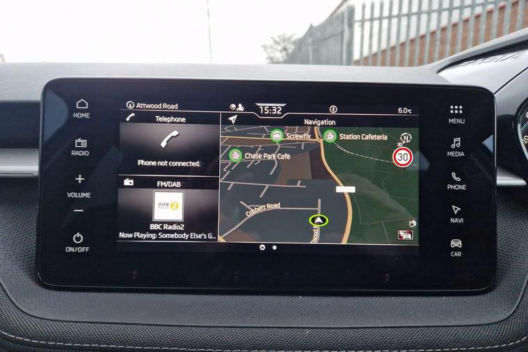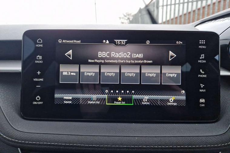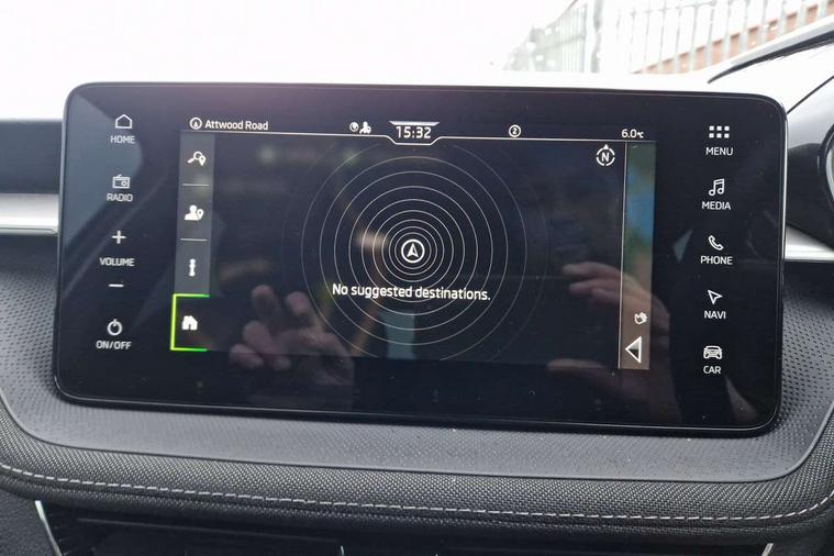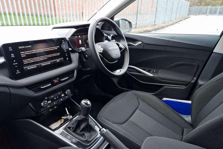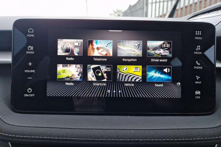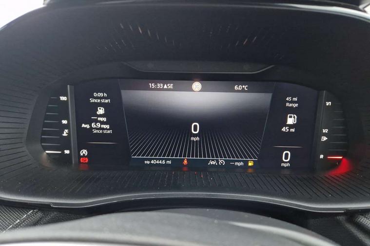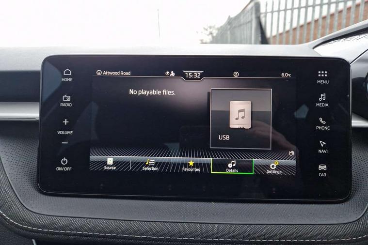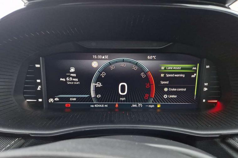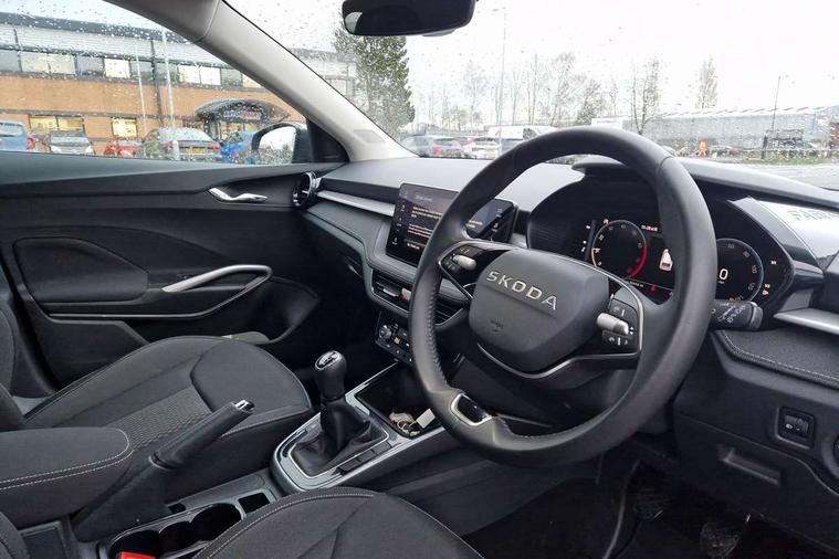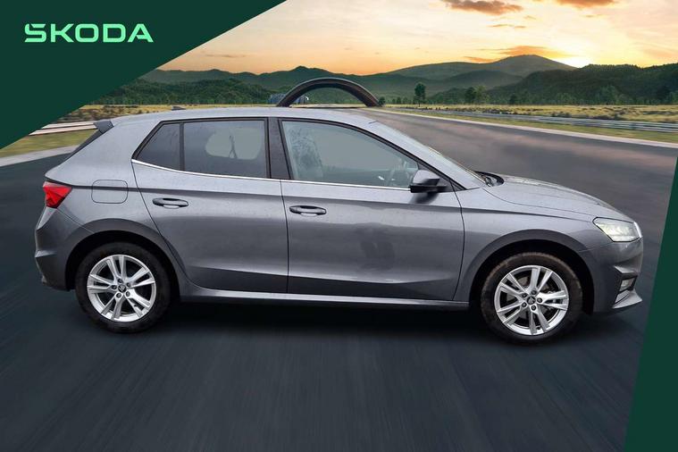 Advanced driver attention and drowsiness monitor, Bluetooth connection, Electromechanical power steering, Exterior temperature gauge, Service interval indicator, Traffic sign recognition, Virtual cockpit with 10.25" colour display, Wireless SmartLink for Apple CarPlay and Android Auto, 6 Speakers (4 in front and 2 in rear), 9.2" colour display skoda navigation system with voice control and web radio, Auxiliary socket for external MP3 player, DAB digital radio reception, Auto dimming rear view mirror, Body colour door mirrors, Body coloured bumpers, Chrome window surround, Door mirror integrated indicators, Front and rear electric windows, Front window wiper intermittent control, Headlight range control - Automatic, Ice scraper in fuel cap, LED 3rd brake light, LED daytime running lights with coming and leaving home feature, LED rear lights, Privacy glass, Rear LED fog light, Rear side wing doors, Rear window wiper with washing nozzles, Roof mounted spoiler, SKODA tailgate lettering in chrome, Unique dark chrome design logo on alloy wheels, 2 LED reading lights in front and rear, 3 rear headrests, Backrest split and folding, Central console with removable cup holder and storage box, Chrome handbrake release button, Comfort seats, Door sills with fabia badging, Dual zone air conditioning with climatronic electronic control, Fabric upholstery, Front centre armrest, Gearshift knob/handle in leather, Hand brake lever handle in leather, Height adjustable front headrests, Height adjustable front seats, Height adjustable steering wheel, ISOFIX and TopTether anchorage points to the outer rear seats, ISOFIX and TopTether on the front passenger seat, Luggage compartment lighting, Manually adjustable lumbar support in front seats, Metallic grey interior door handles, Pollen filter, Rear seat bench unsplit, Single front passenger seat, Skoda lettering on steering wheel, Storm grey headlining, Sun visors with mirror and airbag label on passenger side, Textile floor mats, Ticket holder, Umbrella in drivers door, 3-point height adjustable front seats belts with pretensioner and force limiter, Automatic warning lights in case of crash, Driver and passengers airbag with switch off function, e-Call+, ESC including ABS, MSR, ASR, EDS, HBA and XDS, Front and rear seat belt warning, FRONT ASSIST (AEB City and AEB Inter Urban), Front side airbags, Head airbags, One tone horn, Pedestrian protection, Three rear 3-points safety seat belts with pretensioner and force limiter including stop function for outer rear seat belts, Tyre pressure monitoring system, Anti-theft alarm system including immobiliser, interior monitoring, backup horn, and towing protection, Central locking with radio remote control, interior controls, SAFE function and 2 foldable keys, Black painted air vents, Metallic grey central console cover, Metallic grey upper decorative trim, Satin black door and side trim panel in front, Textile microsuede grey lower decorative trim with art grey stitching, Anti-theft wheel bolts protection, Super-low rolling resistance tyres,