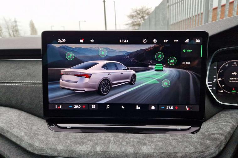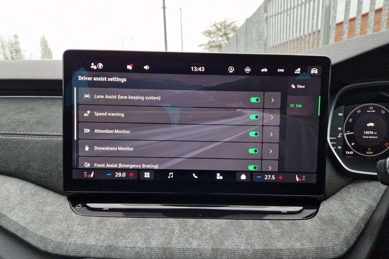 1x USB Typc C port in rear view mirror, 4x USB Type C ports - 2x in front centre console and 2x in rear (45W), Drive mode selection, Driver fatigue sensor, eCall emergency system, Electro-mechanical power steering, Front and rear parking sensors with manoeuvre assist, Front assist system, Traffic jam assist, Traffic sign recognition, Turn Assist, Virtual Cockpit - 10.25" digital display, Voice control system, Wireless charging (15W) with cooling function, Wireless SmartLink for Apple CarPlay and Android Auto, 13" touchscreen display with navigation, DAB Digital radio, Aero front windscreen wipers with intermittent function, Auto dimming rear view mirror, Body colour bumpers, Body colour door mirrors and handles, Chrome grille surround, Chrome strip in lower front bumper, Chrome window surrounds, Electric front and rear windows, Heated rear windscreen, High level third brake light, Ice scraper in fuel cap, LED daytime running lights, LED Headlights, Logo projection in front doors, Rain and light sensors, Rear fog light on one side, Rear privacy glass, Rear side wing doors, 12 volt socket in boot, 3 rear headrests, 3 seat bench in 2nd row, 4 foldable roof handles, Boot net programme, Front head restraints, Heated front seats, Illuminated glovebox, Interior door handles in dark chrome, Jumbo Box storage, Luggage compartment lighting x2 lights, Mechanical rear seat release from boot, Parcel shelf - folding, Single front passenger seat, Steering wheel in black leather with black stitching, Storage compartments in left and right of boot, Sun visors with mirrors, Sunglasses storage, Ticket holder, Umbrella in door panel, Unsplit rear bench seat, split folding backrest with centre armrest with cupholder, Comfort package - Octavia, 3x3 point rear seat belts, Alarm with interior monitoring, tilt sensor and back up horn, Curtain airbags and front side airbags, Driver and front passenger airbags, Drivers knee airbag, Electronic parking brake, ESC including ABS, EBV, MSR, ASR, EDS, HBA, DSR, Front central airbag, Hill hold assist, ISOFIX on front passenger seat and outer rear seats, Passenger airbag deactivate switch, Three point seat belts in front and rear, Two tone horn, Tyre pressure monitor, Visual and acoustic seat belt reminder, Warning reflectors in front door, Anti-theft wheel bolts, Keyless start/stop, Remote central locking, Chrome air vent surrounds,