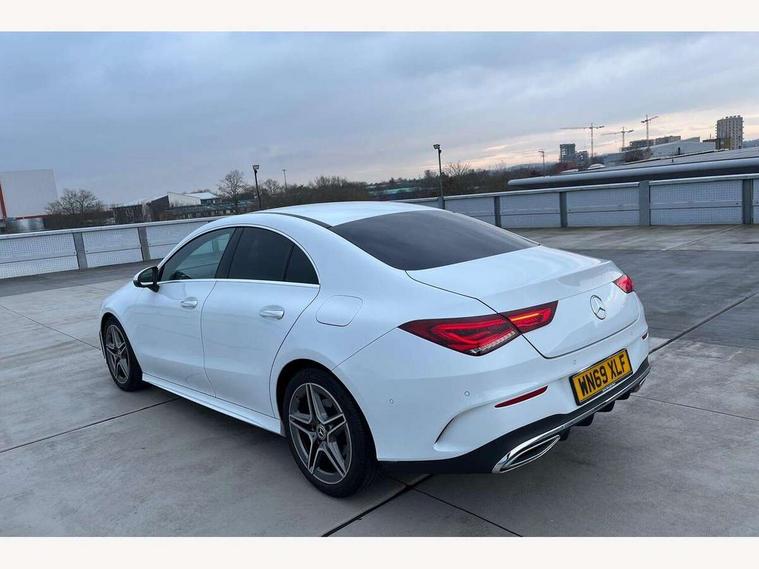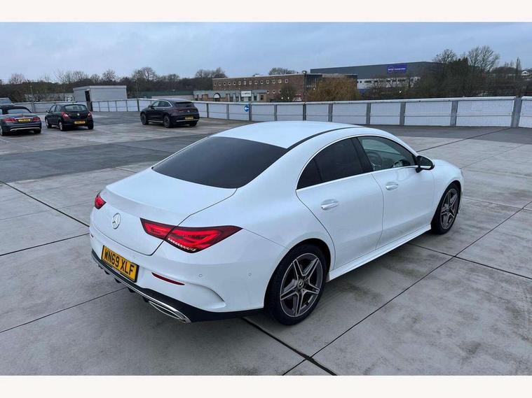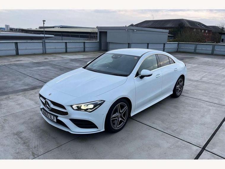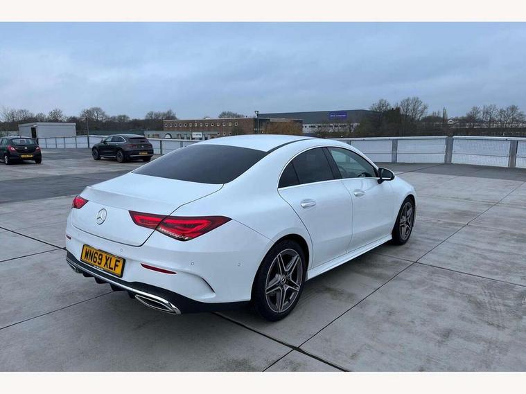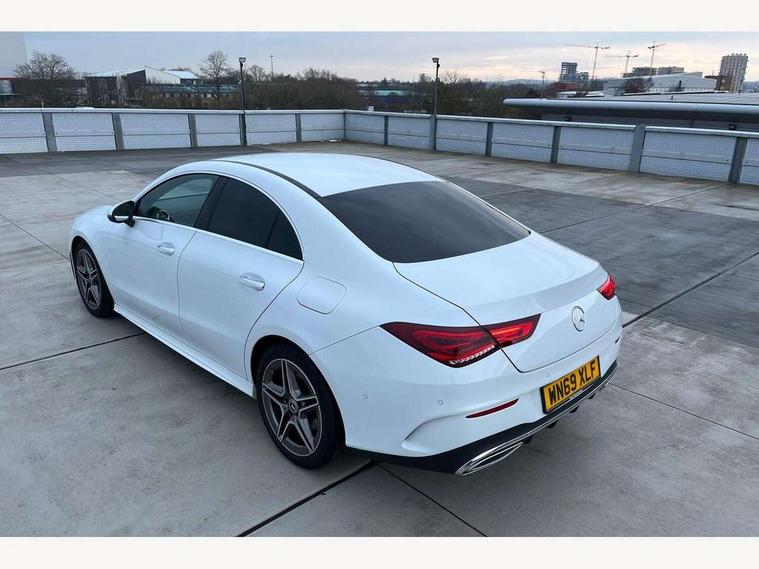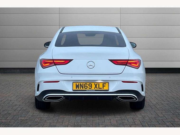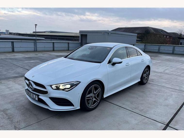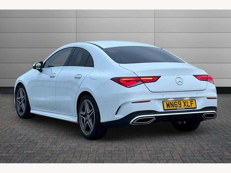10.25 inch Instrument display with digital cockpit, 10.25 inch touchscreen central media display, Active lane keeping assist, Attention assist - Monitors steering behaviour and long journey fatigue, Cruise control with limiter, Direct steer system with speed sensitive power steering, Dual bluetooth interfaces, DYNAMIC SELECT with a choice of driving modes (ECO, Comfort, Sport, Sport+ and Individual), ECO start/stop function, Fluid level warning indicator for fuel, oil, coolant and washer fluid, Hard-disk navigation, Hey Mercedes Voice activation, Lamp failure indicator, MBUX augmented reality for navigation, Mercedes me connect including emergency call system, accident recovery, breakdown and maintenance management, Outside temperature gauge, Owners manual and service booklet in English, Pre-installation for Vehicle Monitoring, Pre-installation for Vehicle Setup, Pre-installation of private car share, Preinstallation for Mercedes Benz link, Radio aerial integrated into front and rear windshields, Service indicator (ASSYST), Smartphone integration with Apple CarPlay and Android auto, Speed limit assist, Trip computer in multifunction display with current consumption indicator, Wireless charging, 7G-DCT 7 speed automatic transmission, Lowered comfort suspension, Rear axle multi-link, Sporty engine sound system, DAB digital radio tuner, MBUX multimedia system with DAB digital radio and touchpad including satellite navigation, Mercedes Benz advanced sound system (225 W) with 10 speakers, 1 central speaker, speakers on doors, a tweeter on door, one sub woofer + boost amplifier, USB (type C) ports (2) in stowage compartment and 1 in front of centre console, Adaptive brake lights, AMG body styling with AMG front apron and rear apron and visible exhaust tailpipe in chrome trim elements, AMG bodystyling side skirts, Body colour bumpers, Body colour door handles, Chrome beltline strips, Chrome weather strip, Diamond radiator grille pins in chrome with silver painted louvres and chrome insert, Electric windows, Electrically adjustable and heated door mirrors with integrated LED indicators, Exhaust system with 2 Visible tailpipe trim elements and rear apron with trim in chrome, Headlamp assist automatic headlamp activation, Heated glass rear windscreen + timer control, High level LED third brake light, LED high performance headlamps with integrated LED daytime running lights, LED tail lamp, Privacy glass with dark tinting on rear side windows and rear window, Rain sensing windscreen wipers with two sensitivity settings, Rear fog lamp, Vehicle Monitoring, Vehicle Setup, Window line trim strip in chrome, 3 spoke flattened bottom nappa leather multifunction steering wheel with perforated leather in grip area, 40:20:40 split folding rear seat backrests, Air conditioning - Two zone thermotronic luxury automatic climate control with display, Air vents with surround in silver chrome, Automatic child seat recognition sensor, Black roof lining, Brushed stainless steel sports pedals with rubber studs, Floor mats with stitched AMG lettering, Front centre armrest with stowage, Front seat cushion length adjustment, Galvanished gear shift paddles on steering wheel, Heated front seats, Illuminated glove compartment stowage, Illuminated Mercedes benz door sills with Mercedes Benz lettering, Interior lighting - 64 colour Ambient lighting, Luggage net on driver/front passenger seat backrest, Manually adjustable front seats, Manually height and reach adjustable steering column, Rear armrest with two integral cup holders for drinks, Rear head restraints, Rear interior lamp, Spectacles compartment for driver, Sport seats with fixed head restraints, Stowage compartment in centre console with retractable cover, Sunvisors with illuminated vanity mirrors, Touchpad on center console, Twin front cupholders, Two outer rear seat isofix and top tether child seat fixing points, Keyless go pack - CLA, Light and sight pack - CLA, Mirror pack - CLA, Parking package - CLA, Seat comfort pack - CLA, Active bonnet pedestrain safety measure which detects an impact and raises bonnet by 65mm, Active brake assist includes forward collision warning system with autonomous braking, Adaptive brake assist with hold function and hill start assist, Anti-lock braking system (ABS), Black seat belts, Bonnet with power domes, Brake pad wear warning indicator, Childproof locks manually operated for rear doors and electrically operated for rear power windows, Crash responsive emergency lighting, Driver and front passenger head and sidebags, Driver and front passenger windowbags, Drivers knee airbag, Dual stage driver and front passenger airbags, Electric parking brake, Electronic stability programme with acceleration skid control, ESP curve dynamic assist, Front and rear seatbelt reminder, Front brake callipers with Mercedes Benz lettering, Front passenger seat occupancy sensor, Three point rear seat belts, Tyre pressure monitoring system, Warning triangle and first aid kit, Alarm system with immobiliser and interior protection -Thatcham category 1, Remote central locking and crash sensor with emergency opening function, Light aluminium with longitudinal grain interior trim, 18" 5 twin spoke design alloy wheels painted in titanium grey with high sheen finish, Summer tyres, Tirefit tyre sealant kit,
