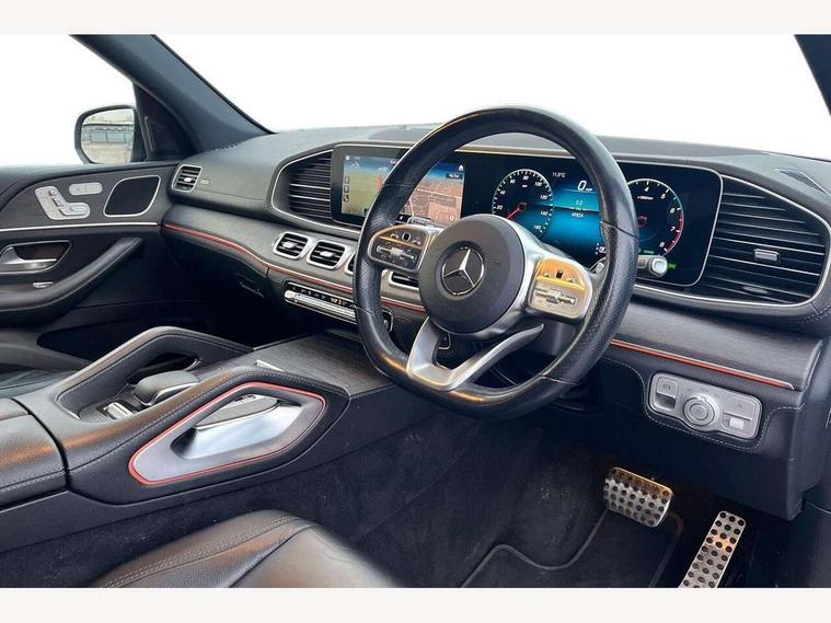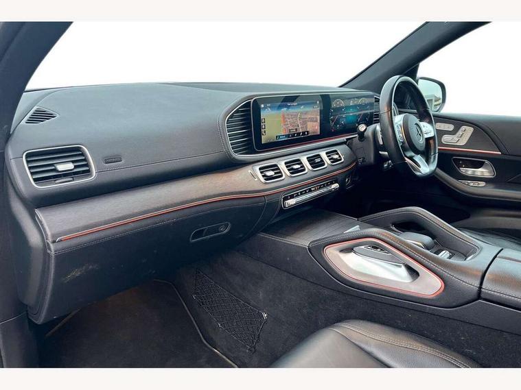 Attention assist, Blind spot assist, Brake wear warning display, Cockpit display 12.3" widescreen digital instrument cluster, Cruise control with variable speed limiter, Direct steer speed sensitive steering, DYNAMIC SELECT with a choice of driving modes (ECO, Comfort, Sport and Individual), Easy-pack tailgate - Powered opening/closing automatically, ECO start/stop function, Geofencing, Hard-disk navigation, Hey Mercedes Voice activation, High resolution 12.3" multimedia colour display, Lane keeping assistant (LKA), MBUX augmented reality for navigation, MBUX multimedia system with DAB digital radio and touchpad including satellite navigation, Mercedes me connect including emergency call system, accident recovery, breakdown management and maintenance, Outside temperature display, Remote boot release, Service indicator (ASSYST), Smartphone integration with Apple CarPlay and Android auto, Speed limit assist, Status display for rear seat belts in instrument cluster, Traffic Sign Assist, Traffic sign recognition including wrong way warning function and display of posted speed limits in the instrument cluster, Trip computer in multifunction display showing current fuel consumption, Wireless charging system for mobile devices, 85 litre fuel tank, Agility control suspension with selective damping system and lowered by 15mm, EQ Boost starter alternator, Petrol Particulate Filter (PPF), Additional USB connection, DAB Digital radio, Dual bluetooth interface, 2 USB ports (type C), Adaptive brake lights, Adaptive high beam assist, Aerial for GPS, Aluminium look, illuminated running boards with rubber studs, AMG bodystyling front and rear aprons and side skirts in polished aluminium, Body colour door mirrors, Body coloured bumpers, Electric windows with one touch opening/closing and obstruction sensors, Exterior mirrors heated and electronically adjustable, Front green tinted glass, LED rear lights, Multi beam LED headlights, Privacy glass - heat insulating dark tinted glass, Radiator grille with integrated star and single louvre in matt iridium silver with chrome trim, Radio aerial integrated into rear window, Rain sensing windscreen wipers, Rear wiper, Roof rail system, Top surround of side windows in polished aluminium, Visible twin pipe exhaust system integrated into bumper, Waistline in polished aluminium, 3 spoke AMG multifunction steering wheel with touch control buttons, trimmed in black nappa leather with flattened bottom section, 3rd row of seats for 2 people, 4 way adjustable front head restraints and 2 way rear head restraints, 4 way lumbar support, 40:20:40 split folding rear seats, AMG brushed stainless steel sports pedals with rubber studs, AMG floor mats with AMG lettering, Artico man-made leather upper dashboard with contrast topstitching, Automatic child seat recognition sensor, Black fabric roof liner, Central stowage compartment with 12 V socket in centre console, Chrome door pins, Courtesy lights in rear grab handles with reading light functionality, Electric folding second row seats adjustments, Electronically adjustable three second row seats, Four way partially front electric seat adjustment, Front centre armrest with stowage compartment and illuminated grab handles, Gearshift paddles on steering wheel, Glasses compartment in overhead control panel, Glove compartment - lockable, air conditioned and illuminated, Heated front seats, Interior lighting - 64 colour Ambient lighting, ISOFIX child seat attachment points two outer rear seats, Nappa leather upholstery, Seat occupancy sensor for front passenger seat, Second row three seats, Steering column manually adjustable for height and reach, Sunvisors with illuminated vanity mirrors, Thermotronic automatic 4 zone climate control, Touchpad, Airmatic package - GLE, Anti theft Protection package - GLE, Memory package - GLE, Mirror package - GLE, Parking package with 360 camera - GLE, Active bonnet, Active braking assist, Adaptive brake system with HOLD function and brake drying in the wet, Airbags - driver and front passenger, with extended adaptivity for front passenger airbag, Airbags - sidebag for driver and front passenger with combined thorax/pelvis bag, Airbags - windowbags, Anti-lock braking system (ABS), Childproof locks manually operated for rear doors and electrically operated for rear power windows, Drivers knee airbag, Electronic parking brake, Electronic Stability Programme (ESP), Perforated front brake discs and brake calipers with Mercedes-Benz lettering, Pre-Safe anticipatory safety system, Three point rear seat belts, Tyre pressure monitoring system and loss warning system, Warning triangle and first aid kit, Alarm system/interior protection/immobiliser, Central locking with interior switch, automatic locking and crash sensor with emergency opening function, Chrome surround electric key, Keyless Go starting function, Dashboard and door, anthracite open pore oak wood trim, Trim - Centre console, anthracite open pore oak wood trim, 22" AMG 5 twin spoke alloy wheels painted in tremolite grey with high sheen finish, Summer tyres with noise reducing absorber, TIREFIT with tyre inflation compressor,