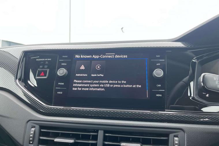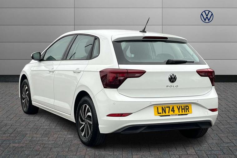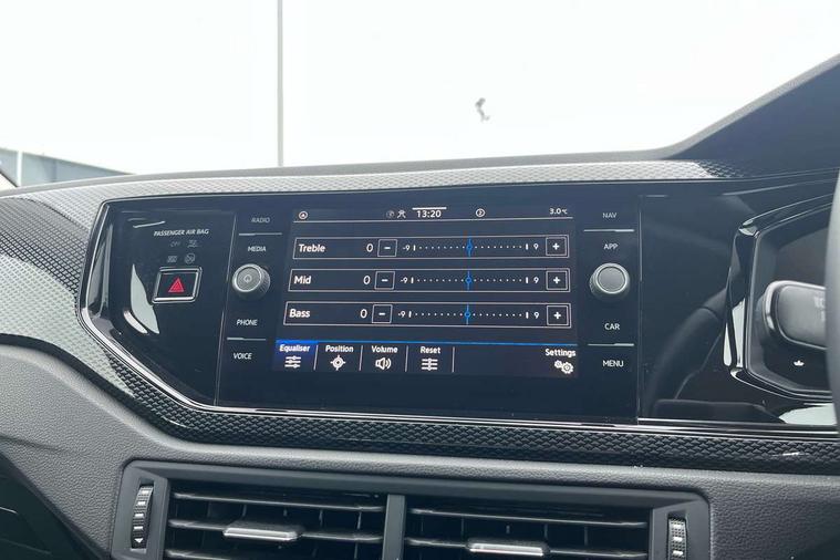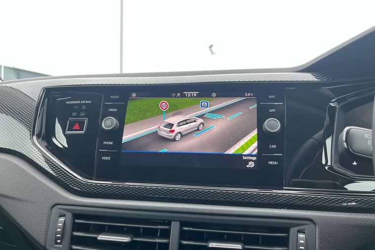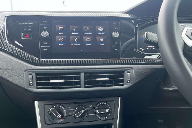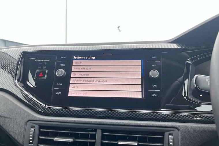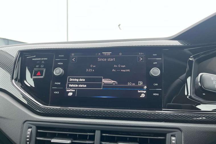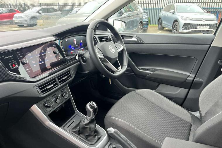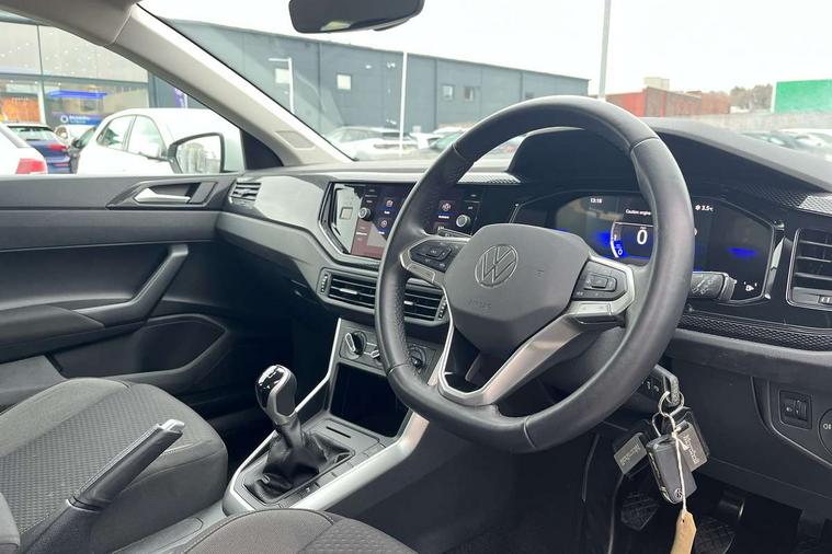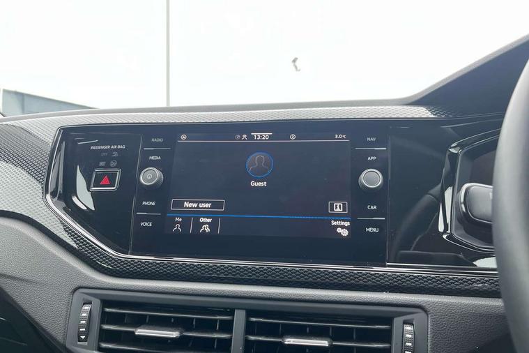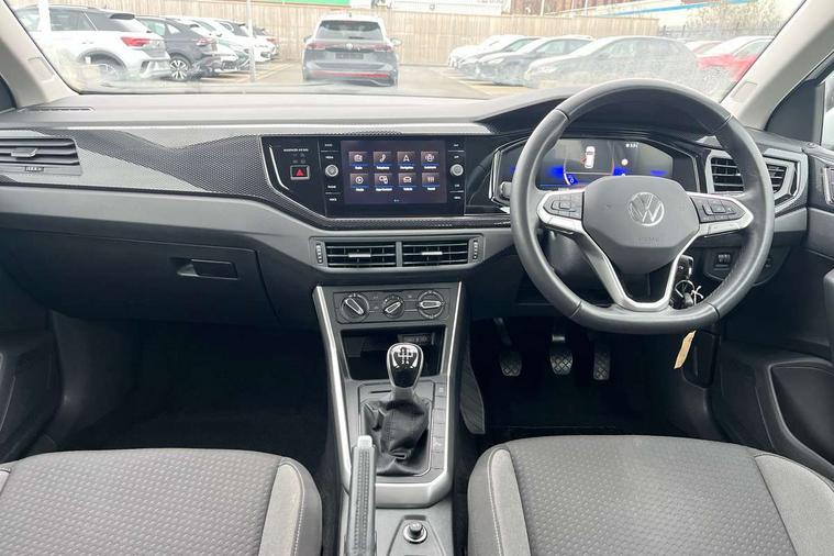 Advanced driver attention and drowsiness monitor, Bluetooth mobile phone interface, Cruise control + speed limiter, Dynamic road sign display, Emergency call service, Lane keeping system Lane Assist, Multifunction camera, Power assisted speed sensitive steering, Preparation for navigation system with media and internet package, Preparation for We connect and We connect plus, Speedo and rev counter, electronic odometer, trip, service interval display and exterior temperature gauge, Standard rear axle, Trip computer, Warning signal and warning light for front and rear seatbelts not fastened, Washer fluid level indicator, Wireless app connect, Front wheel drive, Rear shock absorpion, Start-stop system with battery regeneration (recuperation - energy recovery during braking), DAB Digital radio, Diversity antenna for FM reception, Front and rear 6 speakers, Automatic dimming interior rear view mirror, Automatic headlight control with LED separate daytime running lights with coming/leaving home function, Body colour bumpers with chrome inserts, Body colour door handles, Body colour door mirrors, Electric front windows, Engine badge deletion, Headlight range adjustment, Heat insulating and laminated safety glass windshield, Heat insulating darkened glass in side and rear windows, LED Headlights, LED rear combination lamps, Power folding adjustable/heated exterior mirrors and front passenger exterior mirror lowering function, Rain sensor, Rear electric windows, Rear fog light, Rear side wing doors, Rear windscreen washer and wiper with interval delay, Third brake light, 12V power socket in centre console, 2 front and 2 rear reading lights with switch off delay and dimmer, 2 USB-C ports in the front, 2 USB-C charging sockets on the center console in the rear, 3 rear head restraints, 60/40 split folding rear seat and rear seat bench not split, Ceramique roof lining, Chrome plated radiator grille inserts, air vent surrounds and light switch surrounds, Door and side trim panel, Driver and front passenger seat height adjustment, Driver/passenger sunvisors with illuminated vanity mirrors, Front centre armrest, Front seat backrest storage pockets, Front standard seats, Handbrake lever handle in leather, Hartley/Thomas cloth upholstery, Headliner in recycled material, Isofix child seat preparation easy-fit (for two outer rear seats, and front passenger seat) compatible with I-size, Leather trimmed gear knob, Luggage compartment cover, Luggage compartment lighting, Removable luggage compartment floor, Single front passenger seat, Standard climatic zones, Standard pedal cluster, Three spoke leather wrapped multifunction steering wheel, Light and vision pack - Polo, 3 point height adj front seatbelts + pretensioners, 3x3 point rear seatbelts, ABS, Driver and front passenger airbag with front passenger airbag deactivation, Drivers and front passengers safety optimised head restraints, ESC (Electronic stability control) + EDL (Electronic Differntial lock) and ASR (Traction control), Extended and predictive pedestrian/ cyclist protection, Front assist with autonomous emergency braking (for Adaptive Cruise Control ACC up to 130 mph), Front curtain and side airbags with center airbag, Front disc brakes, Hill hold control, Manual child lock in rear doors, Rear drum brakes, Single tone horn, Tyre pressure loss indicator, Alarm with interior protection, Anti-theft alarm system with interior monitoring, backup horn, and towing protection, Anti-theft wheel bolts, Electronic engine immobiliser, Lava stone black gloss/matt decorative inserts in dash and front door panels, Low rolling resistance tyres,