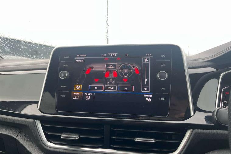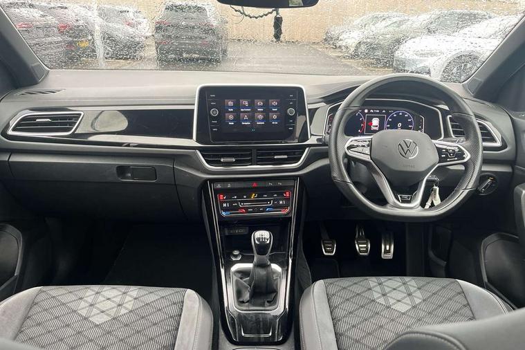 10.25" Digital cockpit pro, Bluetooth mobile phone interface, Driver alert system with fatigue detection, Driver tips and journey analysis, Emergency call service, Lane keeping system Lane Assist, Modified key software - reduce switch off time for key status change to Long no motion, Online services, Park assist including front and rear parking sensors, Service interval indicator, Tailgate/trunk lid release from outside, Think blue trainer driver tips and journey analysis, Warning sound and light for front seatbelts unfastened, Wireless app connect, Battery regeneration during braking, Start/stop function with battery regeneration, Diversity antenna for FM reception, Front and rear 6 speakers, Music playback - MP3, WMA and AAC files, Premium USB cable in choice of either Apple or Android smartphone compatibility, SD card slot, Simultaneous pairing of 2 compatible mobile devices, Title and cover art display, We Connect and We Connect Plus functionality, 3rd brake light, Auto dimming interior rear view mirror, Automatic hazard lights activation under emergency braking, Automatic headlight control with LED separate daytime running lights with coming/leaving home function, Extended roof spoiler, Exterior mirrors aspherical on driver side, convex on front passenger side, External USB type C socket and charging sockets, Front windscreen wiper with intermittent wipe and 4 position delay, Heated rear window, LED Plus headlamps, LED rear combination lamps, LED rear number plate lights, LED tail lamp rear comination lamps, Power windows with comfort operation and circuit breaker, R-Line design body coloured bumpers, Rain sensor, Rear exhaust tailpipe, Rear fog light on one side and reversing lights on both sides, Rear side wing doors, Rear wash/wipe with intermittent wipe setting, Remote electrically foldable door mirrors, puddle lights and reverse activated passenger's door mirror, 12V power socket in centre console, 3 rear head restraints, 3 seat bench in 2nd row, 4 load lashing points in luggage compartment, Air care climatronic air conditoning system with active combination filter and 2-zone temperature control, Black roof lining, Chrome plated radiator grille inserts, air vent surrounds and light switch surrounds, Door and side trim panel with leatherette insert, Drawer under drivers seat, Front + rear carpet mats, Front centre armrest, Front cupholders x 2, Front footwell illumination, Front reading light, Front scuff plates with R logo, Instrument lighting, white adjustable panel illumination, Interior ambient lighting and surround lighting, Interior light delay, Isofix child seat preparation, Leather gearshift handle, Load-through provision with cup holder when folded down ('Unsplit rear seat bench, split folding backrest, with centre armrest), Luggage compartment lighting, Single front passenger seat, Stainless steel pedals, Storage compartment in left and right luggage area, Storage compartment in rear doors, Storage compartments in driver and front passenger doors, Sunvisors with illuminated vanity mirrors, Variable boot floor, height adjustable and removable, Driver assistance pack without proactive passenger protection - T-Roc, 3 point height adj front seatbelts + pretensioners, 3 point seatbelts in outer rear with ECE label, ABS, Child locks on rear doors, Driver and front passenger airbag with front passenger airbag deactivation, Driver and front passenger safety-optimised head restraints, Drivers seatbelt reminder, Electronic parking brake, Electronic Stability Control (ESC) inc EDL (Electronic Differential Lock) and ASR (Traction Control), Front and rear passengers curtain airbag system including front side airbags, Front assist with city emergency braking and pedestrian monitoring, Front seat side impact airbags, Hill start assist, Predictive pedestrian protection, Rear disc brakes, Single tone horn, Tyre pressure loss indicator, Volkswagen roadside assistance, Alarm with interior protection, Anti-theft alarm system with interior monitoring, backup horn, and towing protection, Remote central locking with SAFELOCK, radio remote control with 2 remote control folding keys, Trims for alloy wheels,