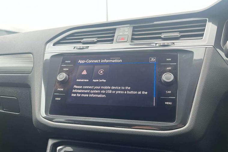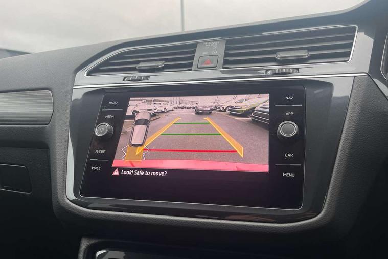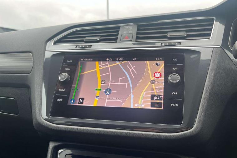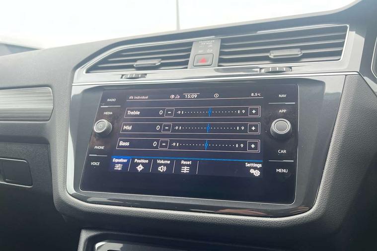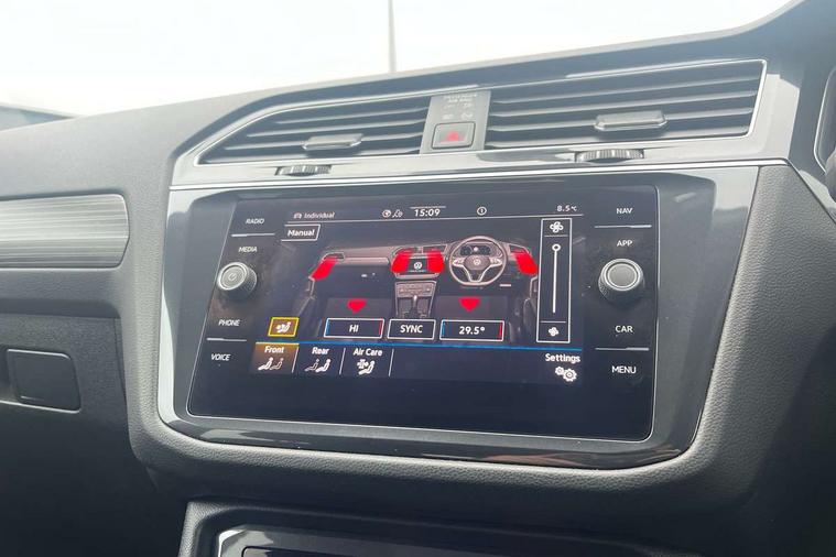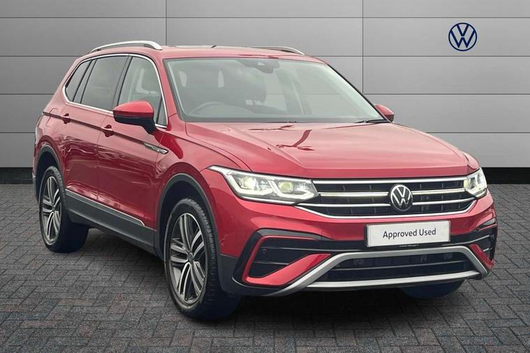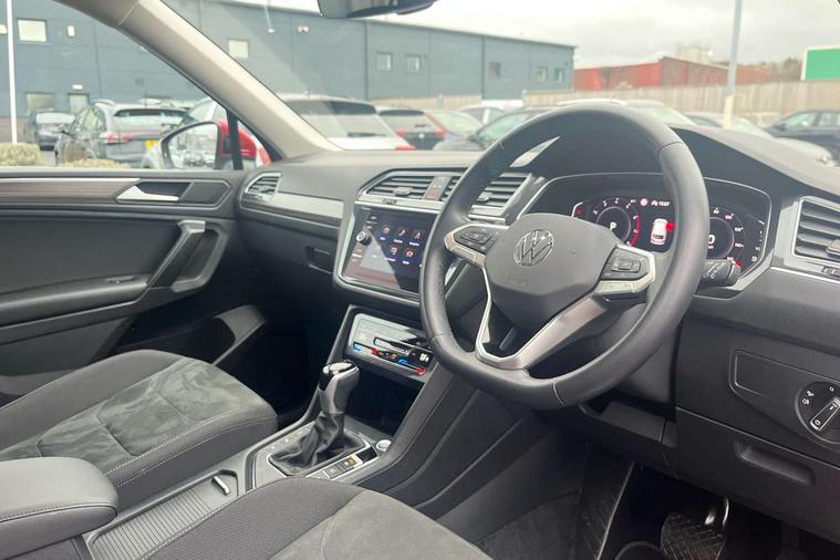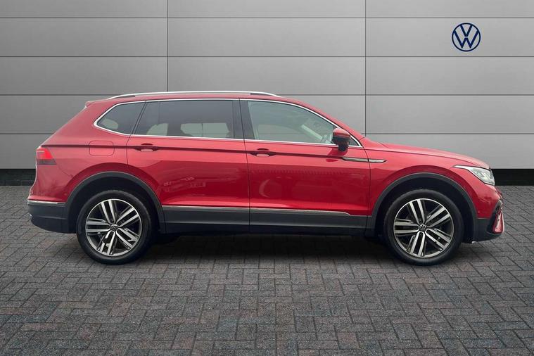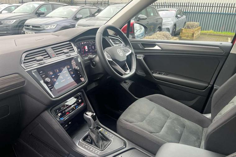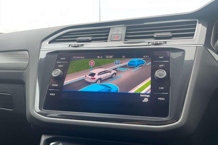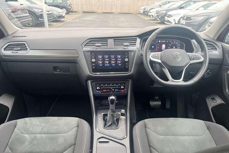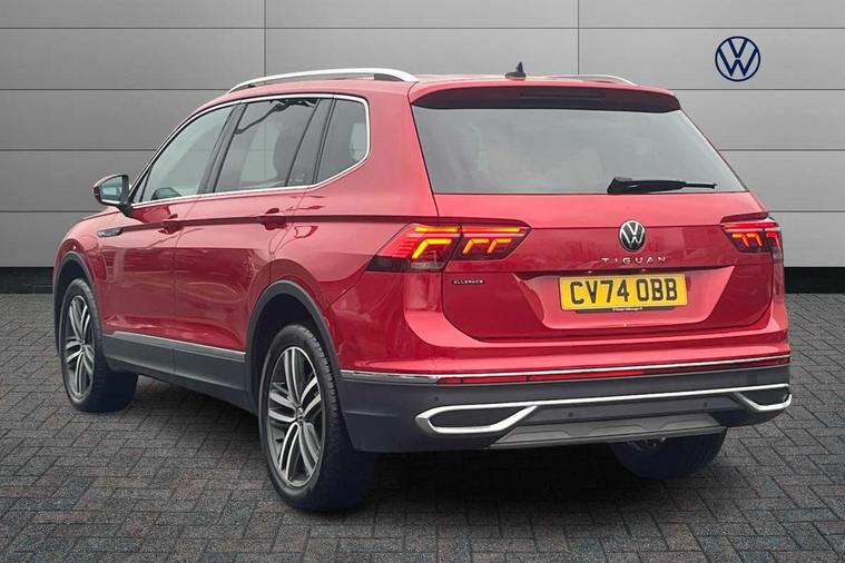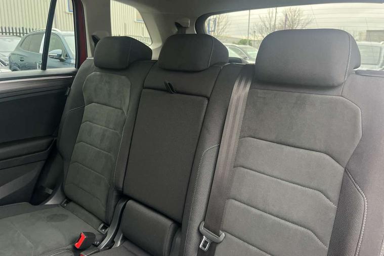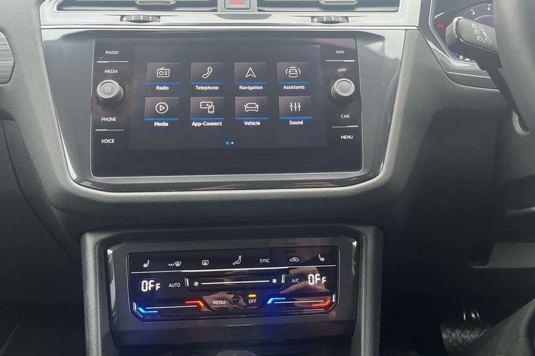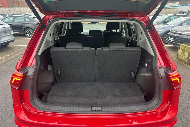 Adaptive cruise control, Advanced driver attention and drowsiness monitor, App-Connect, Digital cockpit pro, Driver profile selection, eCall emergency call service, Electric boot lid, Lane keeping system Lane Assist, Mobile phone interface comfort with inductive charging feature, Multifunction front facing camera, Power assisted speed sensitive steering, Speedo and rev counter, electronic odometer, trip, service interval display and exterior temperature gauge, Front wheel drive, Start-stop system with battery regeneration (recuperation - energy recovery during braking), 2 USB-C ports in the front, 1 USB-C charging socket on the center console in the rear, DAB Digital radio, Diversity antenna for FM reception, Auto dimming interior rear view mirror, Automatic headlight control system, Body coloured comfort bumpers, Chrome mouldings on side window, Coming/leaving home lighting function, Exterior badge deletion, Exterior mirror housings painted in silver, IQ light adv HBC, dyn light assist LED matrix headlamps, DH range, dark red LED rear combo light, poor weather, CL, LED headlamp with LED DRL and DCL - PXC, Privacy glass, Rain sensor, Rear fog light, Rear side wing doors, Rear wiper, Silver roof rails, Third brake light, Tilting and sliding panoramic sunroof, 12-volt outlet in centre console rear and luggage compartment, 12V socket in centre console, 3 head restraints in rear, 3 individual folding 2nd row seats, 3rd row 2 individual seats, Air Care Climatronic 3 zone automatic climate control with enhanced air filter and controls in the rear, Door and side trim panel, Drawers under front seats, Driver and front passenger seat height adjustment, Foldable front passenger seat backrest, Front + rear carpet mats, Front centre armrest, Front footwell illumination, Illuminated scuff plates, ISOFIX anchorage points for mounting 2 child seats on rear seats and i-Size child seats, Leather gearshift handle, Leather-wrapped multi-function steering wheel with shift paddles, LED interior light with switch off delay/dimmer and 2 front/rear LED reading lights, Sun visors with illuminated vanity mirrors, Ambience pack - Tiguan Allspace, Easy open and close pack with safelock - Tiguan Allspace, Park assist pack - Tiguan Allspace, 3 point seat belt for centre rear seat, 3 rear three point seatbelts, ABS+EBD+Brake assist, Driver and front passenger safety-optimised head restraints, Driver's and front passenger's airbag with front passenger's airbag deactivation switch, Electronic parking brake, Electronic Stability Control (ESC) inc EDL (Electronic Differential Lock) and ASR (Traction Control), Height adjustable front 3 point seatbelts + pretensioners, Manual rear child locks, Pedestrian monitoring, Rear disc brakes, Side airbag in front and rear with curtain airbag, Two tone horn, Warning buzzer for seatbelts if unfastened, Anti theft alarm system with interior monitoring, backup horn and towing protection, Anti-theft wheel bolts, Remote central locking with 2 remote folding keys, Chequered flag tinanium decorative inserts,