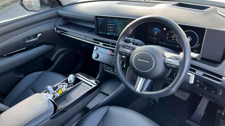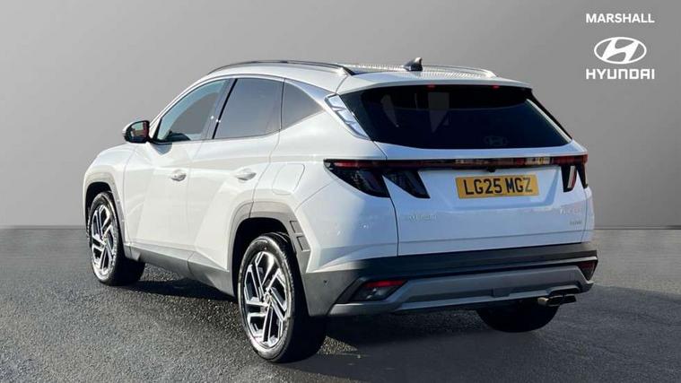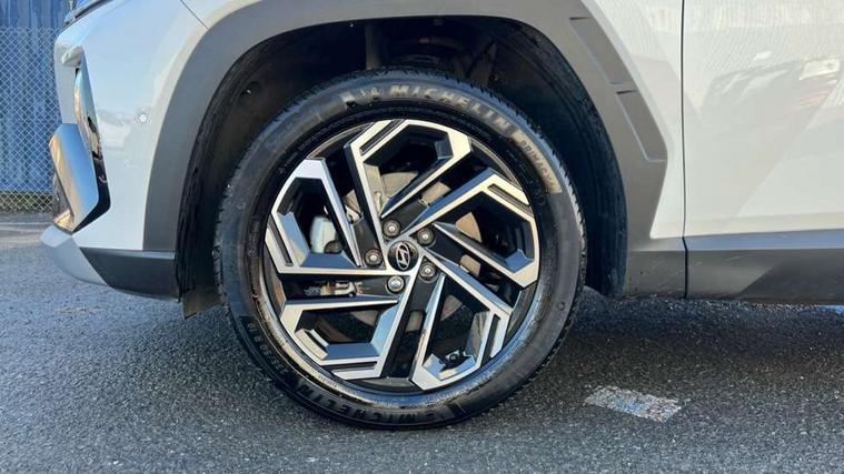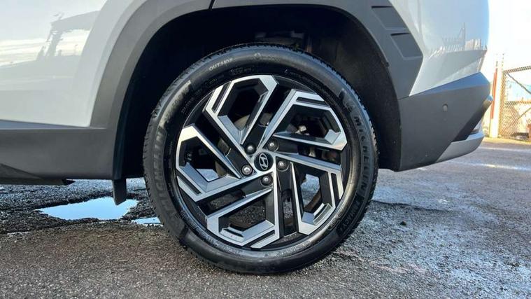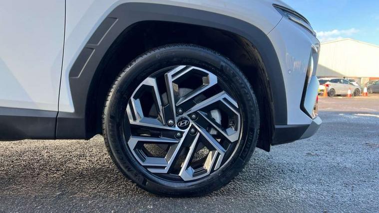 12.3" LCD display with driver's supervision instrument cluster, 12.3" widescreen navigation with bluelink and mapcare, Blind spot view monitor, Bluetooth system, Cruise control - smart adaptive speed control with stop and go function, Digital clock, Drive mode selector, Driver attention warning, E-call, Emergency stop signalling system, Forward Collision Avoidance Assist (FCA) - Car, Pedestrian and Cycle, Forward Collision Avoidance Assist Junction Turning (FCAJX), Front and rear parking sensors, Front, rear and side parking distance warning, Highway Driving Assist (HDA), Hyundai road side assistance, Intelligent speed limit assist, Lane follow assist, Lane keep assist, Over the air updates(OTA), Parking collision avoidance assist (PCA), PAS, Rear camera and guidance parking system, Rev counter, Smart power tailgate, Surround view monitor, Tailgate open warning light, Trip computer, Trip odometer, Voice recognition, Water temperature gauge, Windscreen washer fluid sensor and warning indicator, Wireless Apple CarPlay/Android Auto, Wireless phone charging pad, 2 front and 2 rear USB-C ports, DAB Digital radio, Krell premium audio system with 8 speakers and subwoofer, Steering wheel mounted audio/phone controls, Adjustable intermittent front windscreen wipers with aero wiper blade, Auto dimming rear view mirror, Automatic defog system, Automatic headlights with dusk sensor, Automatic windscreen wipers with rain sensor, Black wheel arches, Body colour bumpers, Body colour door mirrors with integrated indicators, Body colour exterior door handles, Electric tilt/slide panoramic sunroof, Electrically adjustable, heated and power folding door mirrors, Follow me home headlights, Front and rear electric windows with anti-trap mechanism and one touch control, Front fog lights, LED 3rd brake light, LED daytime running lights, LED rear lights, Matrix LED headlights, Positioning Lights - LED, Privacy glass - Rear windows and tailgate, Rear side wing doors, Rear wash/wipe with intermittent wipe setting, Roof rails, Tinted glass with windscreen shade band, Trailer stability assist, 12V power outlets in front console and luggage compartment, 3 seat bench in 2nd row, 40/20/40 split folding rear seat, 64 colours interior ambient lighting, Adjustable head restraints (Up and down), Cupholders in rear armrest, Door courtesy lights, Driver and passenger sunvisors with illuminated LED vanity mirrors, Driver's seat electric adjustments, Driver's seat memory, Front and rear door pockets, Front armrest with storage box, Front centre console and door bottle holders, Front passenger's seat electric adjustments, Heated front seats, Heated rear seats, Heated steering wheel, Height/reach adjustable steering column, Illuminated/air conditioned glove compartment, ISOFIX child seat anchorage points attached on outer rear seats, Leather upholstery, Leather wrapped steering wheel and gear knob, Luggage compartment lighting, Luggage cover, Luggage hooks, Luggage net, Map and reading lights, Rear seat remote folding function, Rear side window sunblind, Reclining rear seats, Retractable load cover, Single front passenger seat, Sunglasses holder, Three zone climate control, Touch sensitive climate controls with temperature dials, TUCSON branded metal door scuff plate, Underfloor boot compartment, Ventilated front seats, Trailer wiring package - Tucson, 3x3 point rear seatbelts, Active bonnet, Airbag - Front, front side, curtain and centre front airbags, Anti-lock brake system (ABS), Brake assist function, Childproof rear door locks, Curtain airbag roll over sensor, Downhill brake control, Electric parking brake, Electronic stability control, Front and rear seatbelt reminder, Front passenger airbag deactivation switch, Front seatbelt pretensioners, Hill start assist control (HAC), Multi-Collision braking, Outer rear seatbelt height adjustment, Seatbelt height adjustment for front seats, Traction control, Tyre pressure monitoring system with individual tyre pressure display - TPMS, Vehicle stability management, Deadlocks, Immobiliser, Locking wheel nuts, Remote control central locking, Smart key with keyless entry and engine start/stop button, Speed sensitive auto door locking, Thatcham category 1 alarm, 19" Alloy wheels, Tyre repair kit,