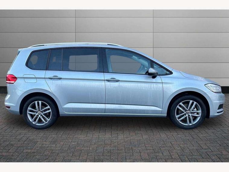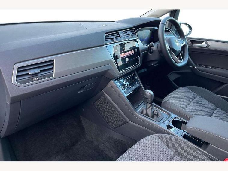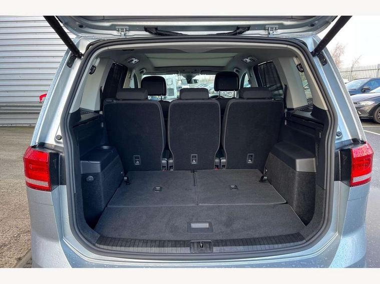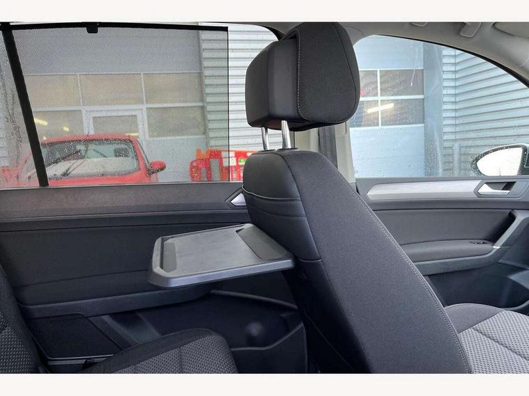 Adaptive cruise control, Audible lights on warning, Discover media navigation touchscreen navigation/radio system with streaming and internet, Driver alert system, Driver profile selection, Dynamic road sign display, Electric tailgate, Electronic odometer, Emergency services call system, Extended, crash-active and proactive Pedestrian and cyclist monitoring, External temperature gauge, Front parking sensors, Lane change system side assist and rear traffic alert, Lane keep assist, Misfuelling protection device, Mobile pairing with SMS function, Mobile phone interface with inductive charging, Rear view camera displayed via vehicles audio system display, Rev counter with fuel gauge, Side scan, Speed limiter, Speed sensitive power steering, Stop/start system, Think blue trainer driver tips and journey analysis, Trip and service interval display, We connect' and 'We connect plus' functionality, Petrol Particulate Filter, Rear stabiliser bar, XDS electronic differential lock, 4x20 watt output, 8 Speakers, Audio Connectivity System, DAB Digital radio, External USB-C data socket with increased charging performance - 2 USB sockets 45W, MP3/WMA compatability, SD card slot, Title and cover art display, USB connection, Aerial integrated into side window, Auto dimming door mirrors, on driver side, surround lighting and front passenger side mirror lowering function, Auto dimming rear view mirror, Automatic coming/leaving home lighting function, Body colour bumpers, Body colour door handles, Body colour door mirrors with integral indicators, Door mirrors with memory function, Dusk sensor + auto driving lights, Electric folding door mirrors, Electric heated + adjustable door mirrors, Electric, glass sliding/tilting panoramic sunroof including integrated roller blind and LED lighting around aperture, Front and rear electric windows, Fully galvanised body, Gloss black finish B pillar, Green tinted heat insulating glass, High level third brake light, Rain sensor, Rear fog lights, Rear side wing doors, Rear tinted glass from B-pillar backwards approx 65% tinted, Rear wash/wipe with intermittent wipe setting, Removable engine badge, Silver roof rails, Tailgate wiper- reverse gear activation, Twin chrome exhaust tailpipes, Volkswagen roundel, Windscreen wipers intermittent wipe, 12V power point for Row 2, 12V socket in luggage compartment, 2 individual fold flat 3rd row seats, 2 three point seatbelts in 3rd row, 2nd row centre armrest, 2nd row centre seat converts into table, 3 single slide/fold/removable 2nd row seats, 3 spoke steering wheel, 3x3 point seatbelts on 2nd row with height adjust on outer seats, 4 boot load lashing points, 4 way adjustable front head restraints, 5 headrests, Activated charcoal canister for intensified evaporation system, Air care climatronic 3 zone air conditioning system with rear air conditioning control panel, Chrome plated radiator grille inserts, air vent surrounds and light switch surrounds, Driver and front passenger under seat drawer, Dust/pollen filters, Foldable front passenger seat backrest with load through function, Front and rear reading lights X 2, Front centre armrest with storage compartment, Front comfort seats with lumbar support, Front cupholders x 2, Front passenger seat height adjust, Front seat storage pockets, Front seatback folding tables, Height adjustable driver's seat, Height/reach adjust steering wheel, Illuminated glovebox, Instrument lighting white adjustable panel illumination with red night time illumination, Interior light with delay, Isofix on 2nd row outer seats, Isofix on 3rd row seats, Large storage compartment in roof console, Lasano cloth upholstery, Leather multifunction steering wheel with gear knob, Leatherette on rear of front seats, Low tunnel 2nd row seat, Luggage compartment lighting, Media box in dashboard on passenger side, Multi storage in passenger/luggage areas, Multi-function centre console with storage facilities, Retractable luggage cover, Split folding rear seat backrests, Storage bins on all doors, Sun visors with illuminated vanity mirrors, Family Pack - Touran, Winter pack without heated washer jet - Touran, 3 point height adjustable front seatbelts, Auto hold function, Automatic post collision braking system, Door open warning reflectors, Driver/Front Passenger airbags, Drivers knee airbag, EDL + ASR, Electronic parking brake, Energy recovery system, ESC with ABS, First aid kit, Front and rear (row 2) curtain airbags, Front assist with autonomous emergency braking, Front seat side impact airbags, Front seatbelt pretensioners, Front/rear disc brakes, Hill hold control, Hydraulic Brake Assist (HBA), Loose wheel warning function, Manual passenger airbag deactivation function, Pre crash preventive occupant protection, Proactive passenger protection system with front and side assist, Rear child proof door locks, Road sign recognition, Seatbelt warning lamp and buzzer, Traction control, Two tone horn, Warning triangle, Alarm with remote central locking and interior protection, Electronic engine immobiliser, Keyless Access Keyless locking and starting system with SAFELOCK, New brushed design decorative inserts in dash and front doors, 17" Salvador alloy wheels with anti-theft wheel bolts, 215/55 R17 self sealing tyres with low rolling resistance,