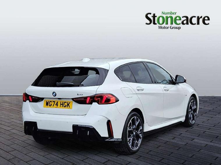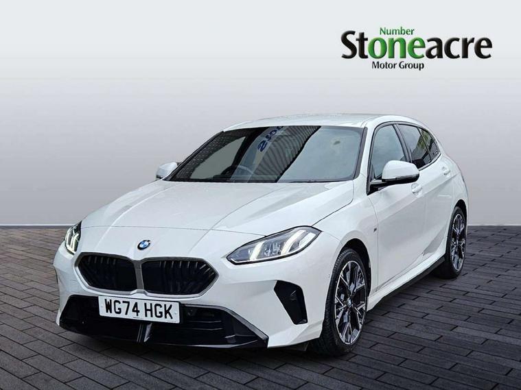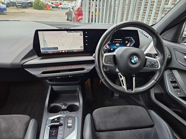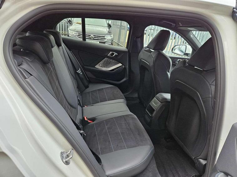 Active guard plus, Attentiveness assist, Bluetooth / WiFi interface for wireless connection of mobile terminal devices and audio streaming, BMW ConnectedDrive online services, BMW Live cockpit plus, BMW Teleservices, Check Control warning system for monitoring of lights and door/luggage compartment open warning, Cruise control with speed limiter, Eco pro mode, Electric power steering with Servotronic steering optimised at all speed ranges, Front and rear parking sensors, Front axle single joint with specific axle kinematics to minimise drive influences on steering + provide increased rigidity agile driving behaviour, Integrated owners handbook, Lane departure warning system, Oil sensor for level and grade, On board computer, Optimum shift indicator, Park assist including reversing assistant, lateral parking aid and reversing assist camera, Personal Profile, Pull away assistant, Rigidly mounted rear subframe - Multi link construction with separate spring / damper configuration and excellent driving characteristics, Speed limit Info including no-overtaking indicator, Speedometer, 49 litre fuel tank, Aluminium lightweight construction, Anti roll bar front and rear, Balancer shaft, Double VANOS twin scroll turbocharging system, Drive Performance Control, Electronic differential lock, High precision injection, M Adaptive suspension, Petrol Particulate Filter, Twin tube gas filled shock absorbers with degressive characteristic curve, VALVETRONIC engine management, DAB Digital radio, Auto dimming rear view mirror, Automatic headlight beam throw control, Automatic windscreen wipers and automatic headlight, Body colour door handles, Body colour mirror caps, Body colour roof trims, Chrome 'M' logo side designation, Chrome exhaust twin tailpipes round 90mm in left, Chrome kidney grille frame with Satin Aluminium struts, Direction indicator side lights in exterior mirrors, Electrically adjustable exterior mirror with mirror adjustment switch on drivers armrest and aspheric on driver side, convex on passenger side, Fading support, Folding side mirrors with auto dimming/folding wing mirrors with auto dimming, Follow me home headlights, Front and rear bumper system with replaceable deformation elements, Front and rear electric windows with open and close fingertip control, anti trap facility and comfort closing, Front door sill finishers in black plastic with M designation in metallic look, Green tinted heat protection glazing, High gloss shadowline window frame, Recess cover mirror frames and B/C pillar embelisher trim, High level third brake light, Integrated front windscreen with washer jets, LED daytime running lights, LED eyebrow turn indicators, LED front fog lights, LED Headlights, Lightweight engineering, Matt black air guide grilles, Matt black wheel arch trim, Nearside reverse light in rear light cluster, Preparation for high beam assistant, Rear fog lights, Rear side wing doors, Rear window wiper, Shark fin antenna, Trailer stabilisation logic, Visible VIN plate, Welcome lighting, 12V power socket in front centre console with blanking plug, 3 rear seat head restraints, 3 seat bench in 2nd row, 3 spoke sports leather steering wheel with black leather and stitching, pearl chrome decorative finish, specific M Badge, Anthracite headlining, Black boot net with lashing eyes, Cargo function on 2nd seat row, Child seat ISOFIX attachment for two outer rear seats and front passenger seat with anchorage points, Conditioned based service, Driver and front passenger backrest net on rear, Driver and front passenger seat heating, Driver side folding compartment in instrument panel, Folding rear clothes hook, Four grab handles integrated in roof lining, Front and rear door pockets with bottle holders, Front and rear side armrest integrated into door trim, Front armrest, Glove compartment, Height adjustable front head restraints, Luggage compartment for bag hooks on left and right, foldable luggage compartment liner and four lashing eyelets, Manual adjust steering wheel, Multi-function controls for steering wheel, Rear seat backrest with manual 60:40 split folding with 3 top tether clips integrated on rear of seat panels, Single front passenger seat, Storage compartment in centre console, Storage compartment in luggage compartment, Stowage of the parcel shelf in luggage compartment trim, Sun visors with vanity mirrors and insert tab, Two front centre console cupholders, Type C two USB ports in rear centre console, Velour floor mats, Connected pack professional - 1 Series, Interior lights pack - 1 Series, M Sport exterior styling aerodynamics pack - 1 Series, 2 tone horn, 3 point seatbelts on all seats, front pyrotechnic belt tensioners, stopper and belt force limiters, rear coded belt buckles, Airbags - Front driver/passenger, front and rear curtain head protection, front side, manual deactivation of front passenger airbag, Anti lock braking system (ABS) with brake assist, BMW emergency call, Brake drying, Braking readiness, Child proof locking system in rear door, Comfort modes, Cornering brake control, Crash sensor activating of airbags, Unlocking doors, hazard warning lights, interior light, safety battery terminal, Driver and front passenger seat belt security check, Dynamic stability control + (DSC+), Dynamic Traction Control - DTC, Electrically operated hand brake including automatic hold function, Front and rear disc brakes, Seatbelt warning, Side impact protection, Tyre pressure monitoring system, Warning triangle and first aid kit, Central locking switch for all doors, fuel filler cap and luggage compartment, Deadlocking function system to all doors, Drive away locking system on all doors and luggage compartment with de-activated in iDrive settings, Locking wheel bolts, Remote control with integrated key with High-gloss Black inlay and M designation and 1 button for open/ close lock, window, open luggage compartment, Start/stop button illuminated in centre console with keyless engine start and auto 