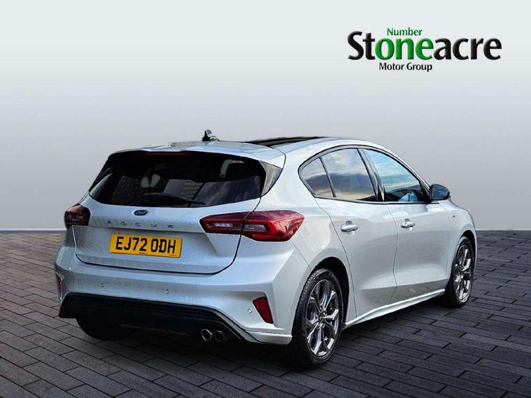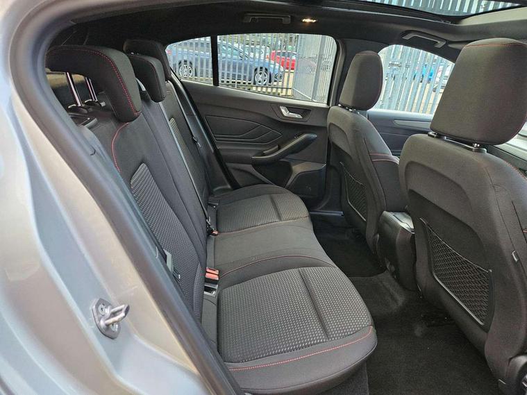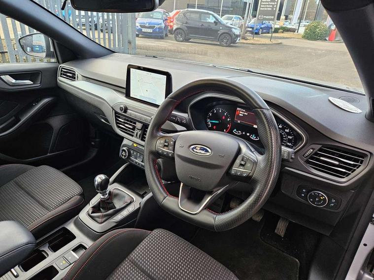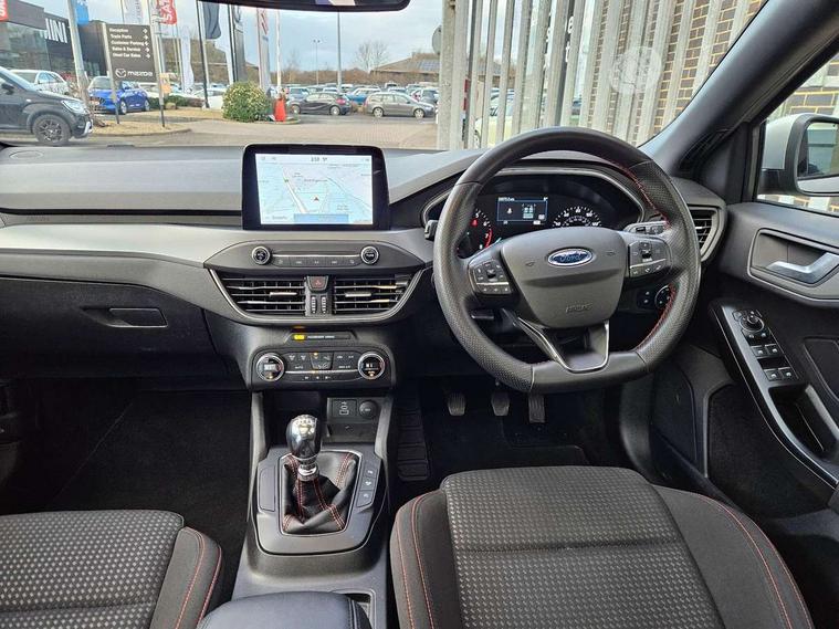 4.2" Colour TFT Ice blue illumination analogue cluster with trip computer, Bluetooth system, Digital clock, Easy fuel capless refuelling system, eCall emergency call system, Eco mode, Lane keeping system - lane keeping alert and lane keeping aid, PAS, Rev counter, Selectable drive mode, Service interval indicator, Sports tuned suspension, 2 USB ports, Auto headlamps (on/off), Body coloured door handles, Electrically operated front and rear windows with one touch opening and closing, Electrically operated heated power fold door mirrors with puddle lamp with side indicators, Front variable intermittent wipers with electric wash, Full fixed LED headlamps, Heated rear window, LED daytime running lamp, LED rear lamps, LED third brake light, Polished twin tailpipe, Privacy glass, Quickclear heated windscreen, Rain sensor, Rear side wing doors, Tailgate wash/wipe, Unique ST-Line grille, full bodystyling kit, and large body coloured rear spoiler, 3 rear headrests, 3 seat bench in 2nd row, Cloth upholstery, Dual zone electronic air temperature control, Height adjustable front headrests, Isofix child seat preparation, Reach + rake adjustable steering column, Single front passenger seat, 3x3 point rear seatbelts, ABS+Electronic Brake force Distribution, Auto hold function, Driver airbag, EDL traction control, Electronic parking brake, Electronic stability control, Front and rear seatbelt reminder, Front inertia reel height adjustable seatbelts with pre-tensioners, Front passenger airbag, Front side airbags, Passenger airbag deactivate switch, Post collision braking, Pre collision assist with autonomous emergency braking and pedestrian/cyclist detection, Remote/power child rear door locks, Side curtain airbags, Three rear inertia reel lap/diagonal seatbelts, Tyre pressure monitoring system, Keyless entry and keyless start, MyKey system, Remote central locking & engine immobiliser, Thatcham alarm with power door dead locks, 17" 5 spoke Rock mettalic finish alloy wheels with mini spare wheel,