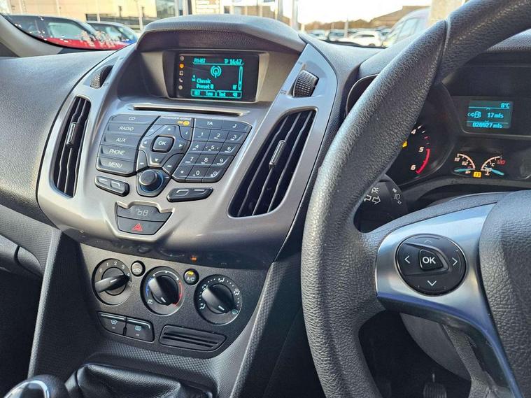 Bluetooth + USB, Easy fuel capless refuelling system, PAS, Trip computer, Diesel particulate filter, Steering wheel mounted audio controls, Body coloured bumpers, Daytime running lights, Dual sliding side load doors, Electric front windows, Electric windows in 2nd row, Front fog lights, Heated washer jets, Heated windscreen, Cloth upholstery, Folding front passenger seat, Front carpet mats, Front head restraints, Map pocket on driver seat back, Overhead storage shelfs, Pollen filter, Reach + rake adjustable steering column, Rear head restraints, Second row split/folding seats, Seat pack 9 - Tourneo connect//Grand Tourneo Connect, 3 point seatbelts on all seats, Driver and passenger airbags, Drivers seatbelt reminder, ESC with ABS, Front and rear curtain airbags, Front side airbags, Passenger seatbelt warning indicator, Immobiliser, Remote central double locking,