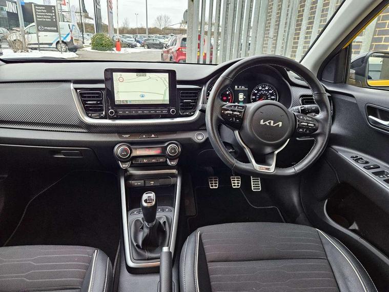 4.2" supervision colour cluster display, 8" touchscreen navigation, Apple car play/Android Auto with voice control, Blind spot collision warning, Cruise control + speed limiter, Drive mode selector, Electric power steering, Emergency call service, Emergency stop signalling system, External temperature display, Forward Collision-Avoidance Assist (FCA) - City/Pedestrian/Cyclist, Front parking sensors, Intelligent speed limit warning, Lane keeping assist system (LKAS), Driver attention warning (DAW) and High beam assist (HBA), Rear parking sensor, Reversing camera system, Trip computer, Intelligent Stop and Go, Audio system with 6 speakers, Bluetooth with music streaming, Front USB port, Steering wheel mounted controls, All round electric windows with drivers auto up/down function, Auto dimming rear view mirror, Automatic defog system, Automatic headlights control, Black side sill, door garnish and wheel arch trims, Black/body colour bumpers, Body coloured exterior door handles, Chrome side window trim, Electrically adjustable/heated/folding door mirrors with LED indicators, Front and rear silver skid plates, Gloss black door mirrors with matt black lower housing, GT-Line body kit, Headlight levelling device, Heated rear window, High gloss black and satin radiator grille, LED Bi-function projection headlights with static bending, LED daytime running lights, LED front fog lights, LED position light, LED rear combination lights, Privacy glass - Rear windows and tailgate, Rain sensing front wipers, Rear fog lights, Rear side wing doors, Rear wash/wipe, Roof coloured rear spoiler with high mounted braking light, Roof rails, Shark fin antenna, Solar windshield glass, Speed variable front aeroblade wipers, Tinted glass, Welcome and follow-me home light functionality, Windscreen Washer Level Warning, 12V power point front, 3 seat bench in 2nd row, 60/40 split folding rear seat, Air filter, All-round height adjustable headrests, Aluminium pedals, Automatic air conditioning, Centre armrest storage box, Centre console with cupholders, D-Cut perforated leather trimmed steering wheel, Dash illumination dimmer switch, Driver's seat height adjuster, Front and centre cabin lights, Front and rear door map pockets with bottle holder, Gear shift indicator, Glovebox illumination, GT-Line cloth/faux leather upholstery, Heated front seats, Heated steering wheel, ISOFIX Child seat top tethers and anchor fixings outer rear seats, Leather trimmed gearshift, Luggage area light, Luggage area parcel shelf, Luggage net, Luggage net with hooks, Overhead console lamp, Overhead console with sunglasses cases, Passenger front seatback pockets, Passenger seat height adjuster, Rear USB charging port, Satin chrome interior door handles, Single front passenger seat, Sunvisors with vanity mirror illumination (Driver and front passenger), Tilt/telescopic adjustable steering wheel, ABS with Electronic Brakeforce Distribution (EBD) and Brake Assist System (BAS), All round 3-point seatbelts, Electronic stability control (ESC) and vehicle stability management (VSM), Front passenger airbag cut-off switch, Front seatbelt pretensioners + load limiters, Height adjustable front seatbelts, Hill start assist control (HAC), Impact sensing auto door unlocking, Manual child lock in rear doors, Rear seat Occupancy alert, Seatbelt reminder warning, Twin curtain airbags, Twin front airbags, Twin front side airbags, Tyre pressure monitoring system, Alarm system, Door deadlocks, Engine immobiliser, Locking wheel nuts, Smart key with engine start/stop button, Speed sensitive auto door locking, Visible vehicle identification number, High gloss black centre fascia, 17" GT-Line alloy wheels, Tyre mobility kit,