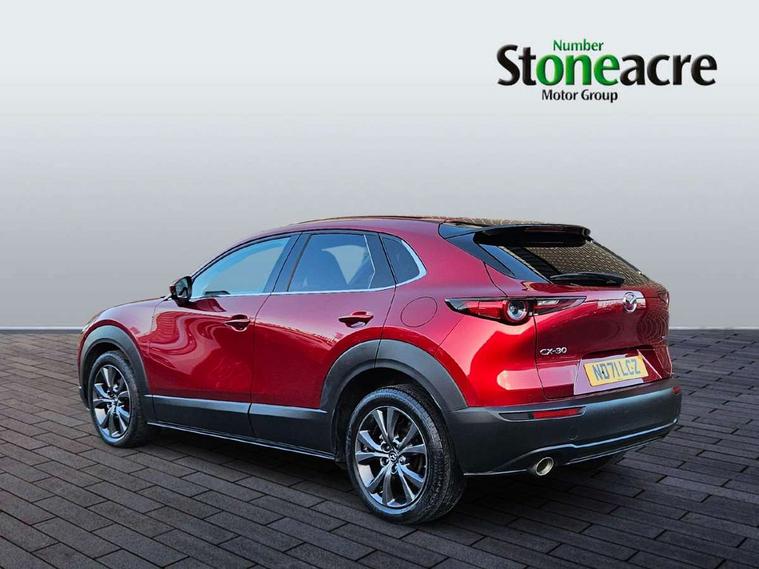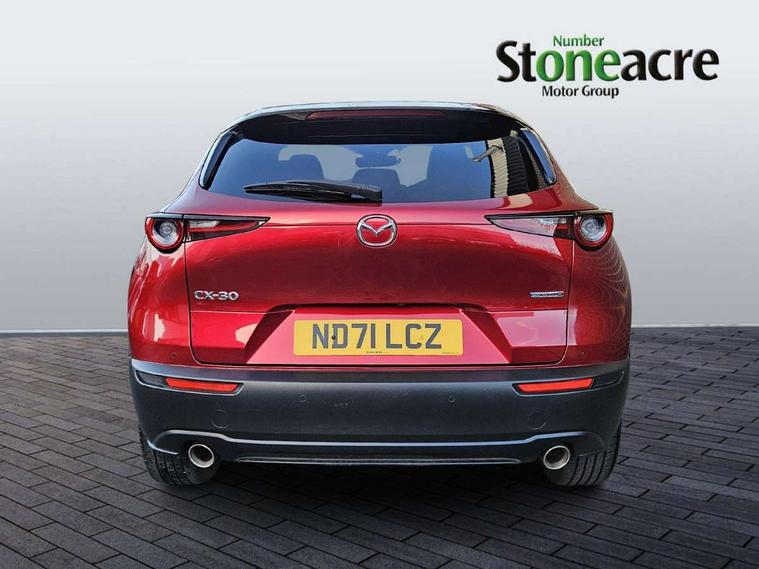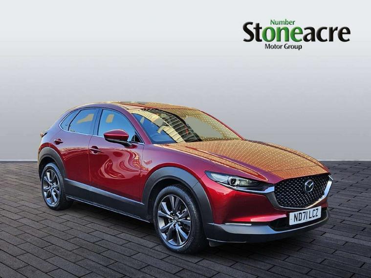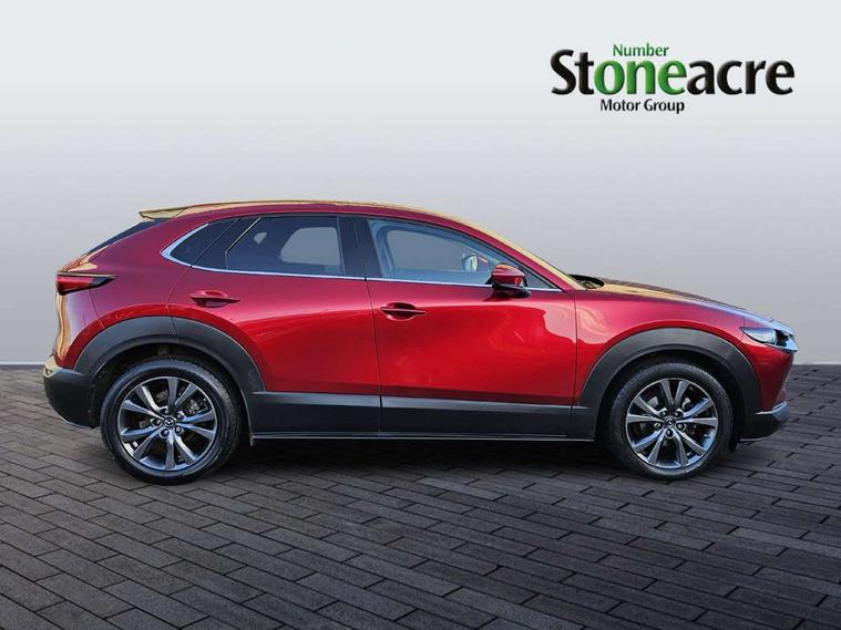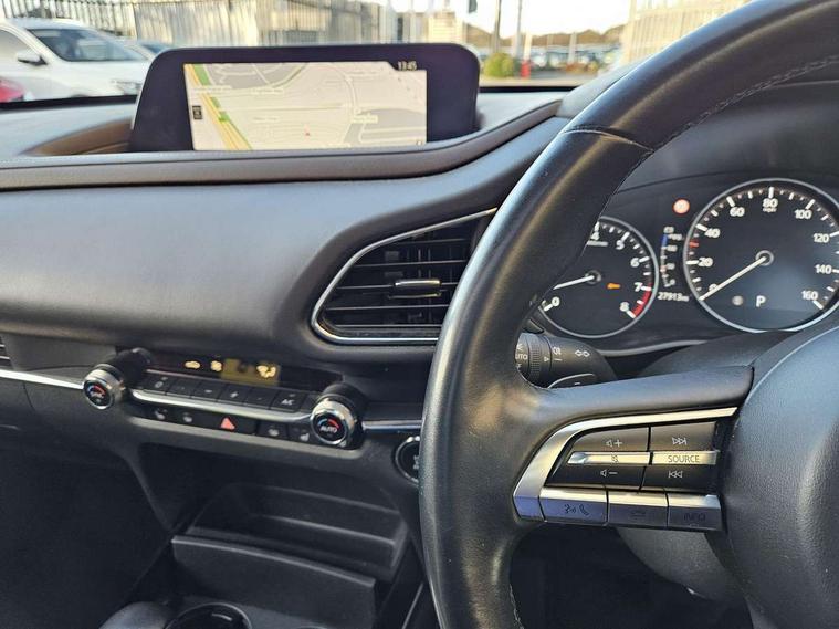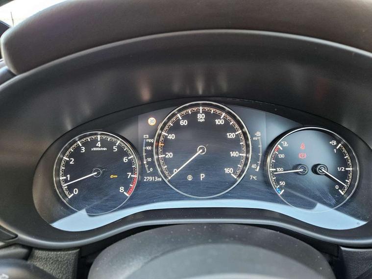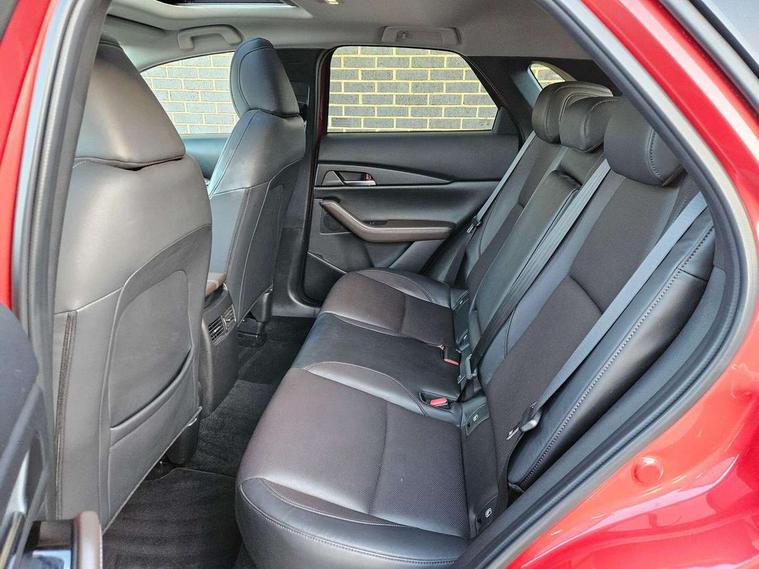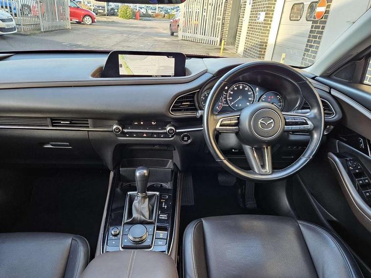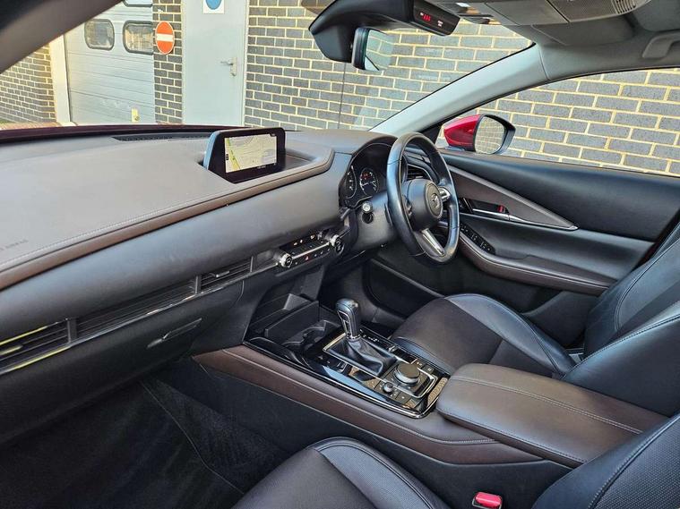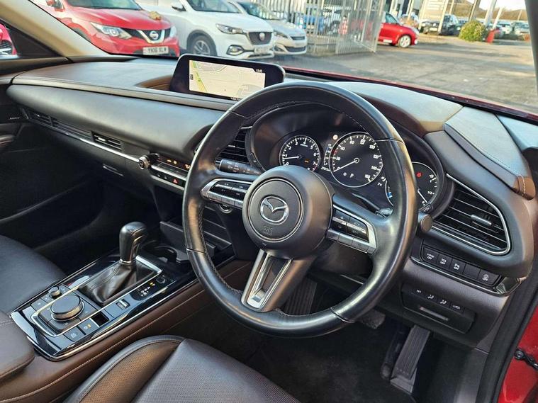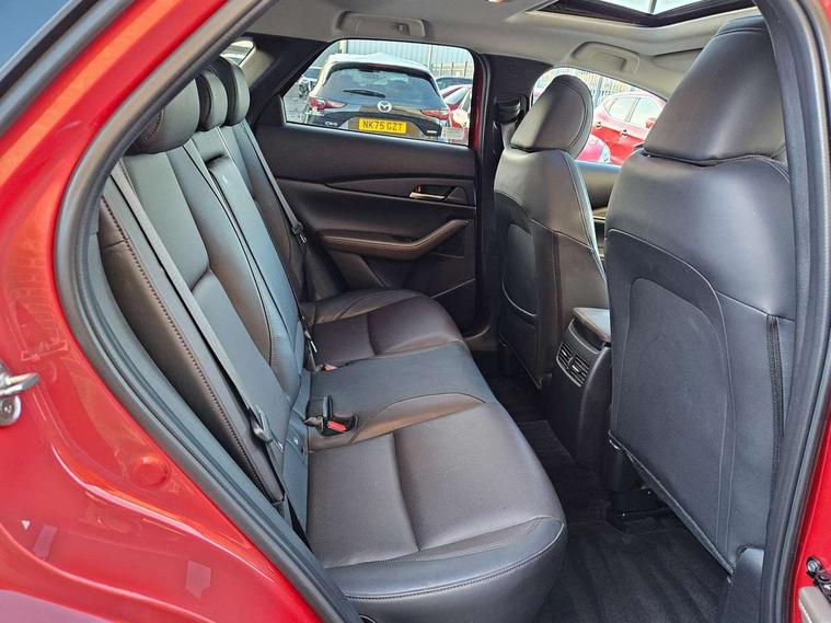 7" TFT Colour driver instrument panel display, 8.8" Colour centre touch screen display with Mazda Connect infotainment, Adaptive cruise control (Mazda radar cruise control) features stop and go, Apple car play/Android Auto, Blind spot monitoring with rear cross traffic alert, Drive mode selector, Driver attention alert system, E-call with GPS, Emergency stop signalling system, Engine start/stop button, Front and rear parking sensors, Integrated bluetooth, Integrated Mazda navigation system, Intelligent speed assist, Lane keep assist system (LAS) with Lane departure warning system (LDWS), Mazda connected services, PAS, Power lift gate, Reversing camera, Service indicator, Traffic sign recognition, Trip computer, i-stop, 2 USB charging ports in front inner central armrest, AM/FM and DAB radio, Bose surround sound system with 12 Speaker, Bose center point, Bass match and audio pilot technology, Multimedia Commander including separate volume dial, Steering wheel mounted audio/bluetooth controls, Adaptive LED Headlights, Auto dimming driver's door mirror, Auto headlight levelling, B-pillar and C-pillar garnishes in piano black finish, Body coloured, electrically adjustable, heated auto power folding door mirrors with integrated indicators, Chrome finish signature wing in front grille, Coming/leaving home lighting function, Door mirrors with adjustable memory and tilt-down function when reversing, Dual chrome exhaust, Dusk sensing headlights, Electric front/rear windows with one touch auto up/down, Frameless auto dimming interior rear view mirror, Front kodo turn signal, Gloss black front grille, Gloss black rear roof spoiler, High beam assist, LED signature daytime running lights, Power tilt/slide sunroof, Privacy glass (rear side windows and rear screen), Rain sensing front wipers with adjustable speed and intermittent wipe, Rear fog lights, Rear wiper, Signature LED rear combination lights, 12V power outlet in centre console, 60/40 split fold down rear seats, Chrome horn pad ring, Chrome interior trim accents with steering wheel centre bezel, surround of engine start / stop button and glove box handle, Dashboard, door cards and front centre armrest in rich brown leather, Driver and front passenger visors with covered vanity mirror and driver ticket holder, Driver's seat power slide, recline, height, seat tilt and lumbar adjustment with head up display and driver door mirror memory, Driver, front passenger and two rear door storage, Driver, Front passenger and two rear grab handles with coathooks, Dual zone climate control air conditioning with rear air vents, Folding rear centre armrest with two cup holders, Front and rear (x3) head restraints, Front and rear LED lighting, Front armrest, Front centre storage with two cupholders with lid, Front passenger seatback pockets, Front passengers seat manual slide, recline and height adjustment, Glovebox illumination, Heated front seats with 3 stage setting, Heated steering wheel, ISOFIX child seat anchorage points attached on outer rear seats, Leather upholstery with interior accents, Leather wrapped gear shift knob, Leather wrapped steering wheel with telescopic and tilt adjustment, LED luggage compartment lighting, Light roof headlining and pillars, Paddle shift controls, Rear armrest inner material in cloth, Roof mounted sunglasses holder, 3 point ELR front seat belts x2 with pretensioners, 3 point ELR rear seat belts, Anti-lock braking system (ABS), Drivers knee airbag, DSC - Dynamic Stability Control, Electronic parking brake with auto disengage function and auto hold function, Front and rear curtain airbags, Front dual stage driver and single stage front passenger airbags, Front passenger airbag cut-off switch, Front side airbags, Front smart city brake support, G-Vectoring control plus, Hill launch assist, Mild Hybrid system with regenerative braking, Seatbelt reminder for driver/front passenger and rear seats, Traction control system (TCS), Tyre pressure monitoring system (TPMS), Remote central locking with deadlocking and automatic door lock when driving, Smart keyless entry, Thatcham accredited alarm and immobiliser, Dark vinyl door panel inserts, 18" Bright alloy wheels, Emergency tyre repair kit,
