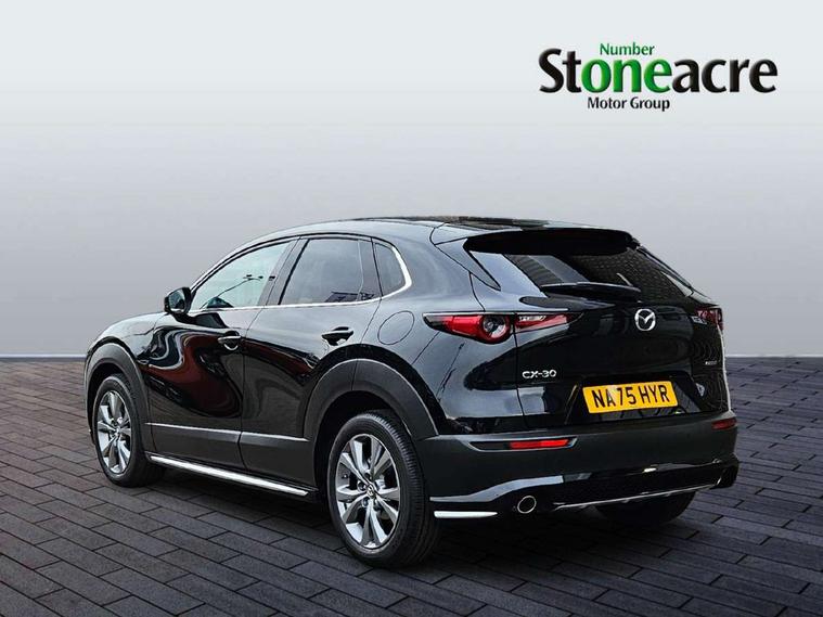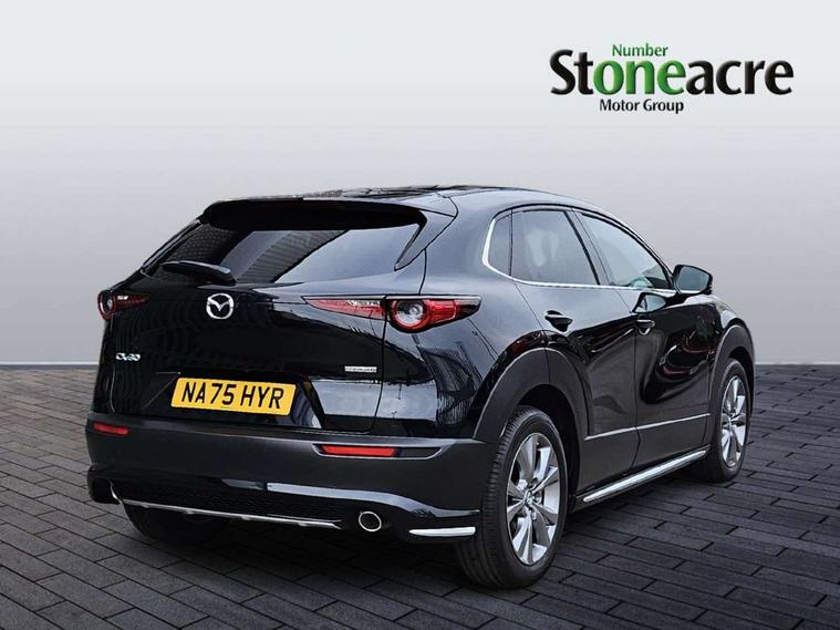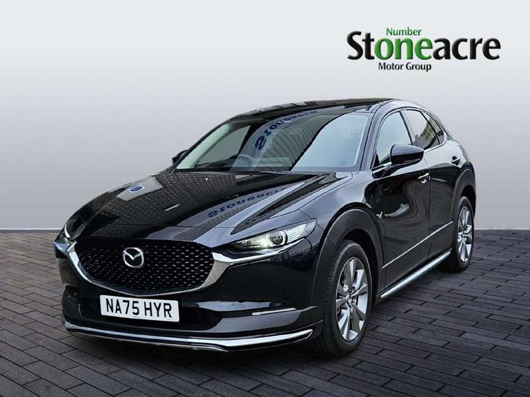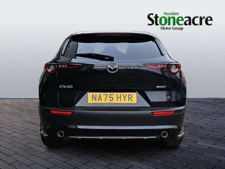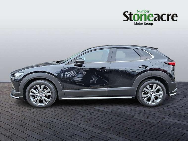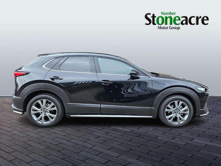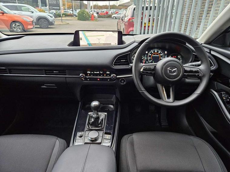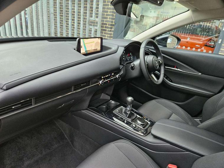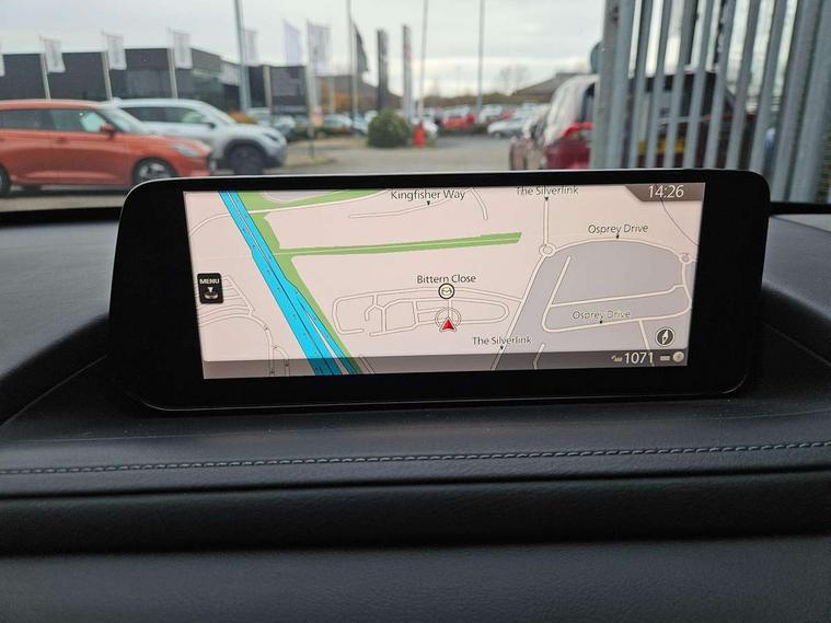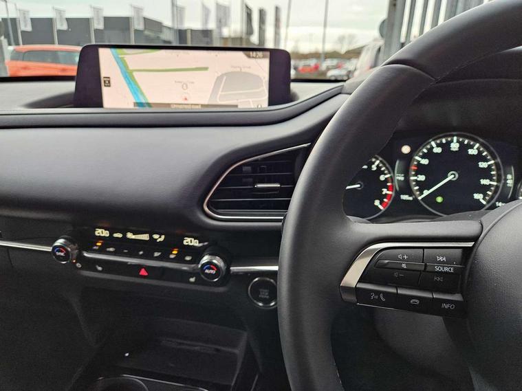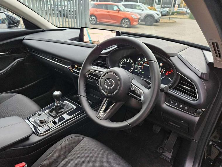 10.25" display with Mazda Connect infotainment, 7" TFT Colour driver instrument panel display, Adaptive cruise control (Mazda radar cruise control), Blind spot monitoring with rear cross traffic alert, Driver attention alert system, E-call with GPS, Emergency stop signalling system, Engine start/stop button, Front and rear parking sensors, Integrated Alexa Voice Assistant, Integrated bluetooth, Integrated Mazda navigation system, Intelligent speed assist, Lane keep assist system (LAS) with Lane departure warning system (LDWS), Mazda connected services, PAS, Power lift gate, Qi wireless charging, Reversing camera, Service indicator, Tailgate, Traffic sign recognition, Trip computer, Windscreen projected colour active driving display (HUD), Wireless Apple CarPlay/Android Auto, Cylinder Deactivation, i-stop, 2 x USB Type-C inputs, AM/FM and DAB radio, Bose surround sound system with 12 Speaker, Bose center point, Bass match and audio pilot technology, Multimedia Commander including separate volume dial, Steering wheel mounted audio/bluetooth controls, Adaptive LED Headlights, Auto dimming driver's door mirror, B-pillar and C-pillar garnishes in gloss black finish, Body coloured, electrically adjustable, heated auto power folding door mirrors with integrated indicators, Chrome finish signature wing in front grille, Coming/leaving home lighting function, Dual bright finish exhaust tip trim, Dusk sensing headlights, Electric front/rear windows with one touch auto up/down, Frameless auto dimming interior rear view mirror, Front kodo turn signal, Gloss black front grille, Gloss black rear roof spoiler, High beam assist, LED auto headlight levelling, LED signature daytime running lights, Privacy glass (rear side windows and rear screen), Rain sensing front wipers with adjustable speed and intermittent wipe, Rear fog lights, Rear side wing doors, Rear wiper, Signature LED rear combination lights, Third brake light, 12V power outlet in centre console, 3 seat bench in 2nd row, 60/40 split fold down rear seats, Bright interior trim accents with steering wheel centre bezel, surround of engine start / stop button and glove box handle, Cloth upholstery with interior accents, Dark cloth door panel inserts, Dashboard, door cards and front centre armrest in black cloth, Driver and front passenger visors with covered vanity mirror and driver ticket holder, Driver seat manual slide, recline, height and seat tilt adjust, Driver, front passenger and two rear door storage, Driver, Front passenger and two rear grab handles with coathooks, Dual zone climate control air conditioning with rear air vents, Folding rear centre armrest with two cup holders, Front and rear (x3) head restraints, Front and rear LED lighting, Front armrest, Front centre storage with two cupholders with lid, Front passenger seatback pockets, Front passengers seat manual slide, recline and height adjustment, Gear shift indicator, Glovebox illumination, Heated front seats with 3 stage setting, ISOFIX child seat anchorage points attached on outer rear seats, Leather wrapped gear shift knob, Leather wrapped steering wheel with telescopic and tilt adjustment, LED luggage compartment lighting, Light roof headlining and pillars, Roof mounted sunglasses holder, Single front passenger seat, 3 point ELR front seat belts x2 with pretensioners, 3 point ELR rear seat belts, Anti-lock braking system (ABS), Drivers knee airbag, DSC - Dynamic Stability Control, Electronic parking brake with auto disengage function and auto hold function, Front and rear curtain airbags, Front dual stage driver and single stage front passenger airbags, Front passenger airbag cut-off switch, Front side airbags, Front smart city brake support, G-Vectoring control plus, Hill launch assist, Manual child lock in rear doors, Mild Hybrid system with regenerative braking, Seatbelt reminder for driver/front passenger and rear seats, Traction control system (TCS), Tyre pressure monitoring system (TPMS), Remote central locking with deadlocking and automatic door lock when driving, Smart keyless entry, Thatcham accredited alarm and immobiliser, 18" Silver metallic alloy wheels, Emergency tyre repair kit,