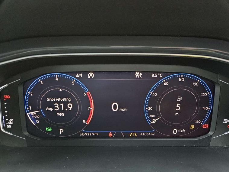 2 USB connection charging sockets, Active Info Display, 10.3" high resolution TFT dash display screen with customised information, Adaptive cruise control, App-Connect, Automatic start/stop system, Bluetooth telephone and audio connection for compatible devices, Car information display, Car-Net Security and Service, Discover navigation, 8" touch screen navigation/infotainment system with Car-Net, European map, CD/radio, 2D/3D map and speed limiter, Driver alert system with audible and visual fatigue detection system, Driver profile selection, Front assist, radar sensor controlled distance monitor, city emergency braking + predictive pedestrian protection, Lane assist, Multifunction computer with visual gear change recommendation for fuel consumption, Power assisted speed sensitive steering, Service interval indicator, Think blue trainer driver tips and journey analysis, Voice activation, Warning sound and light for doors and tailgate open, Warning sound and light for front seatbelts unfastened, Battery regeneration during braking, Bluetooth - Simultaneous pairing of 2 compatible mobile devices, DAB Digital radio, Dynamic navigation based on TMC+, Multi device interface (MDI) with USB connection, Music playback - MP3, WMA and AAC files, Premium USB cable in choice of either Apple or Android smartphone compatibility, SD card slot, SMS functionality - read, compose and send SMS messages using touch-screen display, Three route options - Fast, Short, Eco, Title and cover art display, Auto dimming interior rear view mirror, Automatic hazard lights activation under emergency braking, Black grained lower door protectors, Black grained wheel arches, Body colour bumpers with silver metallic underbody fascia, Body colour door handles, Chrome effect left and right trapezoid exhaust tailpipe fascia surround, Chrome trim on upper and lower radiator grille, Door mirror integrated indicators, Dusk sensor, Electrically foldable, adjustable and heated door mirrors with puddle lights and reverse activated kerb-view adjustment on passenger's door mirror, Front and rear electric windows, Front fog lights with static cornering function, Front windscreen wiper with intermittent wipe and 4 position delay, Fully galvanised body, Heated rear window, High level 3rd brake light, LED darkened rear light clusters, LED rear number plate lights, Manual coming/automatic leaving home lighting function, Rain sensor, Rear tinted glass from B-pillar backwards approx 65% tinted, Rear windscreen washer and wiper with interval delay, 12V socket in centre console storage area, 2 LED front and rear reading lights, 3 rear head restraints, 4 load lashing points in luggage compartment, Ambient lighting in front footwell and light strips below trim in front doors, Climate control - 2 zone electronic air conditioning with automatic air recirculation and allergy filter, Drawer under drivers seat, Front centre armrest with storage compartment, longitudinal and height adjustable and two rear air vents, Front cupholders x 2, Front footwell illumination, Front seat back storage pockets, Glovebox, Height adjustable front seats, Height/reach adjust steering wheel, Illuminated vanity mirrors, Instrument lighting, white adjustable panel illumination, Interior light delay, Isofix easy fit child seat preparation for 2 outer rear seats, Load through provision with single cup holder when folded down, Luggage compartment cover, removable, Luggage compartment lighting, Split folding rear seat backrests with centre armrest, Storage compartment in left and right luggage area, Storage compartment in rear doors, Storage compartments in driver and front passenger doors, 3 rear three point seatbelts, ABS, Driver and front passenger safety-optimised head restraints, Electronic parking brake with auto hold, ESC with EDL, ASR, EDTC and trailer stabilisation function, Front and rear curtain airbags, driver and front passenger airbags with passenger deactivation switch and front side impact airbags, Rigid safety cell with front and rear crumple zones, Three point height adjust front seatbelts + pretensioners, Tyre pressure loss indicator, Ventilated front and rear disc brakes, Volkswagen roadside assistance, Alarm with remote central locking and interior protection, Electronic engine immobiliser, Remote central locking with 2 remote folding keys, Caribou grey decorative inserts in dash and door panel, Steel space saver spare wheel,