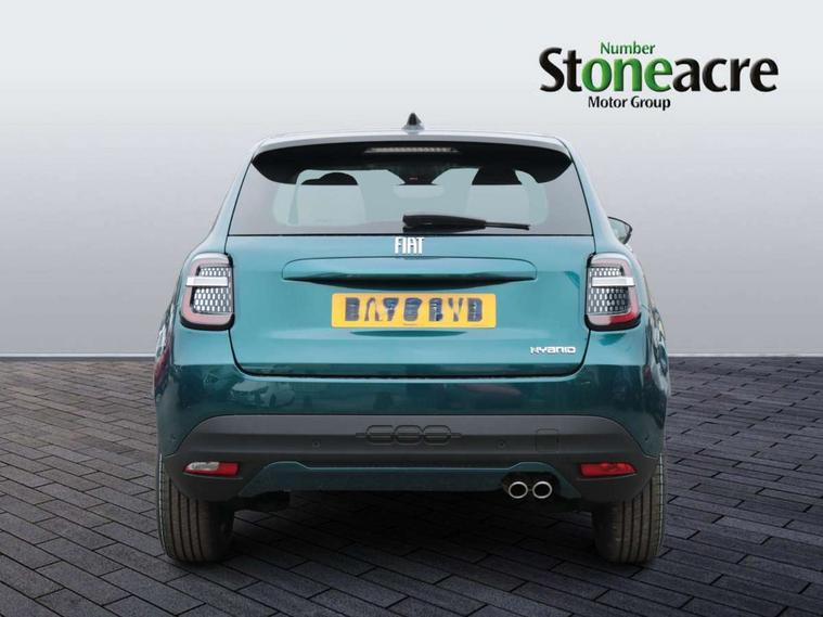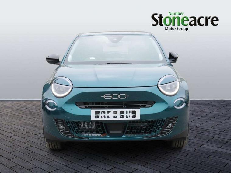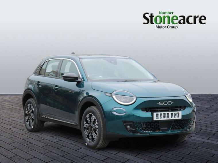 7" TFT digital cluster, Bluetooth connectivity, BSRF connectivity box, Connected services, Cruise control, Drowsy driver detection, Emergency E-call assist, Engine emission level default, GSR II step 1, Intelligent speed assist, Lane keeping assistant (LKA), Odometer, Power assist steering, Rain and dusk sensors, Rear parking sensors, Traffic sign recognition, Wireless apple car play/android Auto, Without drive mode selector, L2-AGM 12V battery, 1st Row USB type-A and USB type-C, 4 speaker audio system, Radio, Uconnect infotainment 10.25" touchscreen with DAB, All power windows express Up/Down, Auto dimming frameless rear view mirror, Automatic headlights, Body coloured door handles, Chrome day light openings, Electric adjustable door mirrors, Exterior chrome accents, Front and rear Chromed 600 logo, Gloss black finish B pillar, Gloss black shark fin antenna, Glossy black door mirrors, Heated windscreen wiper blade area, LED 3rd brake light, LED daytime running lights, LED Fog lamps with cornering function, LED front signature lighting, LED front turn indicators and position lights, LED rear lights, LED rear signature lighting, LED reflector headlamps, Matt black side skirts with 600 chromed logo, Rear bumper embossed 600 logo, Rear roof spoiler, Rear side wing doors, Rear wiper, 2 Spoke synthetic leather steering wheel with audio control, 3 rear headrests, 3 seat bench in 2nd row, 4 way manually adjustable passenger seat, 6 way manually adjustable drivers seat, Auxilliary 12V power socket, Body colour dashboard fascia, Chrome interior door handles, Dark metachrome dashboard ring, English handbook, Front centre armrest, Front headrests, Front passenger grab handle, Front seatback pockets, ISOFIX attachment on front passenger and rear passenger seats, Manual climate control, Metachrome central compartment bezel, Monogram fabric upholstery, Paddle shifts, Partial body cover for shipment, Predisposal for accessory upgrade to default tunnel pad cover (dedicated prnd bezel), Rear seat 40/60 split, Single front passenger seat, Smart 15L storage central tunnel with tunnel pad cover, Sunvisor label ciao Fiat, Sunvisors with vanity mirrors, 3x3 point rear seatbelts, 6 airbags, ABS, Autonomous Emergency Brake (AEB) & Vulnerable Road User (VRU) Protection, Child locks on rear doors, Electronic parking brake with auto hold, ESC (Electronic Stability Control), Front passenger airbag deactivation, Seatbelt reminder and pretensioners for all seats, Anti-theft volumetric alarm, Anti-theft wheel bolts, Keyless Go, 17" Diamond cut alloy wheels, Fix and go puncture repair kit,