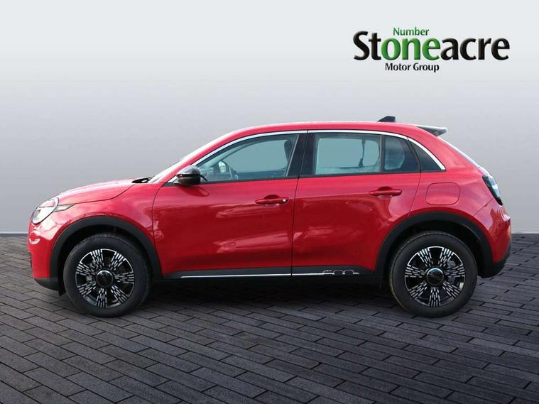 7" TFT digital cluster, Bluetooth connectivity, BSRF connectivity box, Connected services, Cruise control, Drowsy driver detection, Emergency E-call assist, Engine emission level default, GSR II step 1, Intelligent speed assist, Lane keeping assistant (LKA), Odometer, Power assist steering, Rain and dusk sensors, Rear parking sensors, Traffic sign recognition, Wireless apple car play/android Auto, Without drive mode selector, L2-AGM 12V battery, 1st Row USB type-A and USB type-C, 4 speaker audio system, Radio, Uconnect infotainment 10.25" touchscreen with DAB, All power windows express Up/Down, Auto dimming frameless rear view mirror, Automatic headlights, Body coloured door handles, Chrome day light openings, Electric adjustable door mirrors, Exterior chrome accents, Front and rear Chromed 600 logo, Gloss black finish B pillar, Gloss black shark fin antenna, Glossy black door mirrors, Heated windscreen wiper blade area, LED 3rd brake light, LED daytime running lights, LED Fog lamps with cornering function, LED front signature lighting, LED front turn indicators and position lights, LED rear lights, LED rear signature lighting, LED reflector headlamps, Matt black side skirts with 600 chromed logo, Rear bumper embossed 600 logo, Rear roof spoiler, Rear side wing doors, Rear wiper, 2 Spoke synthetic leather steering wheel with audio control, 3 rear headrests, 3 seat bench in 2nd row, 4 way manually adjustable passenger seat, 6 way manually adjustable drivers seat, Auxilliary 12V power socket, Body colour dashboard fascia, Chrome interior door handles, Dark metachrome dashboard ring, English handbook, Front centre armrest, Front headrests, Front passenger grab handle, Front seatback pockets, ISOFIX attachment on front passenger and rear passenger seats, Manual climate control, Metachrome central compartment bezel, Monogram fabric upholstery, Paddle shifts, Partial body cover for shipment, Predisposal for accessory upgrade to default tunnel pad cover (dedicated prnd bezel), Rear seat 40/60 split, Single front passenger seat, Smart 15L storage central tunnel with tunnel pad cover, Sunvisor label ciao Fiat, Sunvisors with vanity mirrors, 3x3 point rear seatbelts, 6 airbags, ABS, Autonomous Emergency Brake (AEB) & Vulnerable Road User (VRU) Protection, Child locks on rear doors, Electronic parking brake with auto hold, ESC (Electronic Stability Control), Front passenger airbag deactivation, Seatbelt reminder and pretensioners for all seats, Anti-theft volumetric alarm, Anti-theft wheel bolts, Keyless Go, 17" Diamond cut alloy wheels, Fix and go puncture repair kit,