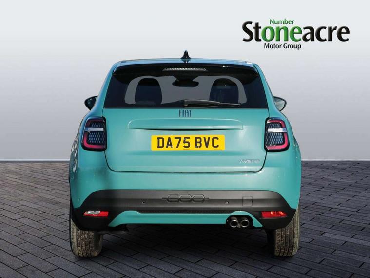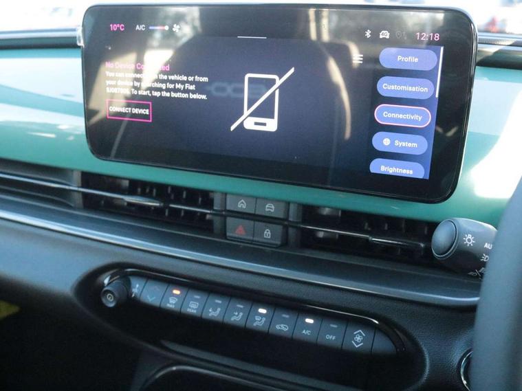 7" TFT digital cluster, Bluetooth connectivity, BSRF connectivity box, Connected services, Cruise control, Drowsy driver detection, Emergency E-call assist, Engine emission level default, GSR II step 1, Intelligent speed assist, Lane keeping assistant (LKA), Odometer, Power assist steering, Rain and dusk sensors, Rear parking sensors, Traffic sign recognition, Wireless apple car play/android Auto, Without drive mode selector, L2-AGM 12V battery, 1st Row USB type-A and USB type-C, 4 speaker audio system, Radio, Uconnect infotainment 10.25" touchscreen with DAB, All power windows express Up/Down, Auto dimming frameless rear view mirror, Automatic headlights, Body coloured door handles, Chrome day light openings, Electric adjustable door mirrors, Exterior chrome accents, Front and rear Chromed 600 logo, Gloss black finish B pillar, Gloss black shark fin antenna, Glossy black door mirrors, Heated windscreen wiper blade area, LED 3rd brake light, LED daytime running lights, LED Fog lamps with cornering function, LED front signature lighting, LED front turn indicators and position lights, LED rear lights, LED rear signature lighting, LED reflector headlamps, Matt black side skirts with 600 chromed logo, Rear bumper embossed 600 logo, Rear roof spoiler, Rear side wing doors, Rear wiper, 2 Spoke synthetic leather steering wheel with audio control, 3 rear headrests, 3 seat bench in 2nd row, 4 way manually adjustable passenger seat, 6 way manually adjustable drivers seat, Auxilliary 12V power socket, Body colour dashboard fascia, Chrome interior door handles, Dark metachrome dashboard ring, English handbook, Front centre armrest, Front headrests, Front passenger grab handle, Front seatback pockets, ISOFIX attachment on front passenger and rear passenger seats, Manual climate control, Metachrome central compartment bezel, Monogram fabric upholstery, Paddle shifts, Partial body cover for shipment, Predisposal for accessory upgrade to default tunnel pad cover (dedicated prnd bezel), Rear seat 40/60 split, Single front passenger seat, Smart 15L storage central tunnel with tunnel pad cover, Sunvisor label ciao Fiat, Sunvisors with vanity mirrors, 3x3 point rear seatbelts, 6 airbags, ABS, Autonomous Emergency Brake (AEB) & Vulnerable Road User (VRU) Protection, Child locks on rear doors, Electronic parking brake with auto hold, ESC (Electronic Stability Control), Front passenger airbag deactivation, Seatbelt reminder and pretensioners for all seats, Anti-theft volumetric alarm, Anti-theft wheel bolts, Keyless Go, 17" Diamond cut alloy wheels, Fix and go puncture repair kit,